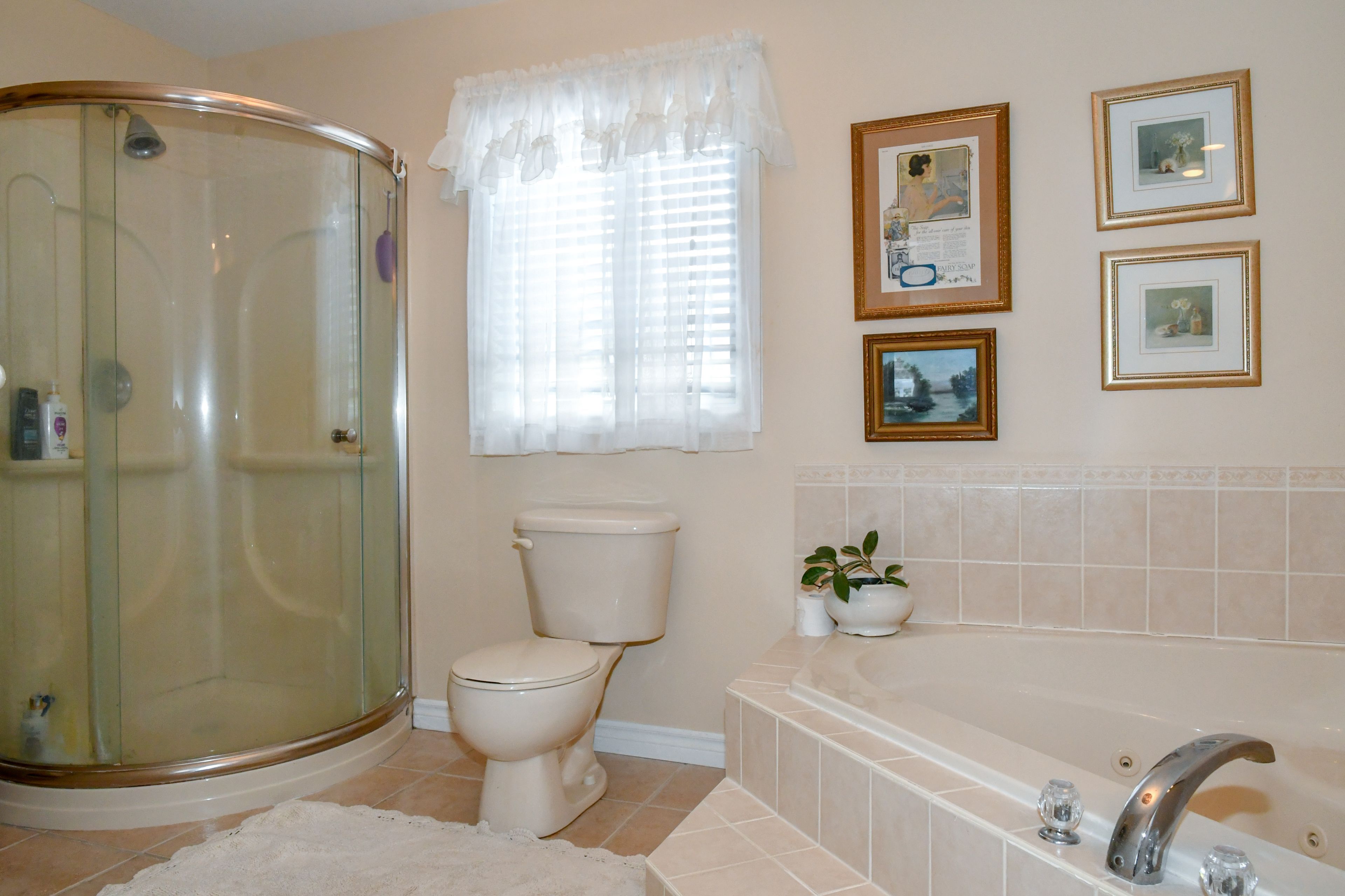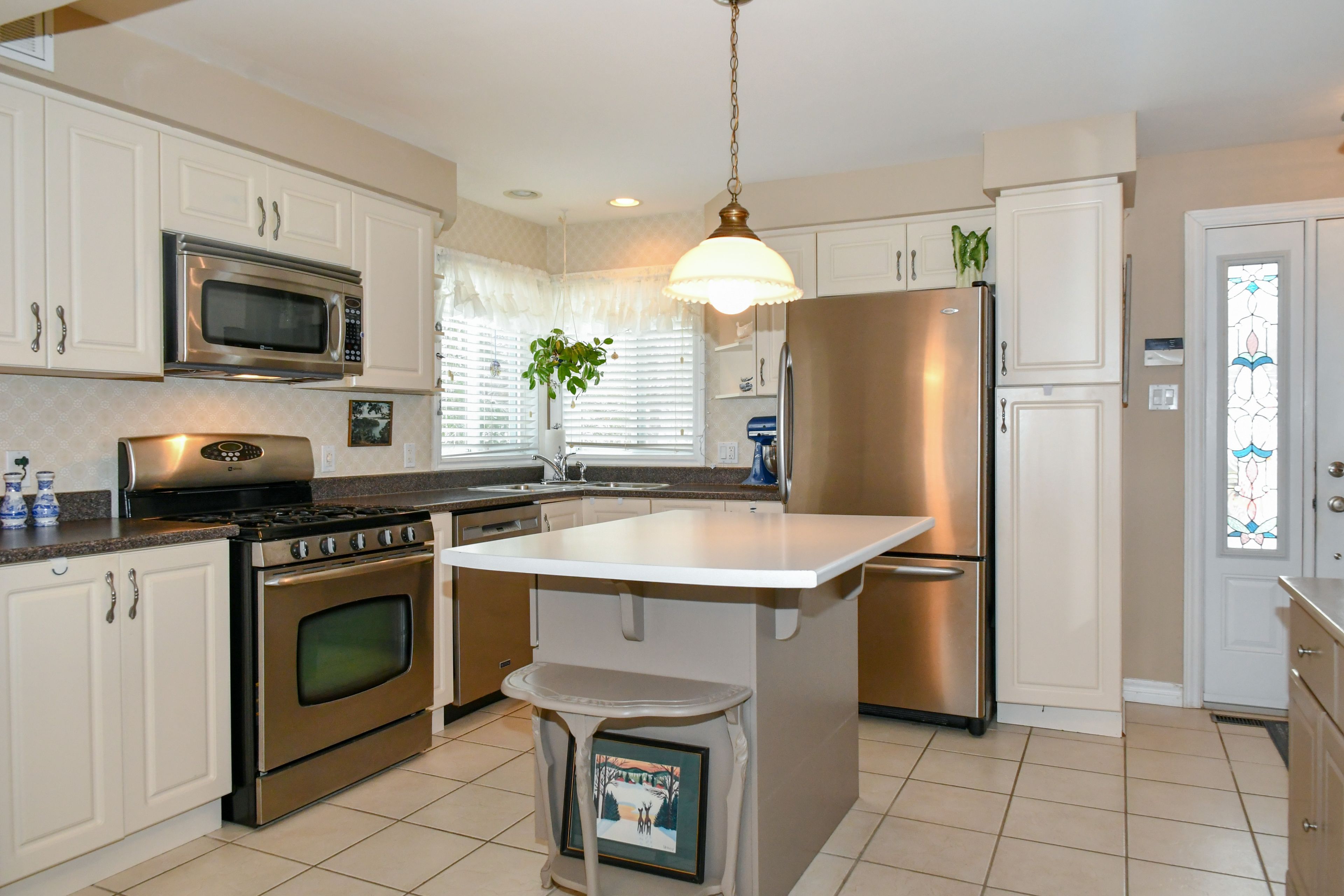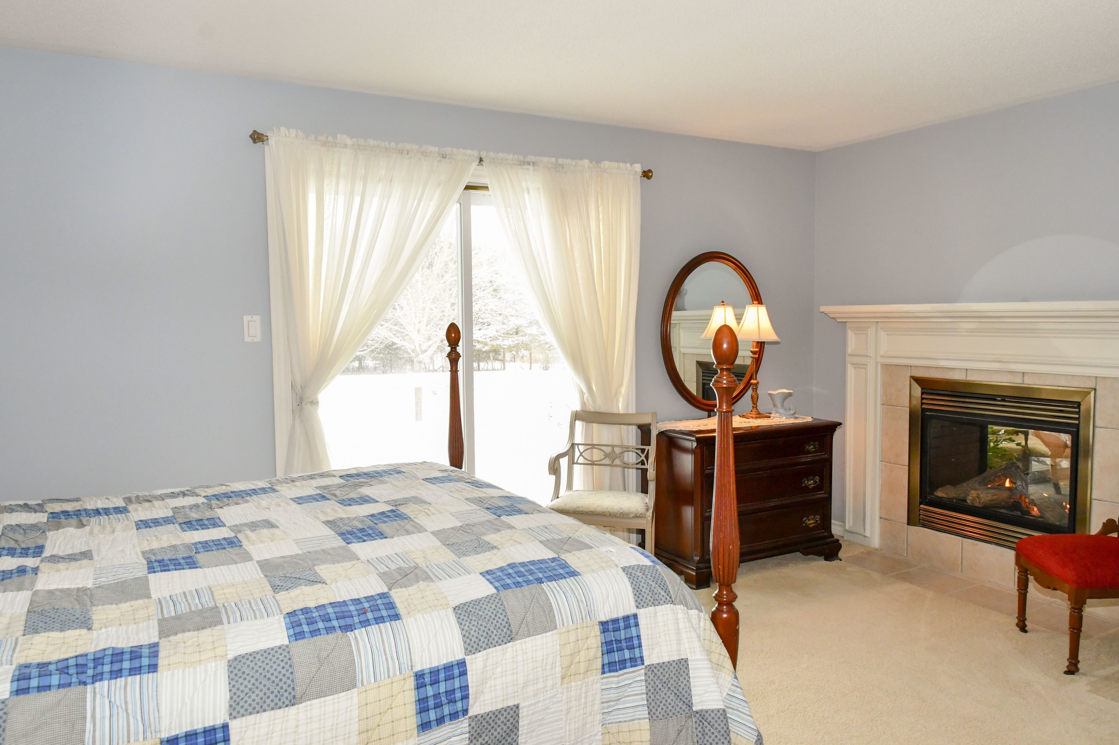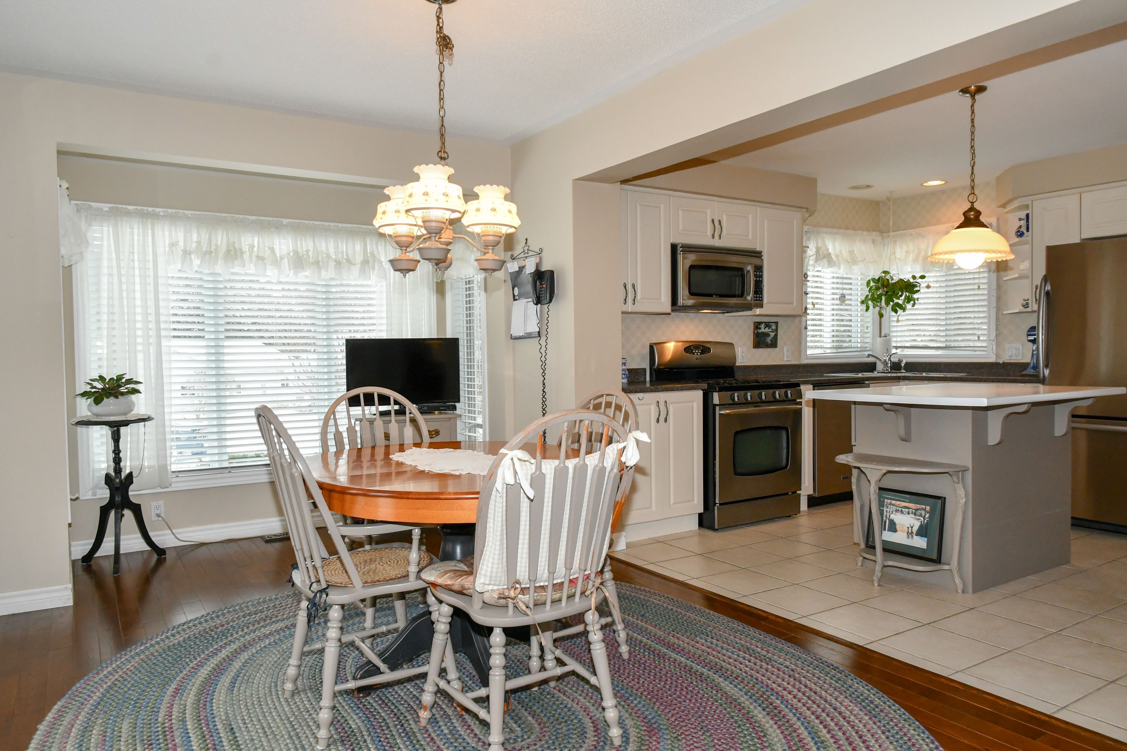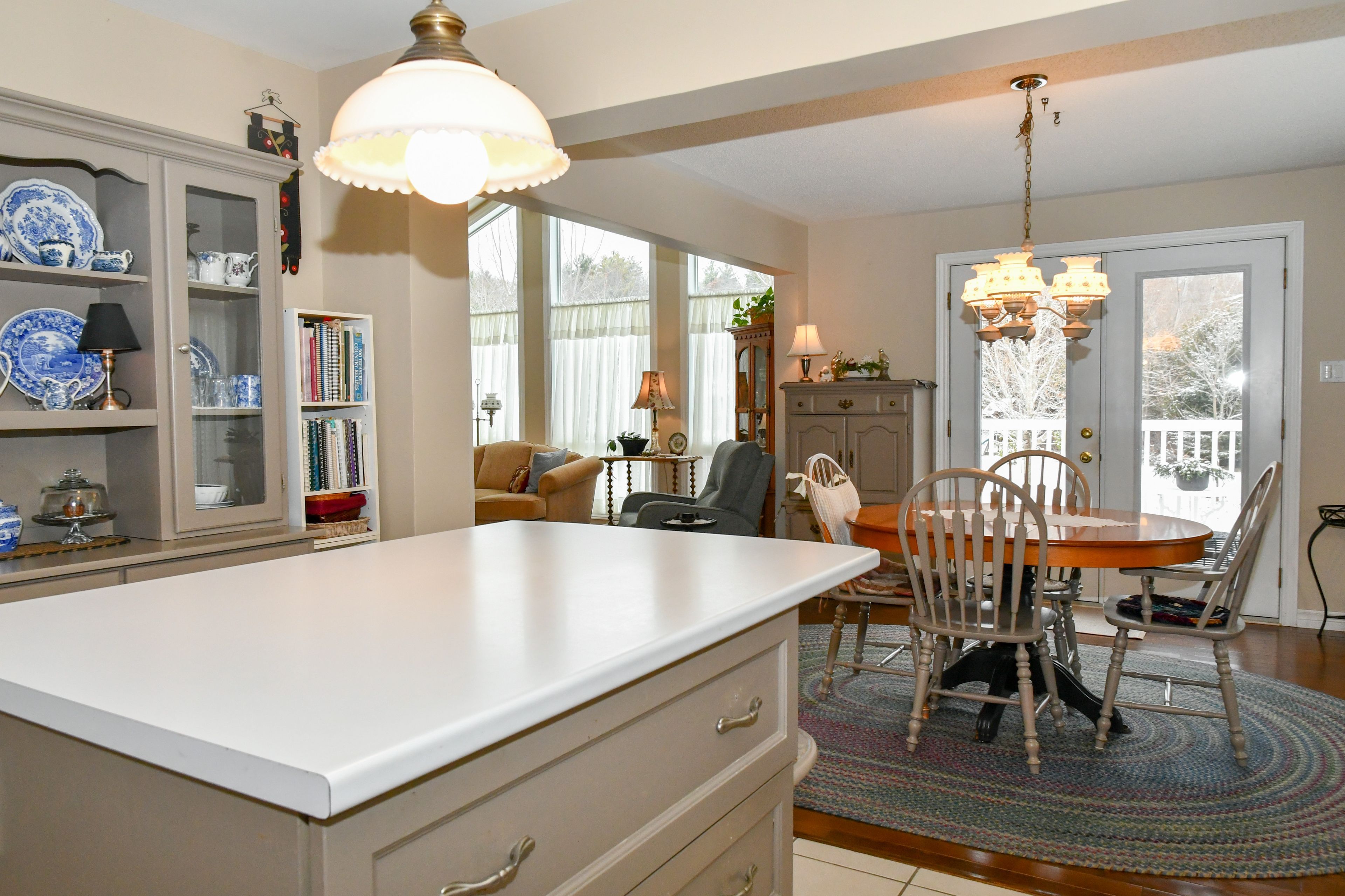 • Bright living room features cathedral ceilings and beautiful views.