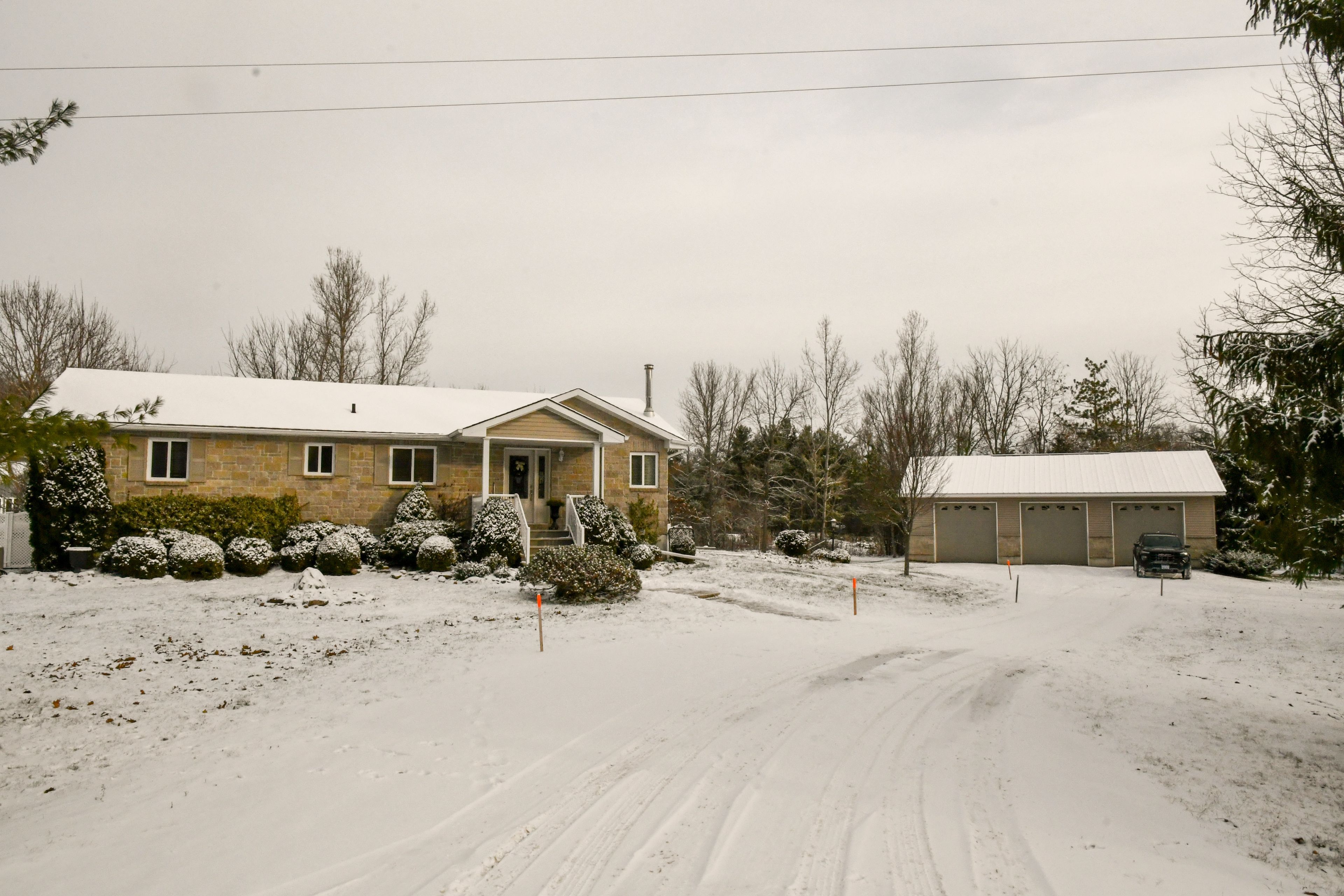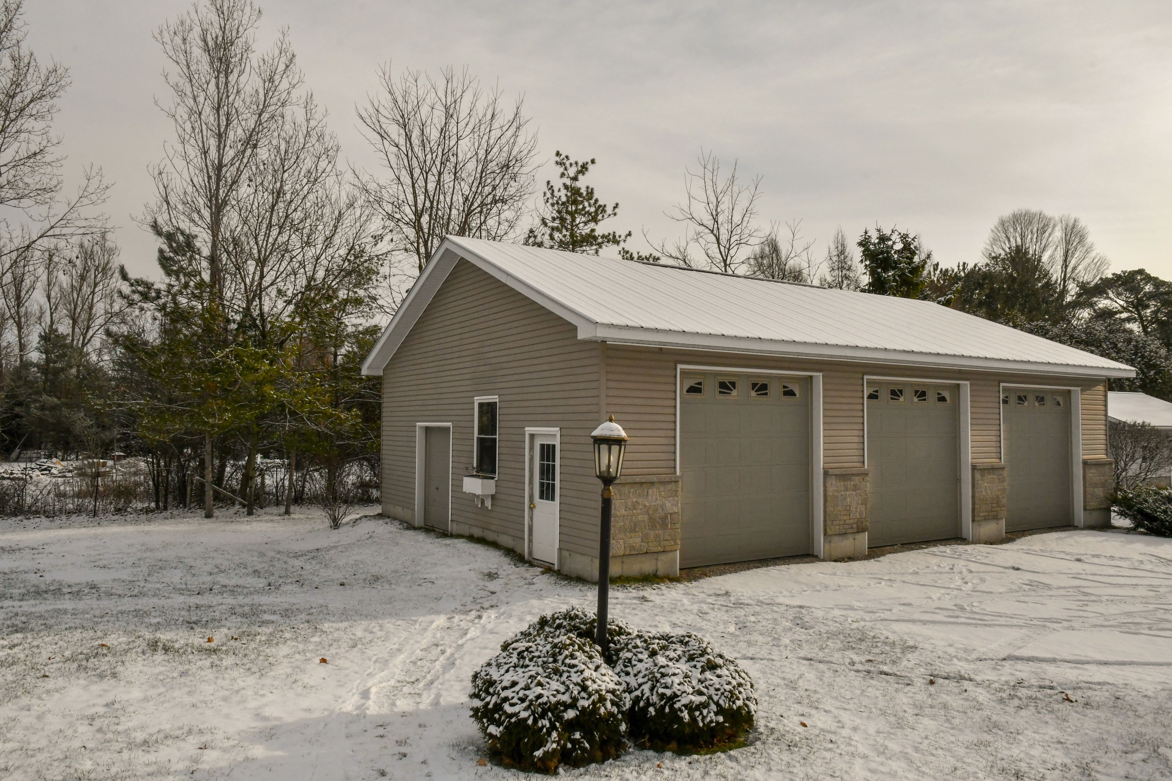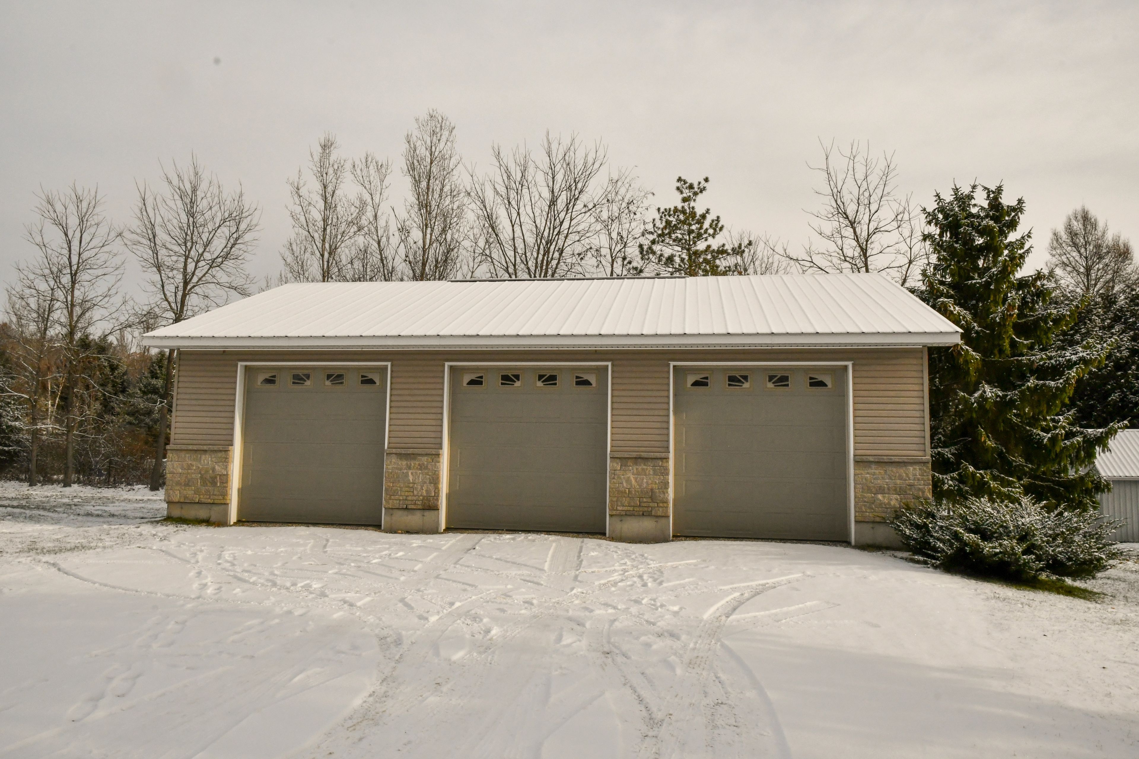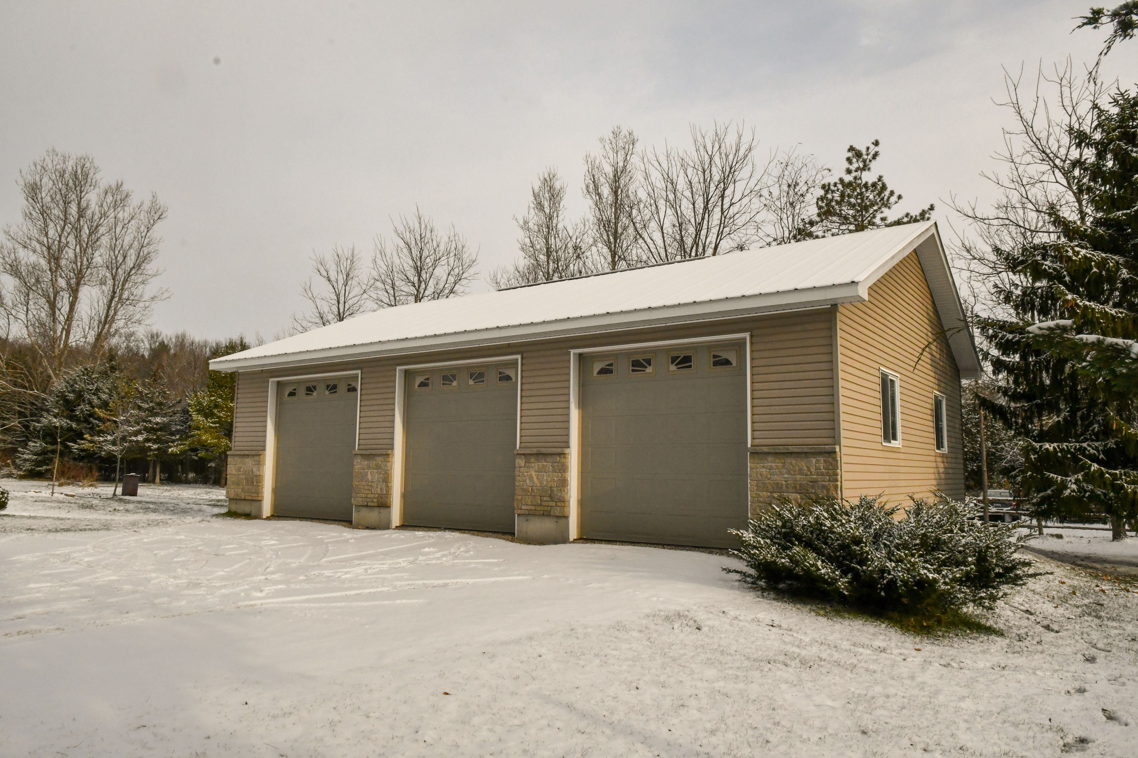 • Large 3-bay garage for vehicles and additional storage.