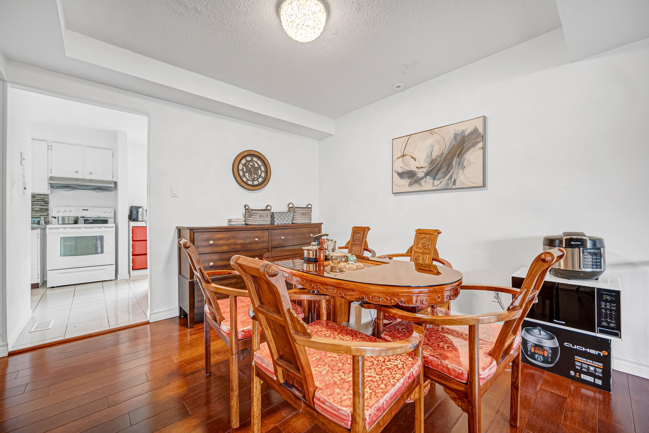 High demand area . Walking distance to the shopping, school, parks, and highwy 404. Solid hardwood floor, gas furnace, all furnitures included.