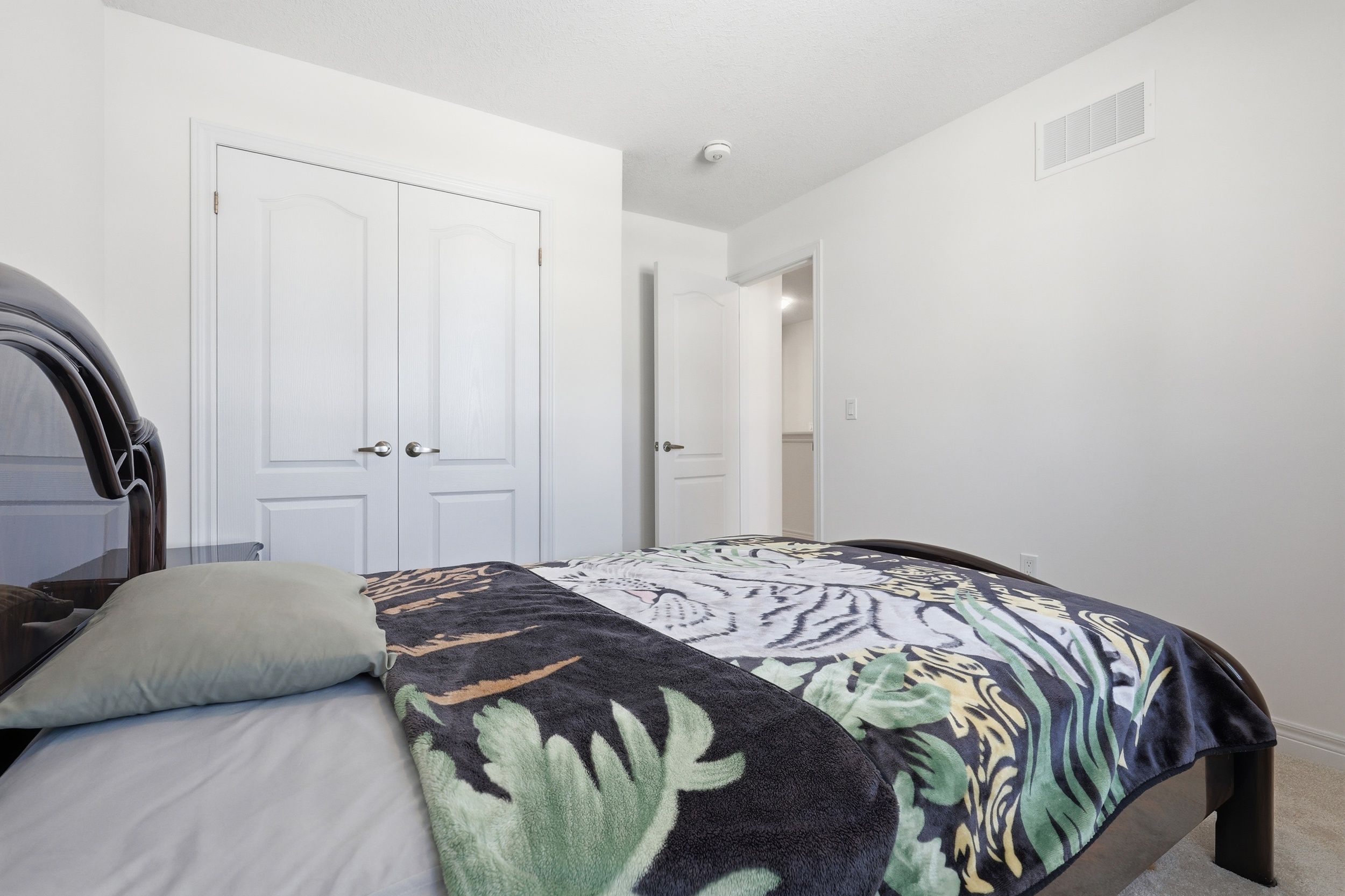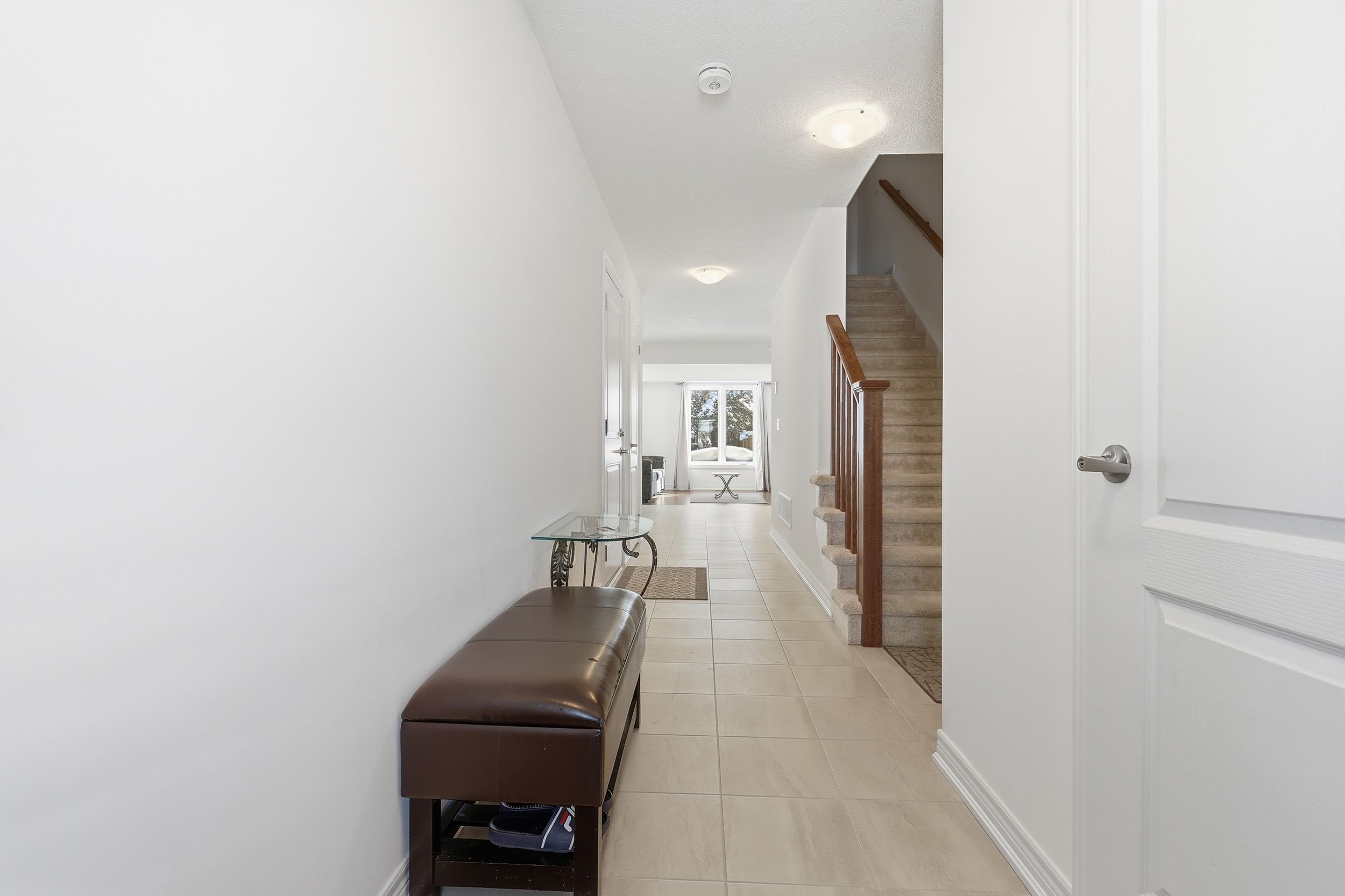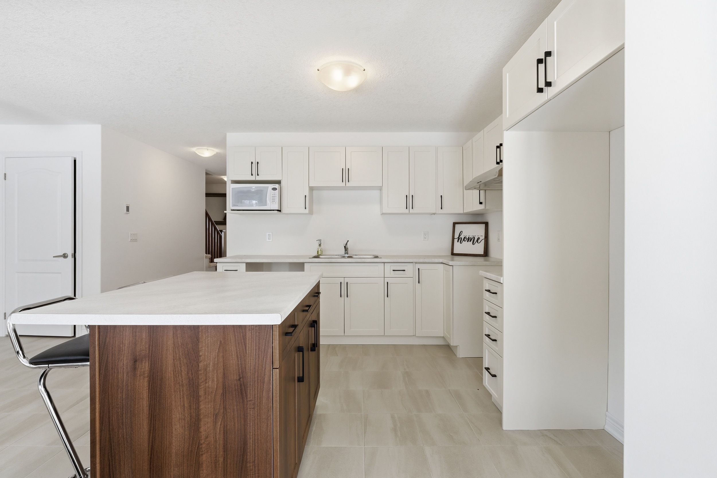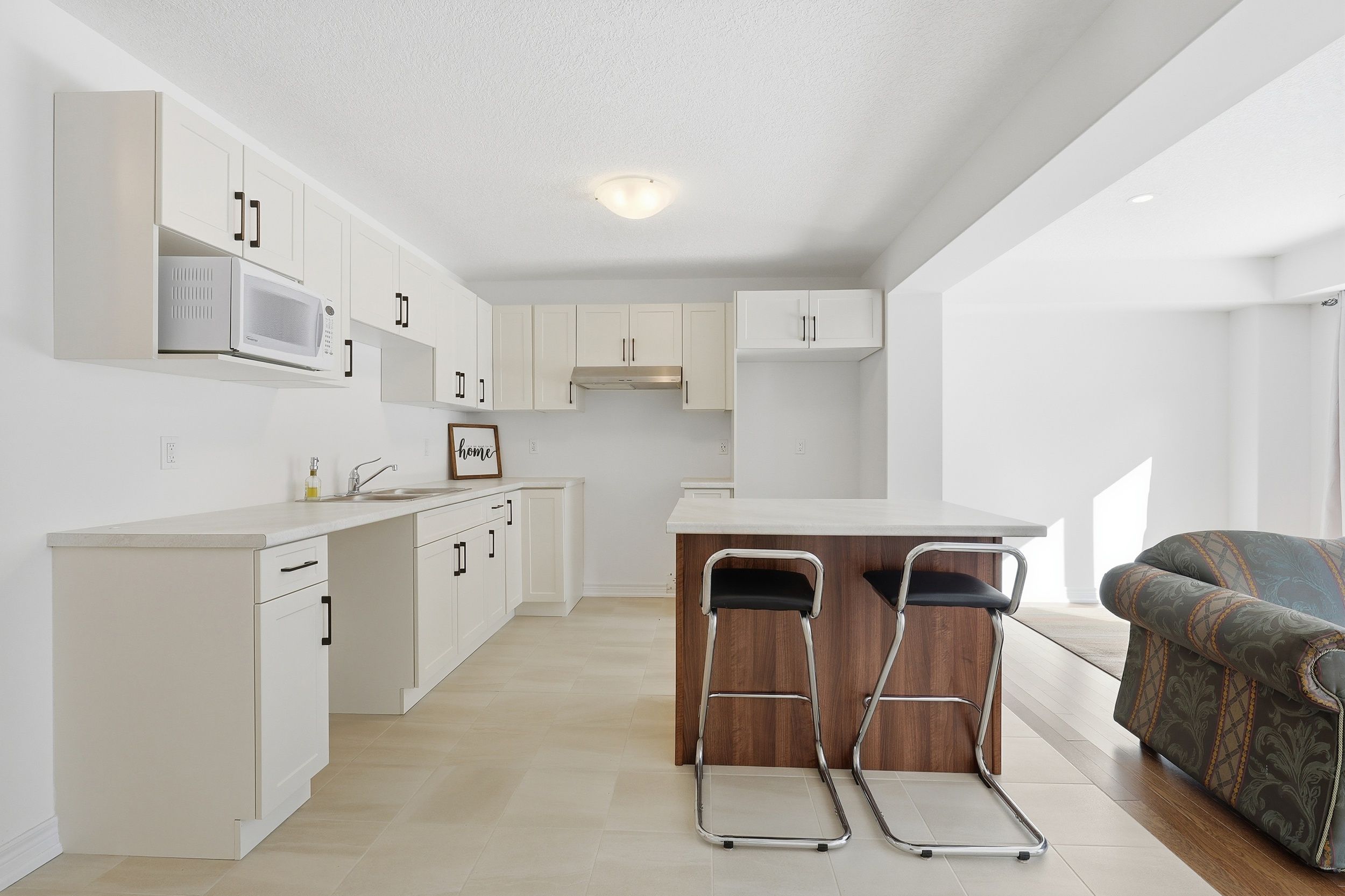 Step into this beautifully finished three-bedroom, three-bathroom freehold townhome, ideallylocated near all essential amenities. Connected only by the garage, the home offers exceptional privacy along with a spacious, fenced backyard. Inside, premium engineered hardwood flooring spans the main level, complementing a sleek modern kitchen with custom cabinetry and a breakfast-bar island. The open-concept design is enhanced by stylish potlights, creating a bright and inviting atmosphere. The generous living room is perfect for entertaining, while the unspoiled basement features arough-in for a three-piece bathroom, offering excellent potential for future expansion. Upstairs, the primary suite includes a four-piece ensuite and a walk-in closet. Enjoy peacefuloutdoor living in the large backyard, ideal for relaxing or hosting. The oversized 17 x 20 ft. Garage provides direct access to both the home and yard, adding everyday convenience.