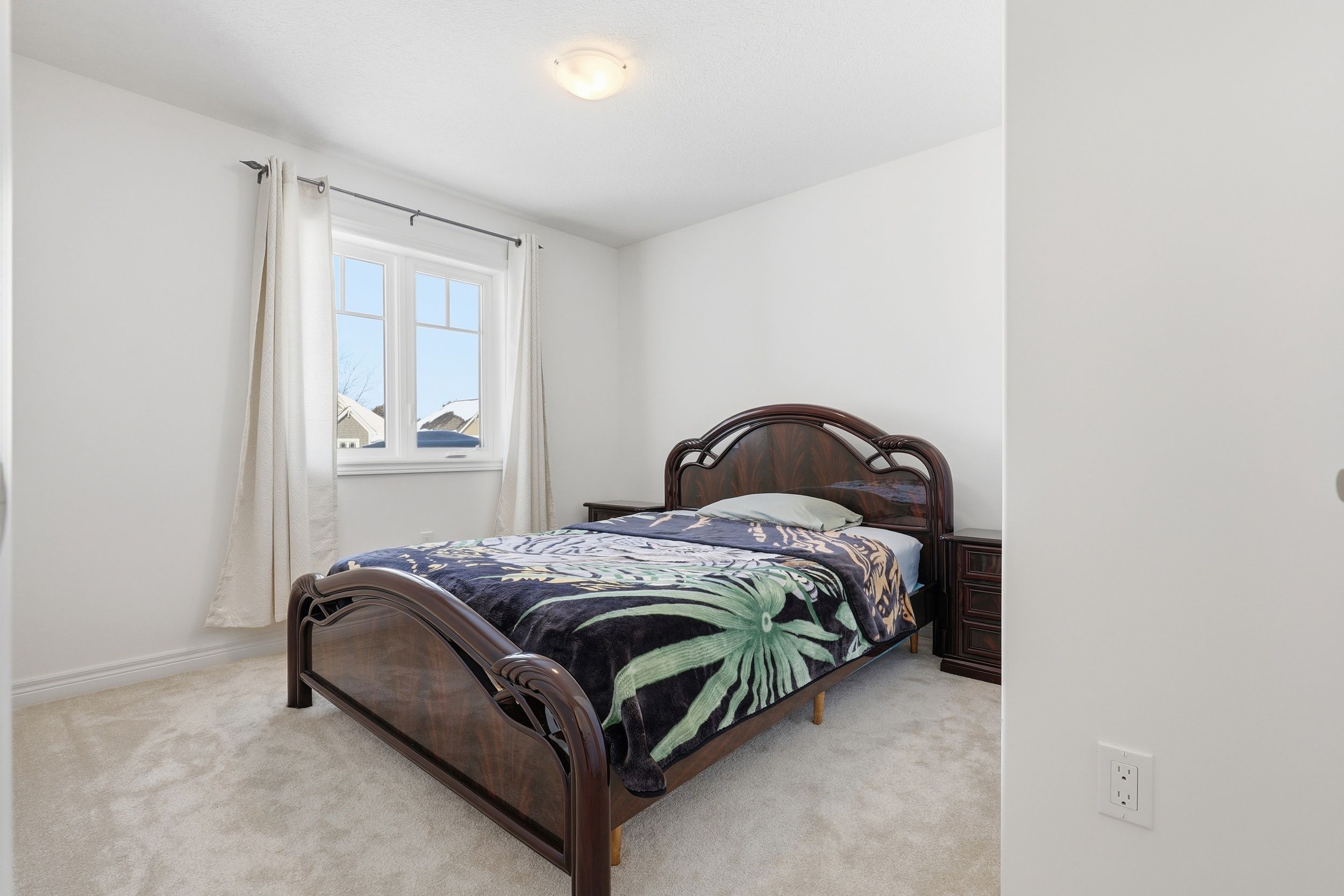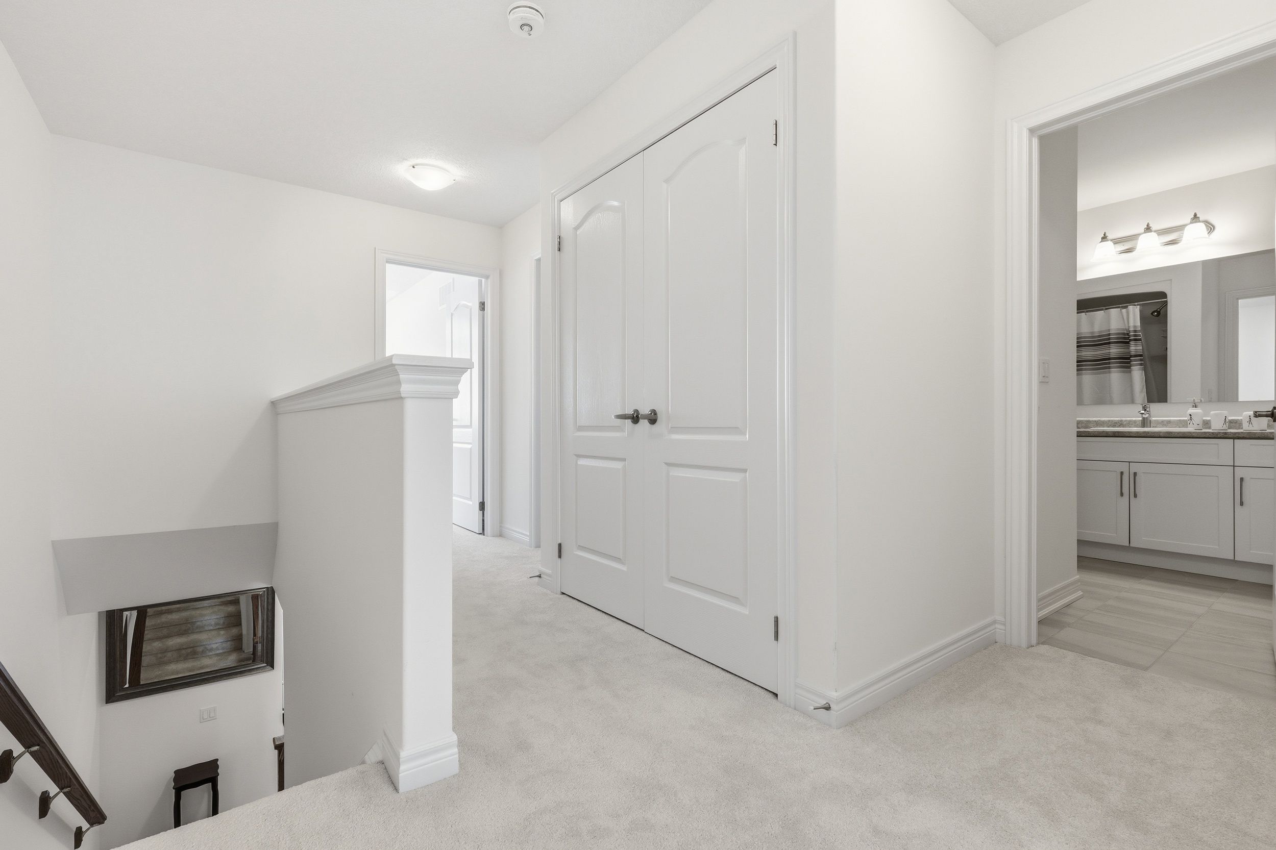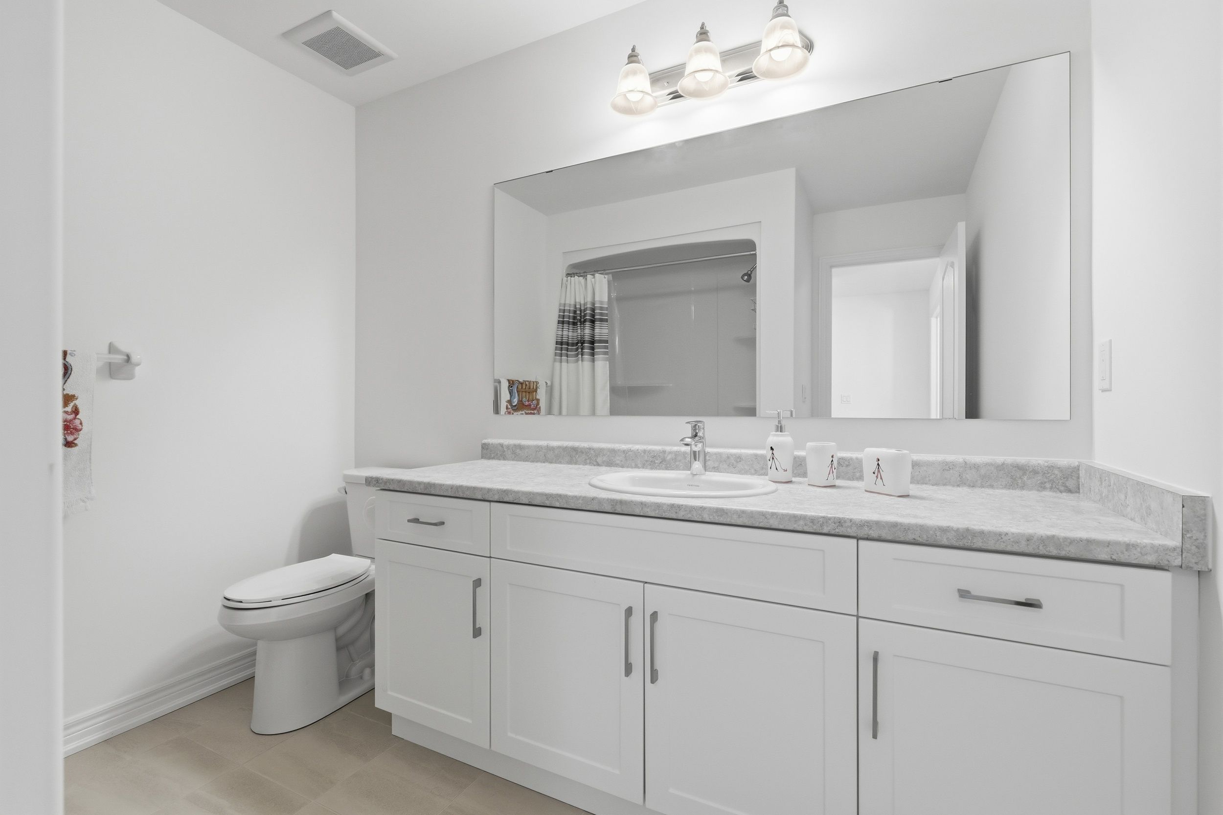 Step into this beautifully finished three-bedroom, three-bathroom freehold townhome, ideallylocated near all essential amenities. Connected only by the garage, the home offers exceptional privacy along with a spacious, fenced backyard. Inside, premium engineered hardwood flooring spans the main level, complementing a sleek modern kitchen with custom cabinetry and a breakfast-bar island. The open-concept design is enhanced by stylish potlights, creating a bright and inviting atmosphere. The generous living room is perfect for entertaining, while the unspoiled basement features arough-in for a three-piece bathroom, offering excellent potential for future expansion. Upstairs, the primary suite includes a four-piece ensuite and a walk-in closet. Enjoy peacefuloutdoor living in the large backyard, ideal for relaxing or hosting. The oversized 17 x 20 ft. Garage provides direct access to both the home and yard, adding everyday convenience.