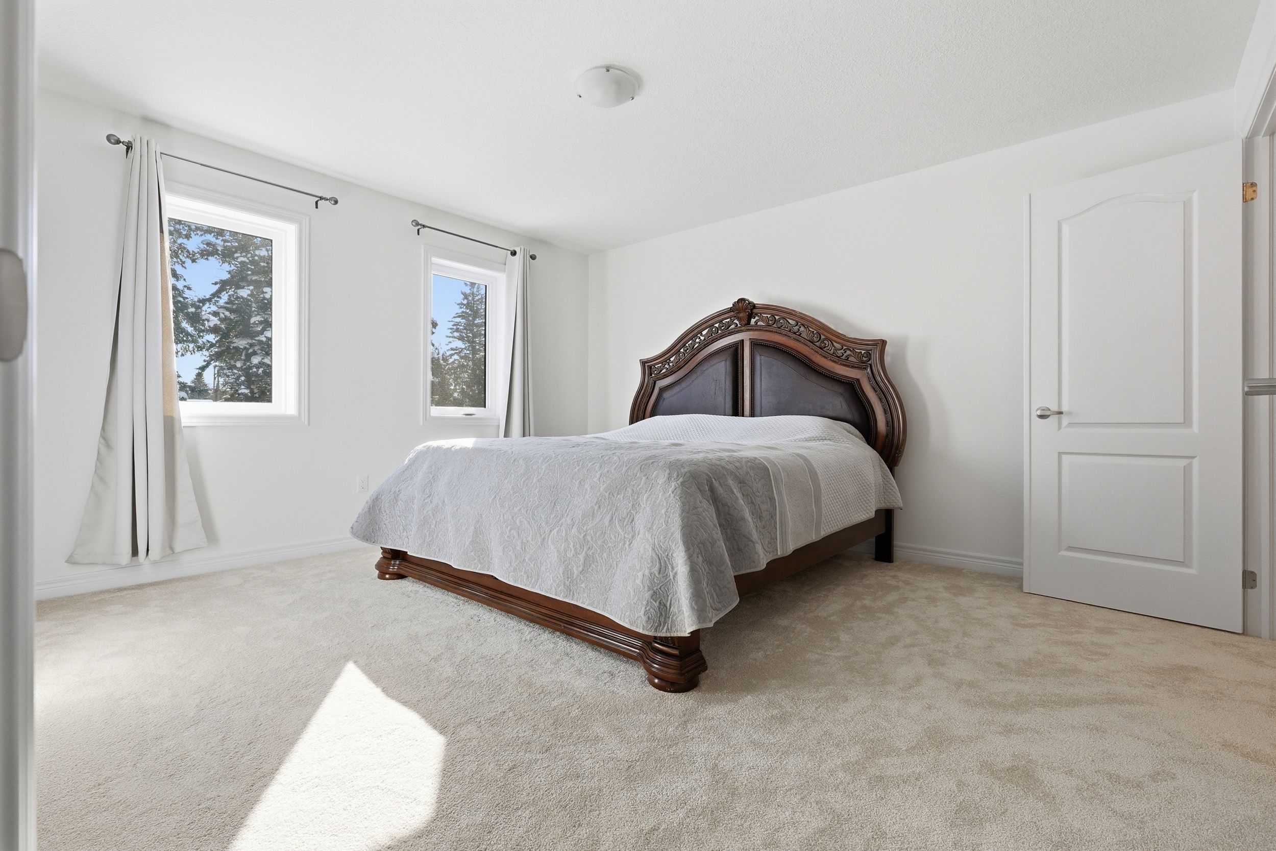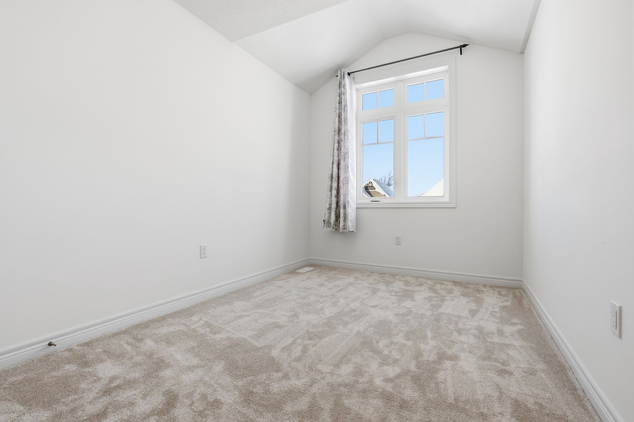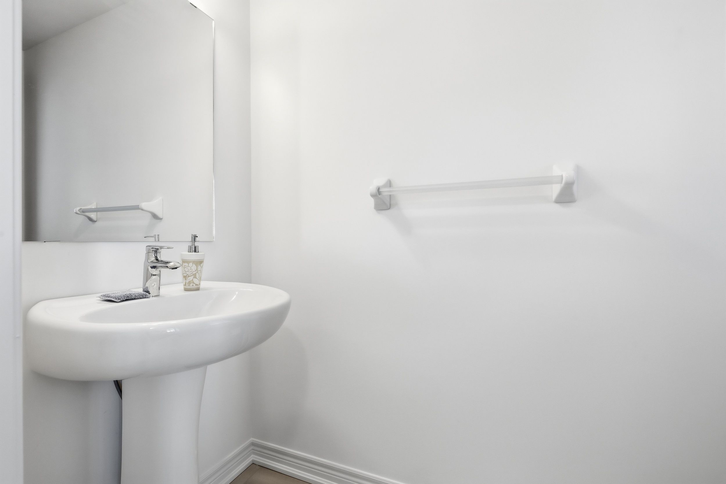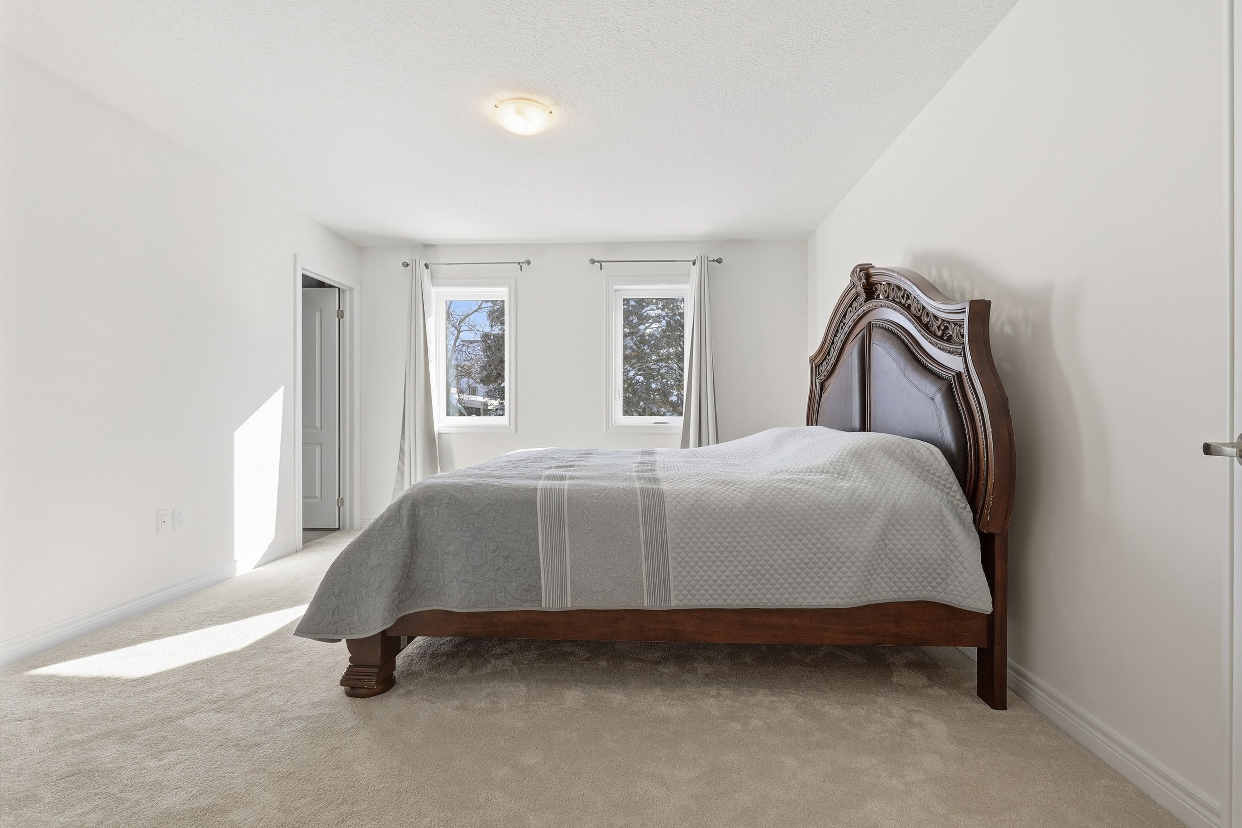 Step into this beautifully finished three-bedroom, three-bathroom freehold townhome, ideallylocated near all essential amenities. Connected only by the garage, the home offers exceptional privacy along with a spacious, fenced backyard. Inside, premium engineered hardwood flooring spans the main level, complementing a sleek modern kitchen with custom cabinetry and a breakfast-bar island. The open-concept design is enhanced by stylish potlights, creating a bright and inviting atmosphere. The generous living room is perfect for entertaining, while the unspoiled basement features arough-in for a three-piece bathroom, offering excellent potential for future expansion. Upstairs, the primary suite includes a four-piece ensuite and a walk-in closet. Enjoy peacefuloutdoor living in the large backyard, ideal for relaxing or hosting. The oversized 17 x 20 ft. Garage provides direct access to both the home and yard, adding everyday convenience.