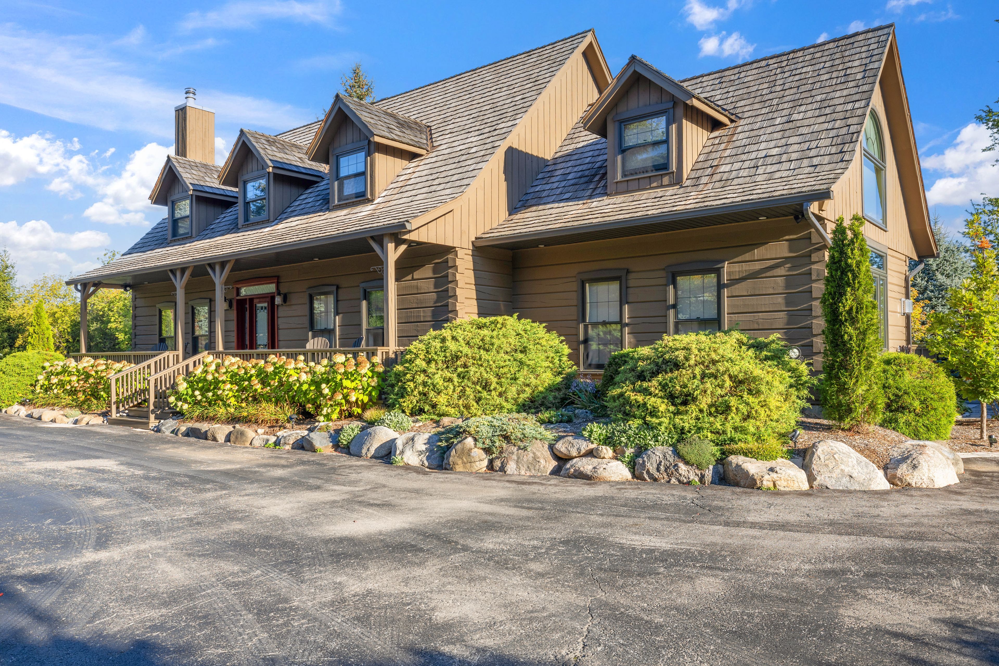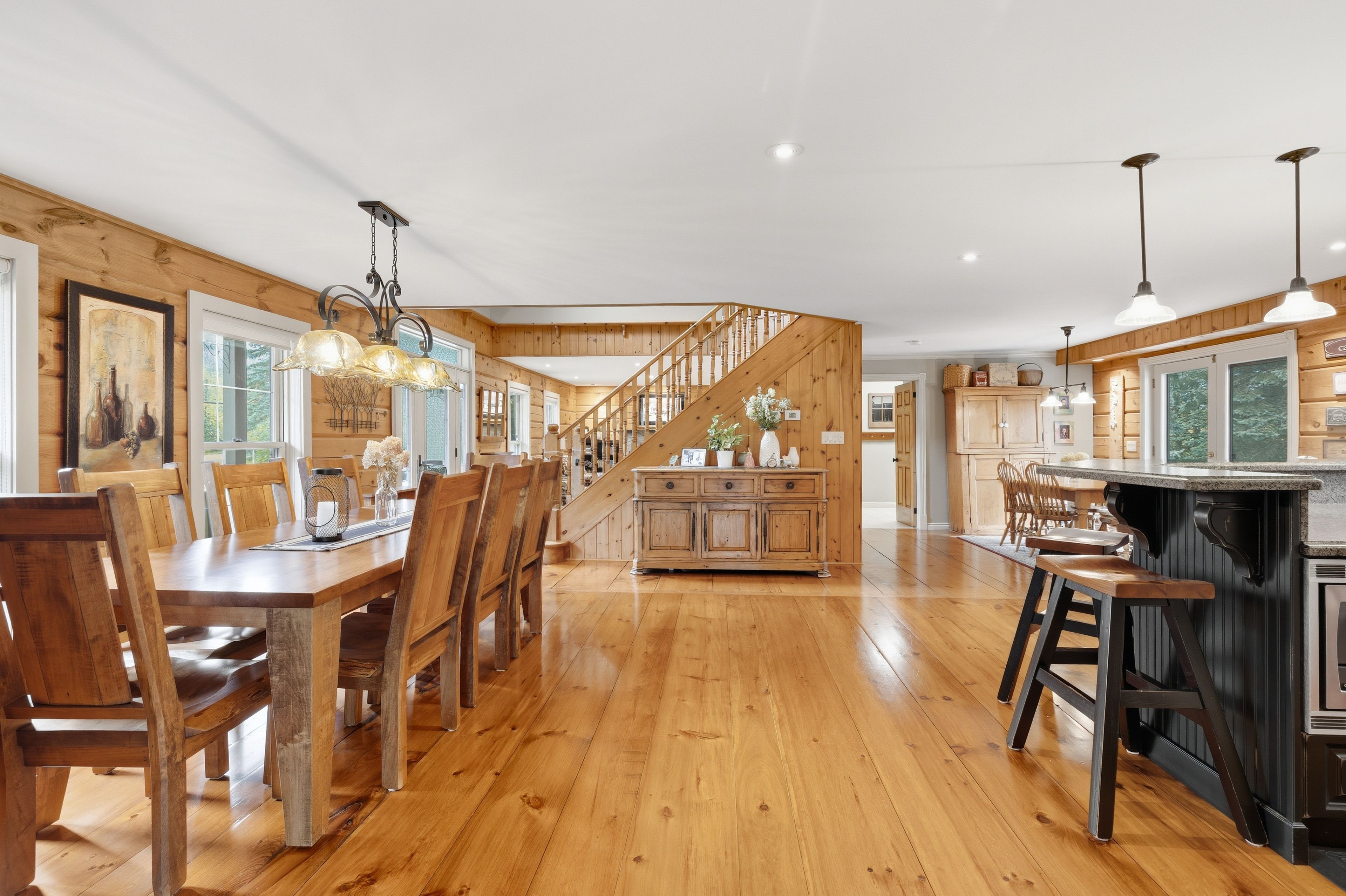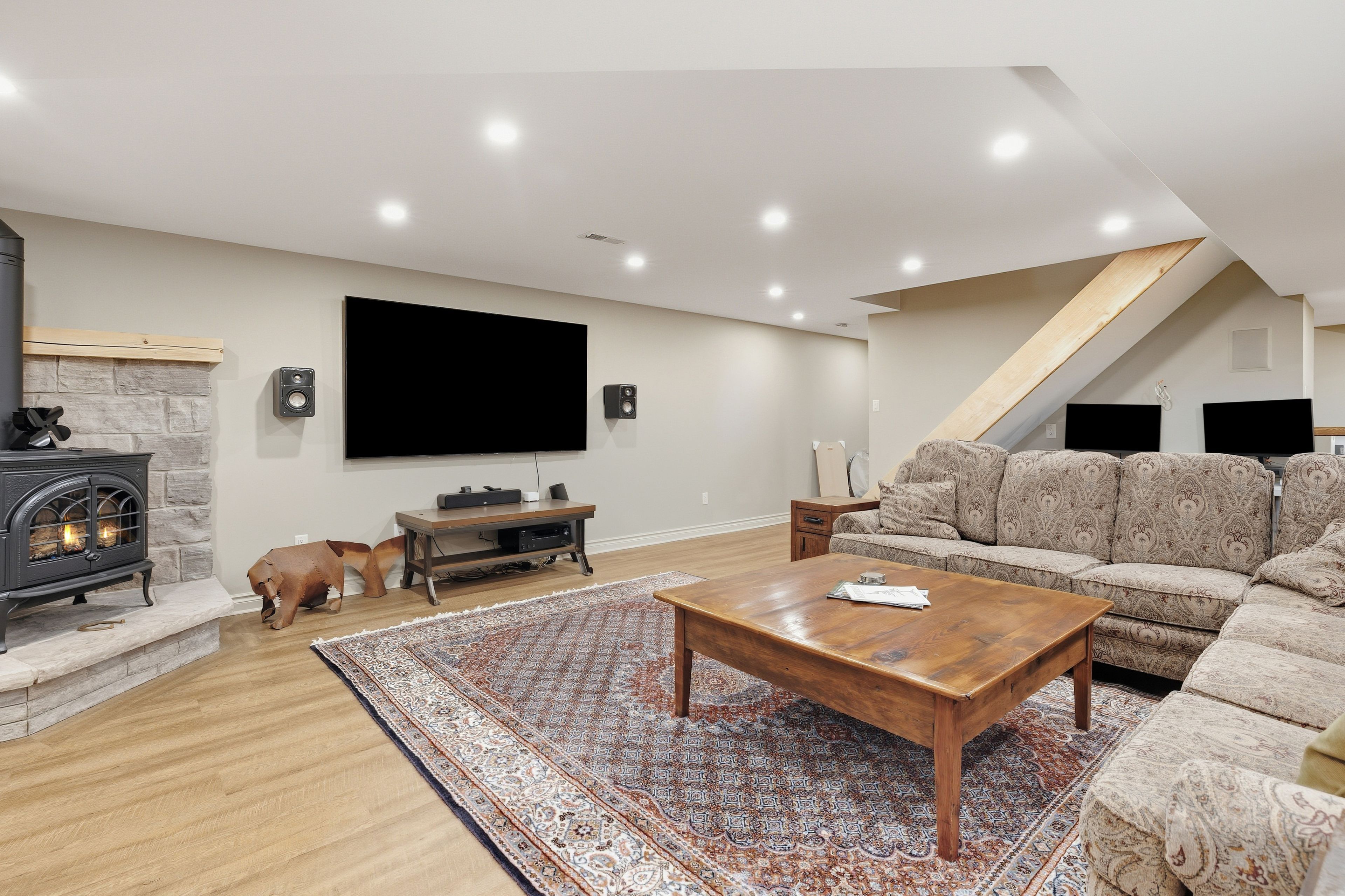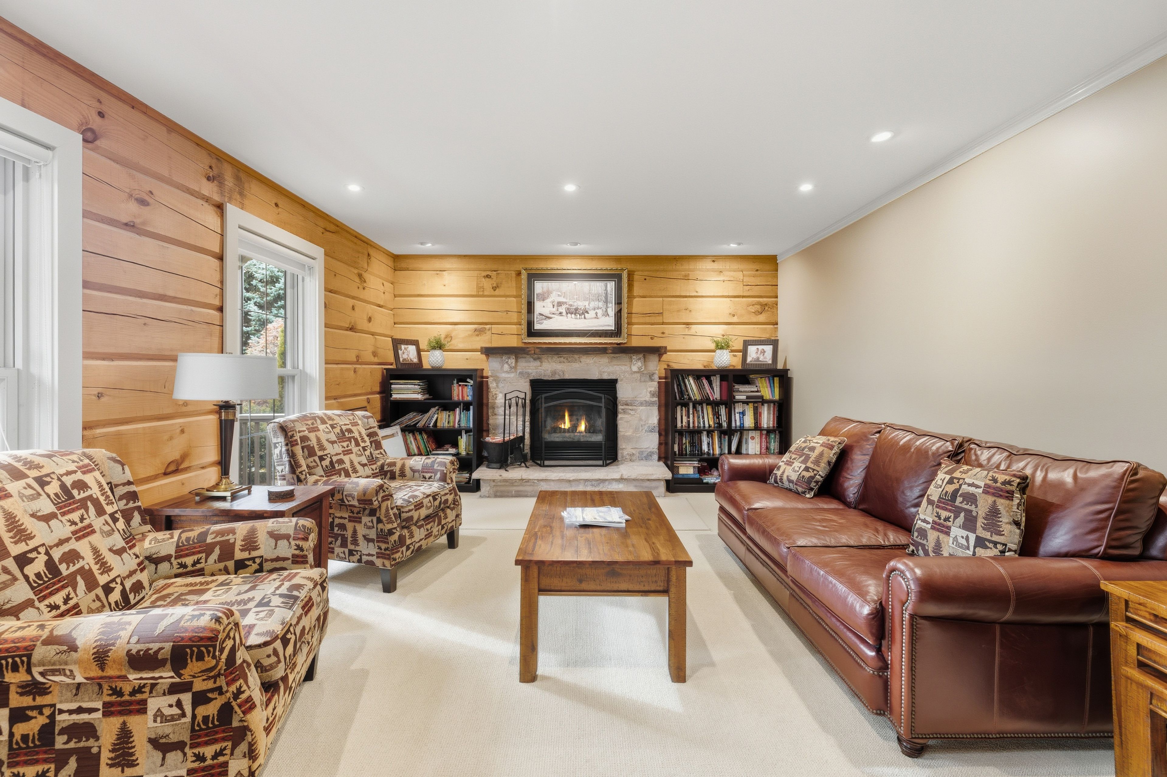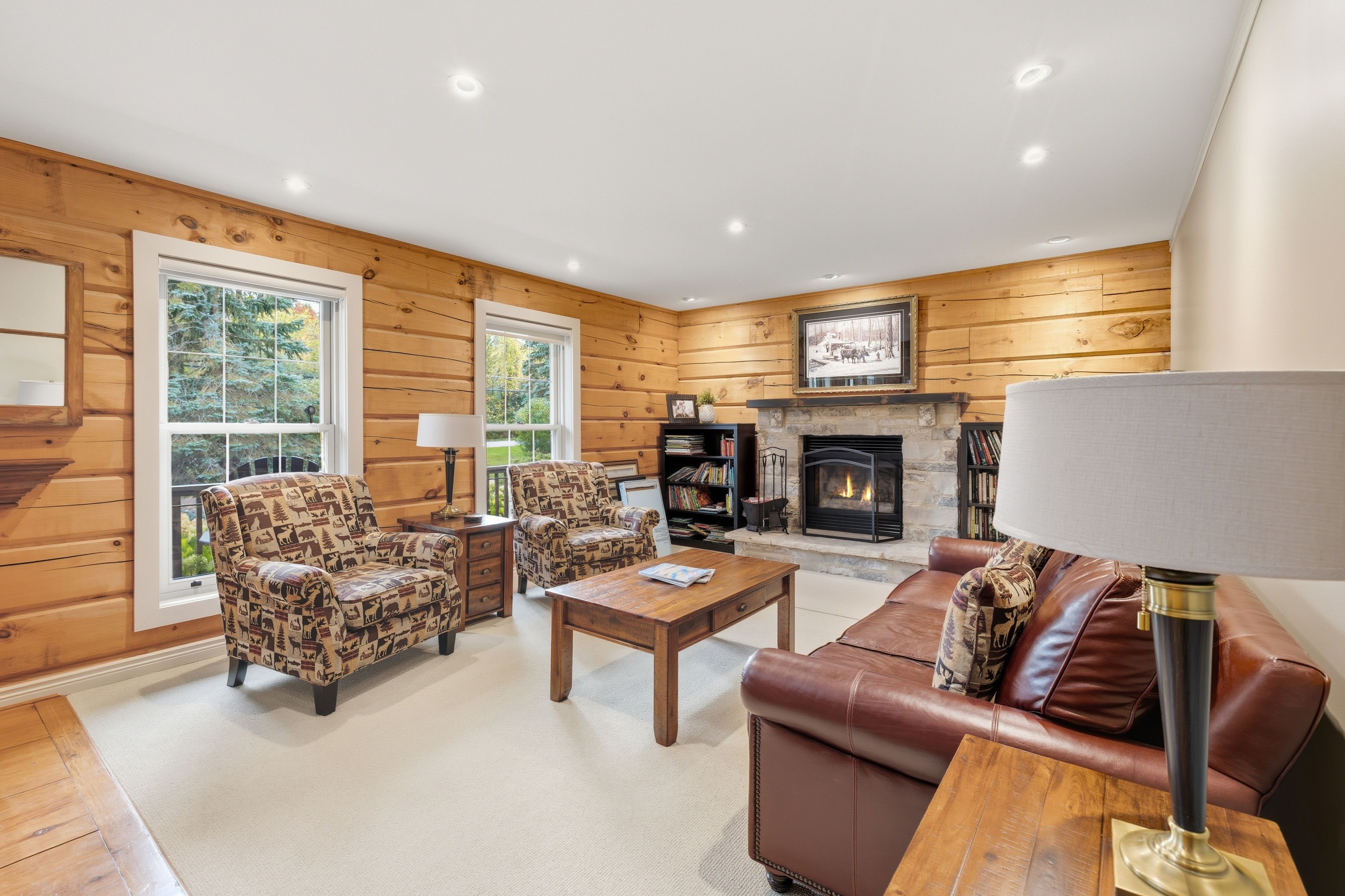 Tucked between the georgian peaks and the georgian bay club, this beautifully appointed 5-bedroom, 4-bath home offers the perfect blend of warmth, character, and recreation-ready living. Set on a large, landscaped lot that backs directly onto the georgian trail, this property invites a lifestyle filled with outdoor adventure and memorable gatherings with family and friends. Inside, wide-plank wood floors and a wood-burning fireplace create an inviting atmosphere, while the open-concept layout flows effortlessly for entertaining. The fully finished lower level provides plenty of space for overflow guests, a games room, or cozy movie nights after a day on the slopes or at the beach. Step outside to an expansive back deck where you can soak in the hot tub beneath the stars, or follow the trail from your backyard for a morning walk or bike ride. The oversized 36'x24' detached garage with 10'x9' door offers endless possibilities-storage for your gear, a workshop, or even future expansion. With the potential for future lot severance, this property is not only a place to live-it's a place to grow, gather, and create lasting memories. Ideally situated close to skiing, golf, trails, and the waterfront, and just a short drive to thornbury, blue mountain village, and collingwood.