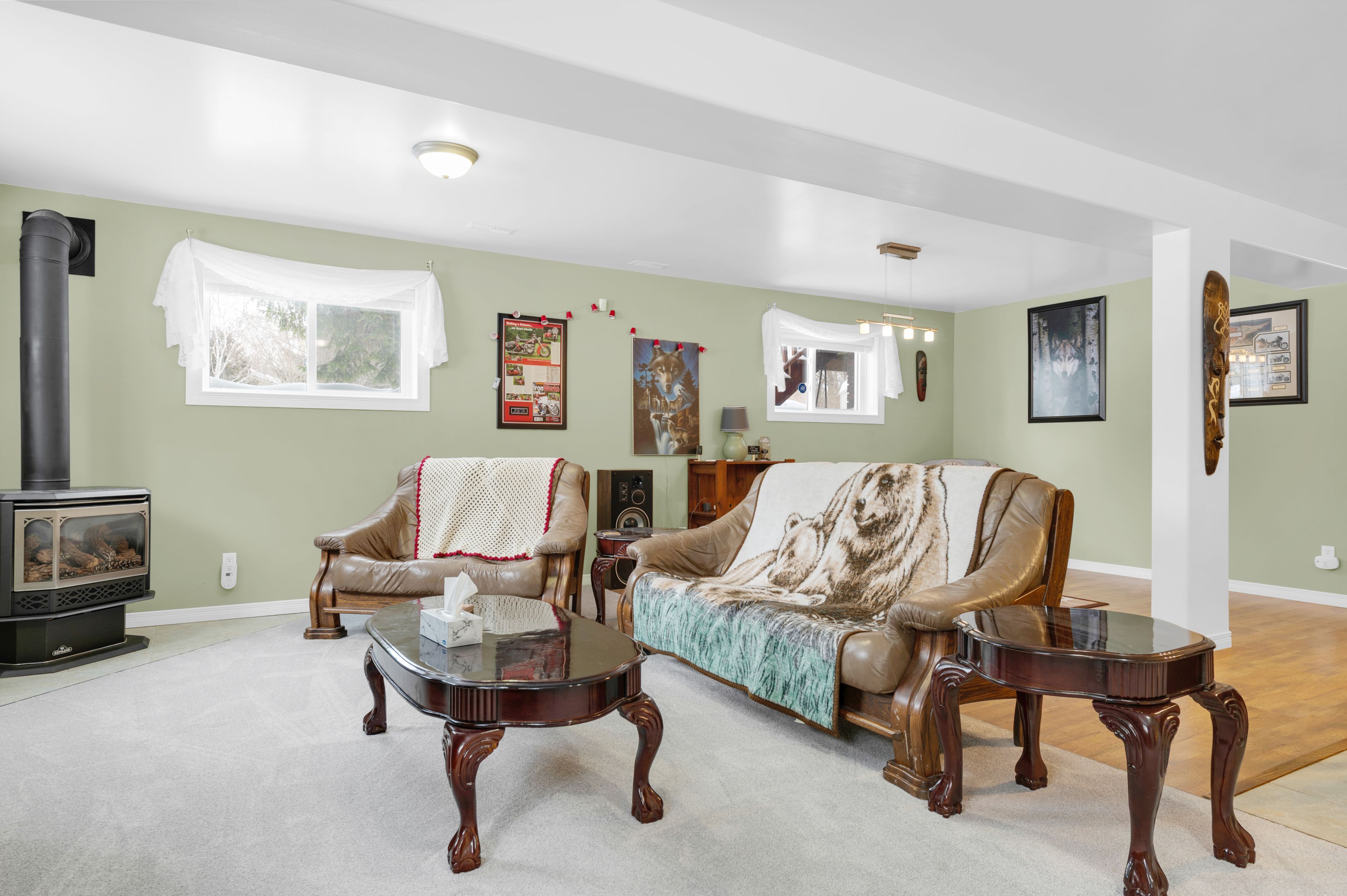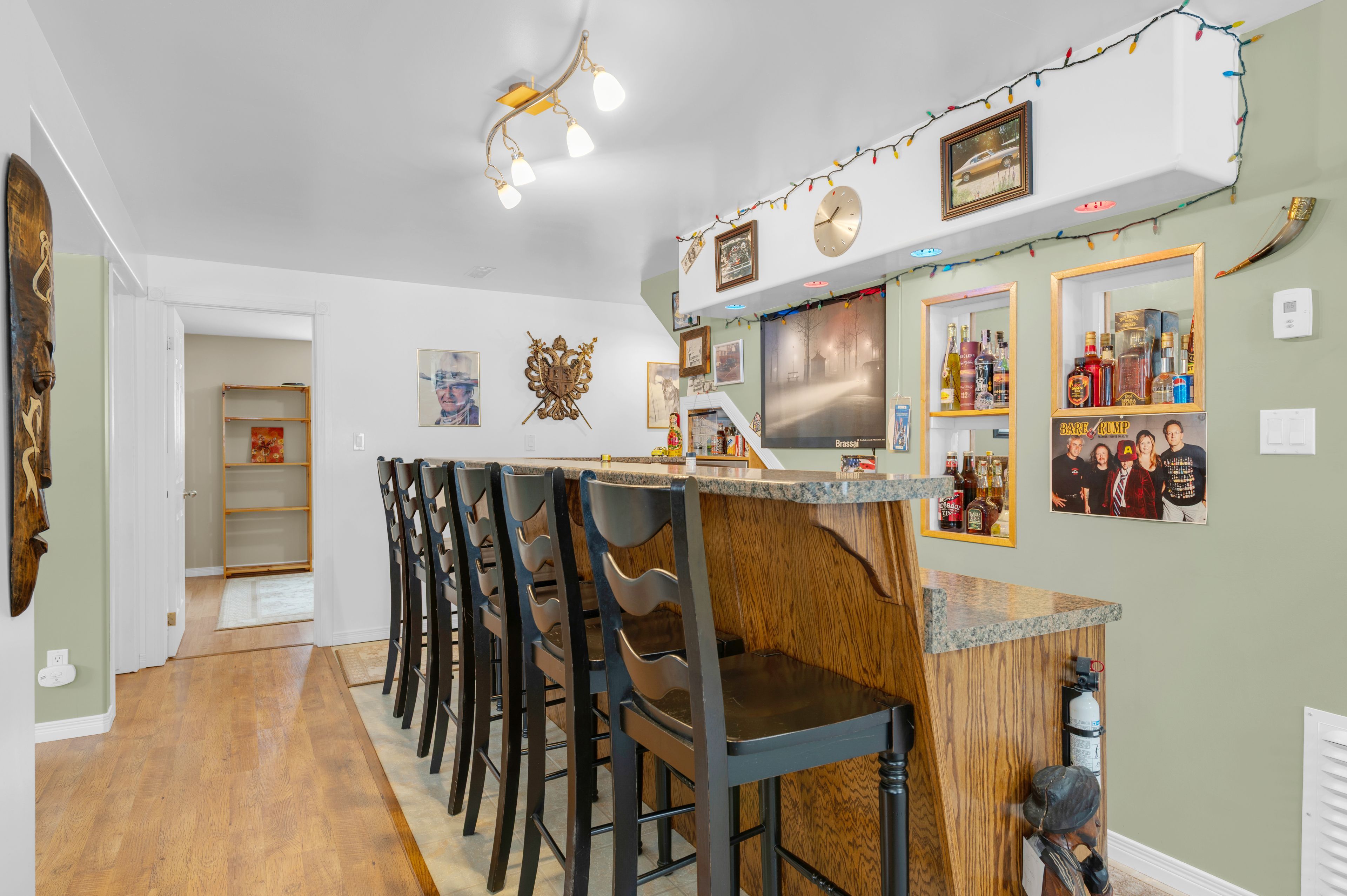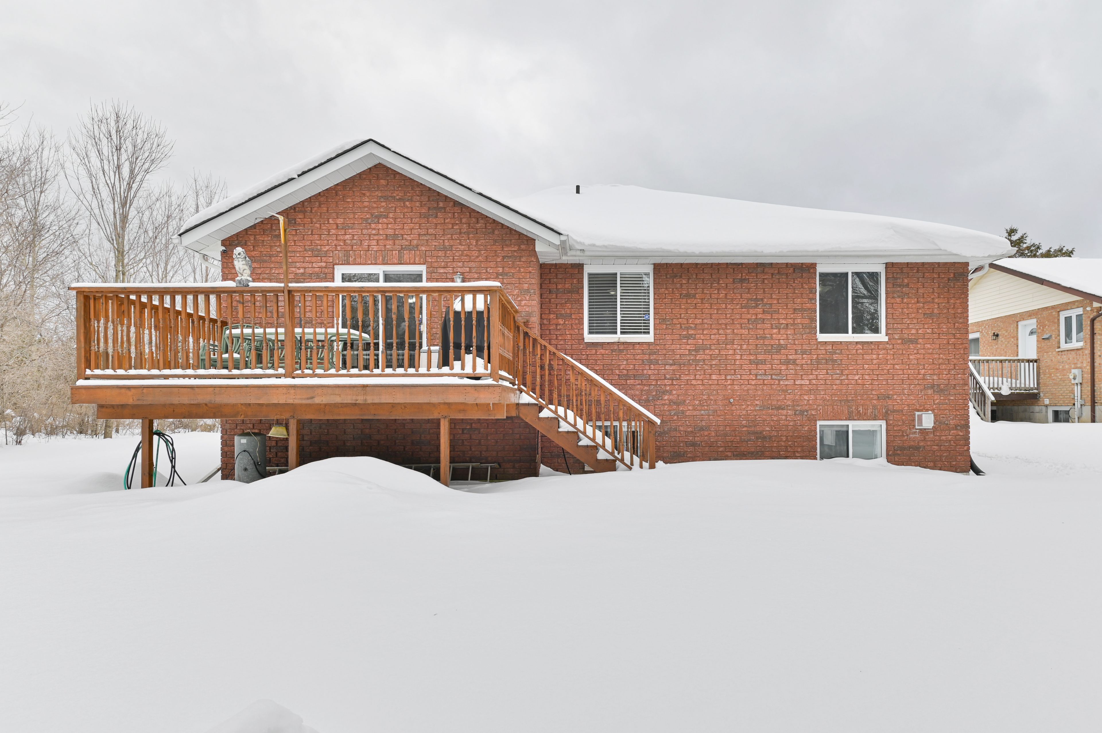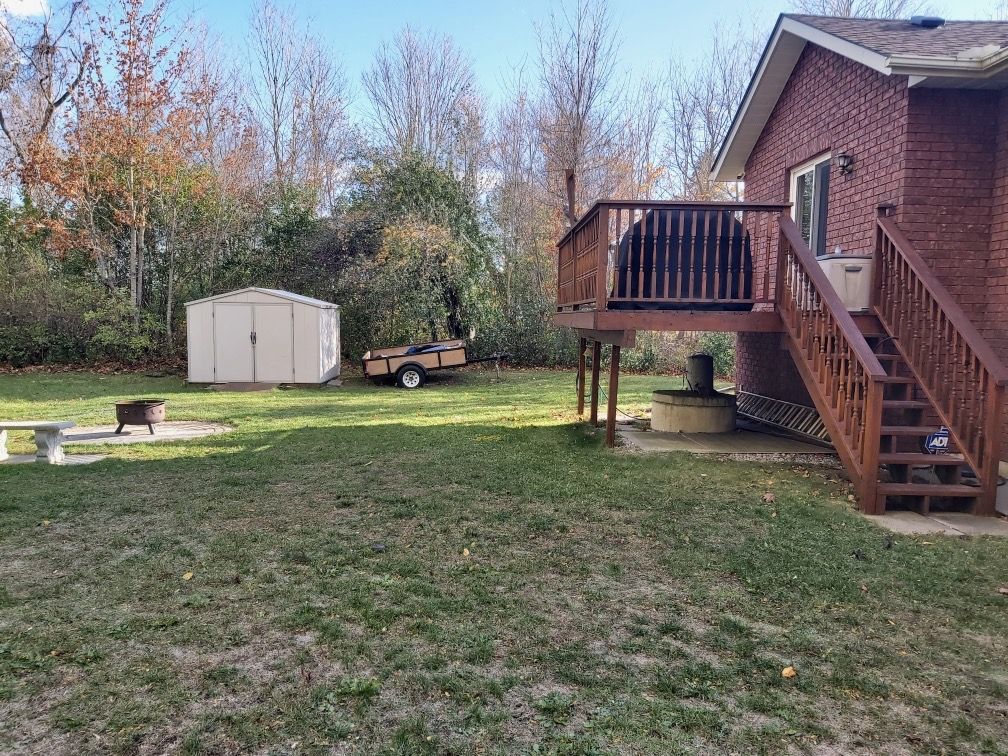 Welcome to a stunning, detached full-brick bungalow where quality finishes and thoughtful design meet the needs of modern multi-generational living. Step through the oversized foyer and into a bright, spacious layout that immediately feels like home. The main level is an entertainer's dream, featuring a large eat-in kitchen with generous counter space, perfectly flowing into the living and dining area, accented by crown molding and rich maple hardwood flooring. This floor hosts three spacious bedrooms, including a private primary suite complete with a 4-piece ensuite. One of the secondary bedrooms offers flexibility, currently serving as a home office but easily convertible. A second 4-piecebathroom and a convenient main-floor laundry facility complete this level. The fully finished lower level is a true standout, offering a spectacular in-law or guest suite. It boasts a brand-new kitchen with appliances, two additional bedrooms with oversized windows for abundant natural light, and a 3-piece bathroom. The expansive rec room is designed for entertaining, featuring a eight-seat wet bar and a cozy freestanding gas fireplace, providing the perfect retreat and games area. Beyond the interior, the home offers fantastic additional features; attached, finished garage that is both heated and cooled; paved driveway complemented by an interlocking brick walkway; aback deck overlooking a peaceful yard, complete with a firepit; and generator hookup for reliable power. Completely finished from top to bottom, this home delivers the perfect blend of comfort, style, and functionality for your large or extended family.