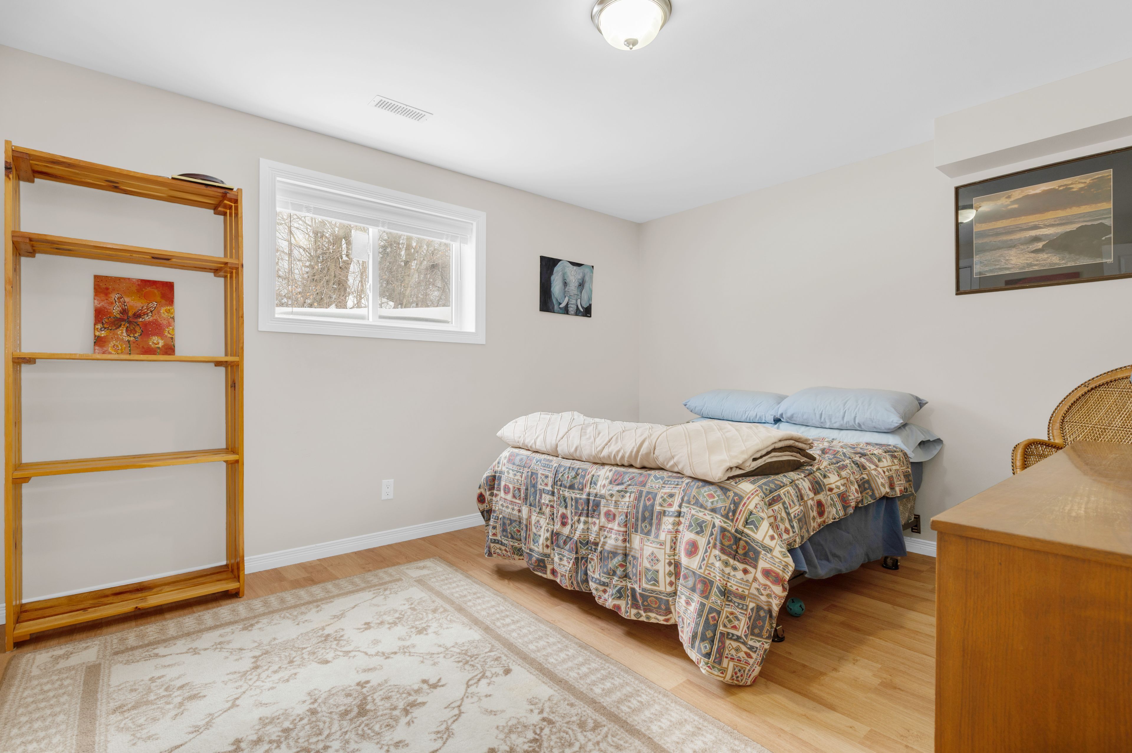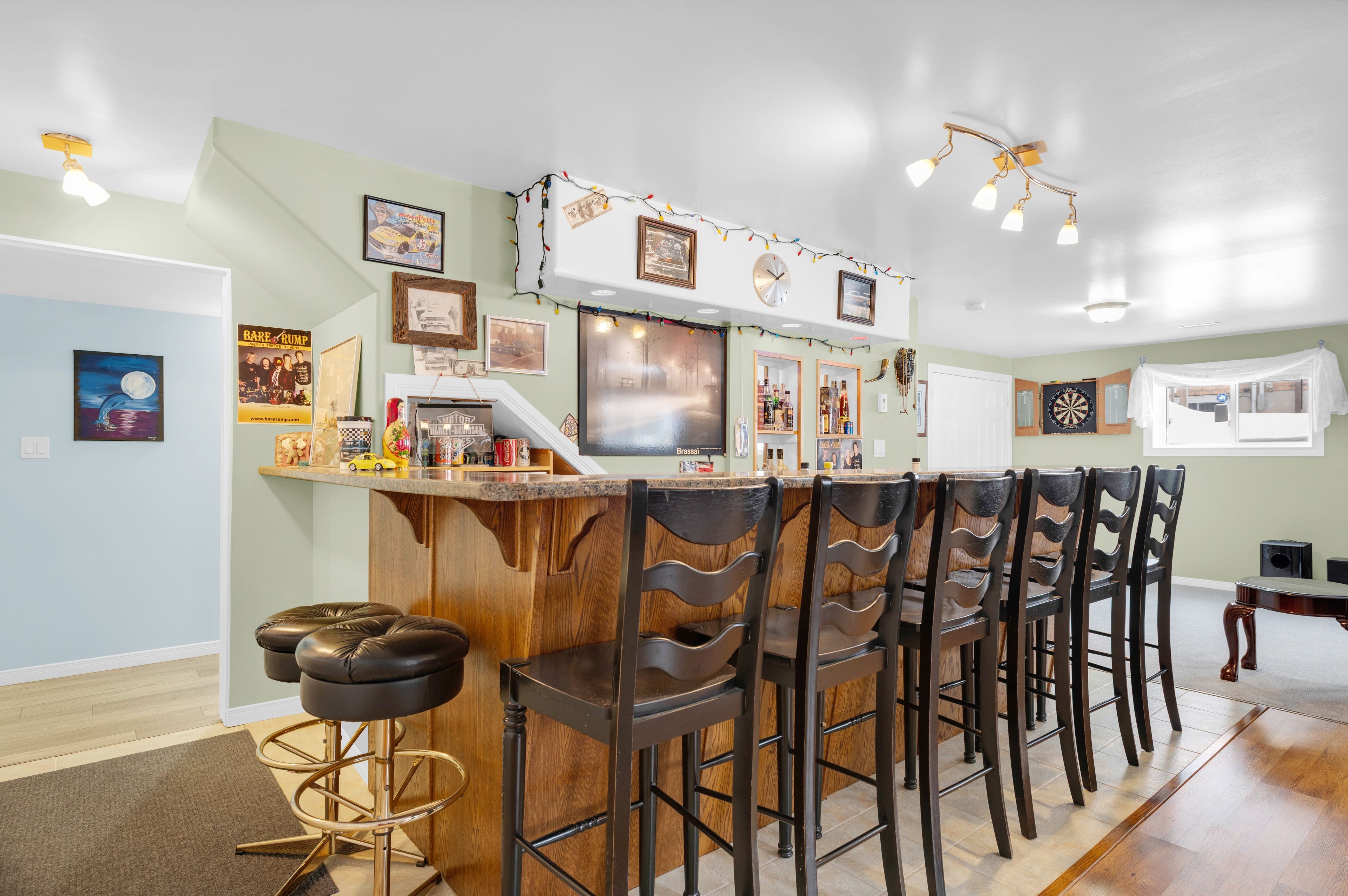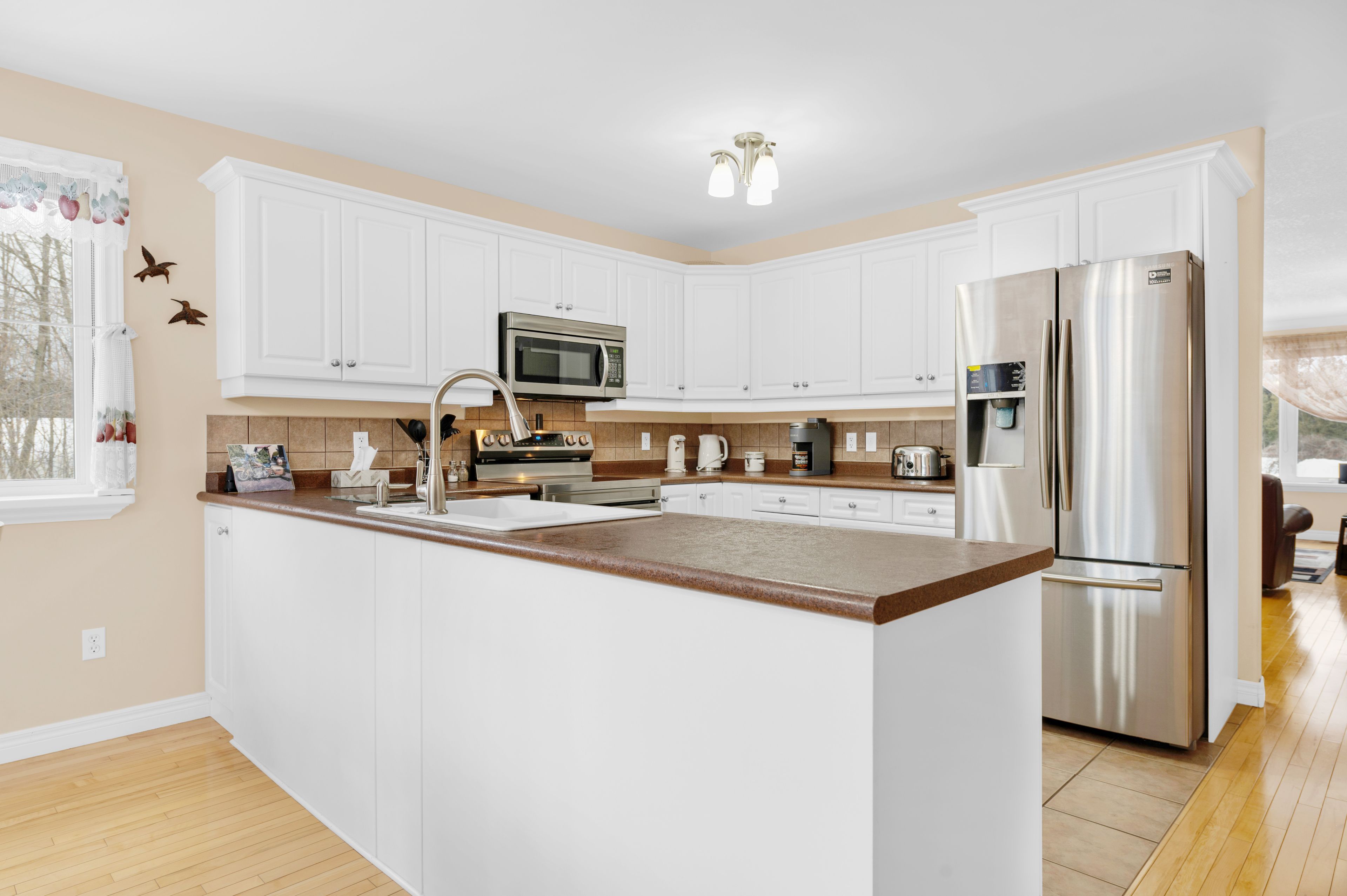 Welcome to a stunning, detached full-brick bungalow where quality finishes and thoughtful design meet the needs of modern multi-generational living. Step through the oversized foyer and into a bright, spacious layout that immediately feels like home. The main level is an entertainer's dream, featuring a large eat-in kitchen with generous counter space, perfectly flowing into the living and dining area, accented by crown molding and rich maple hardwood flooring. This floor hosts three spacious bedrooms, including a private primary suite complete with a 4-piece ensuite. One of the secondary bedrooms offers flexibility, currently serving as a home office but easily convertible. A second 4-piecebathroom and a convenient main-floor laundry facility complete this level. The fully finished lower level is a true standout, offering a spectacular in-law or guest suite. It boasts a brand-new kitchen with appliances, two additional bedrooms with oversized windows for abundant natural light, and a 3-piece bathroom. The expansive rec room is designed for entertaining, featuring a eight-seat wet bar and a cozy freestanding gas fireplace, providing the perfect retreat and games area. Beyond the interior, the home offers fantastic additional features; attached, finished garage that is both heated and cooled; paved driveway complemented by an interlocking brick walkway; aback deck overlooking a peaceful yard, complete with a firepit; and generator hookup for reliable power. Completely finished from top to bottom, this home delivers the perfect blend of comfort, style, and functionality for your large or extended family.