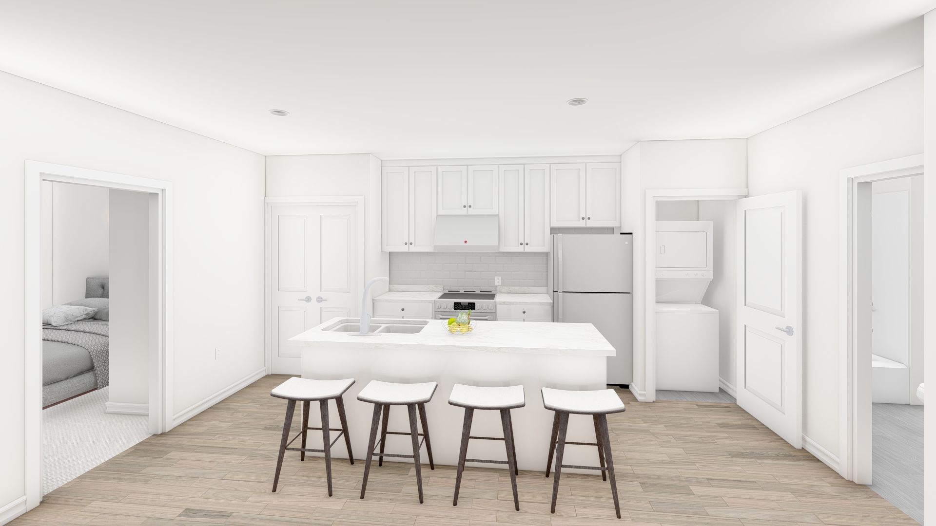 • High-end finishes with a designer kitchen and spacious walk-in closet.