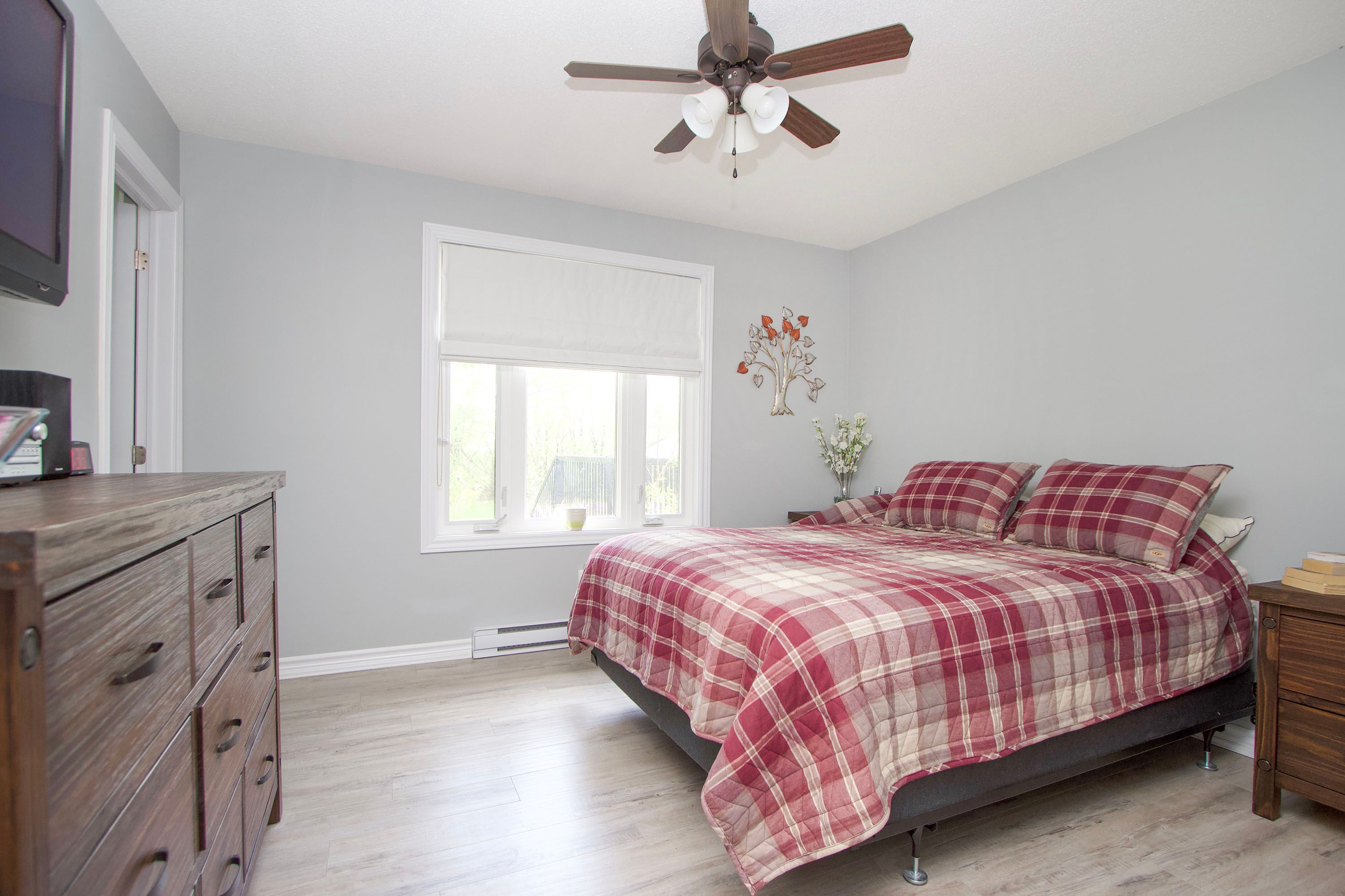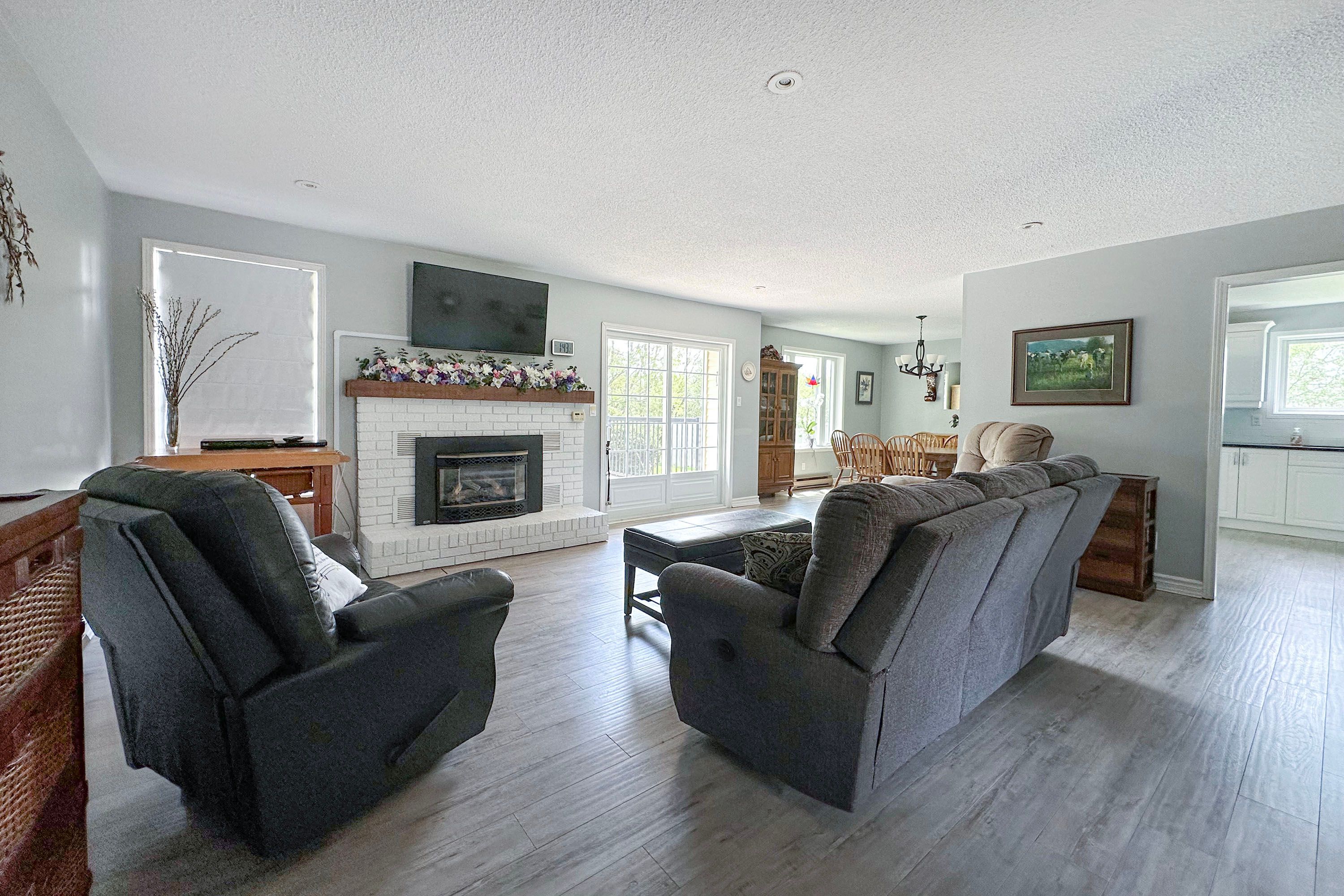 Sought after woods of manilla subdivision bungalow sitting on a half acre lot with professional main floor updates in 2021 includes new kitchen, new flooring, 2 beautifully updated bathrooms w/walk in shower & heated floors, all new attic insulation +++. Bright living room / dining room leads to a great 19' x 21' deck offering great views of the private backyard. The dining room opens to very bright kitchen, with a plenty of counter space, offering great space for a coffee bar. Gas fireplace insert heats the entire house (baseboards for back up have minimal use). 3 bedrooms makes this a perfect family home (bedroom 3 currently converted to a main floor laundry room, easily converted back). Window air conditioner cools the entire upstairs. Basement finished rec rm with freestanding gas fireplace is a great space for entertaining, tv room, play room etc. So cozy with additional space for storage & a future washroom if required. 200 amp service giving you an opportunity to add electric car charging station. Fiber optic internet. Energy efficient home with last years gas costs of $1,256. 24, electricity $1,212. 73. 2019 shingles, 2024 newly paved driveway. 15 min to port perry & 20 min to lindsay makes this a great location for country living with shops and amentias close. Just off simcoe street makes for easy commuting.