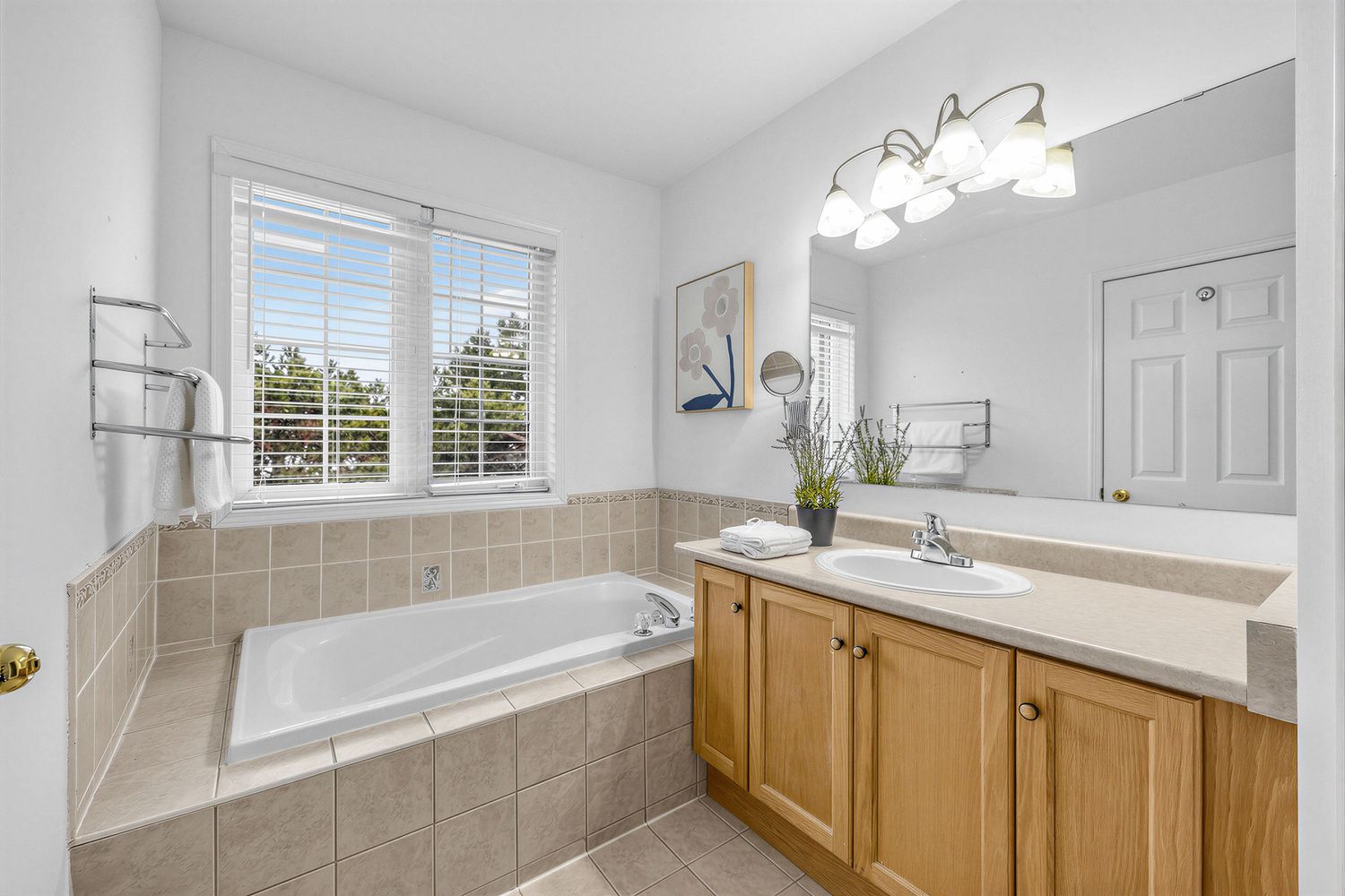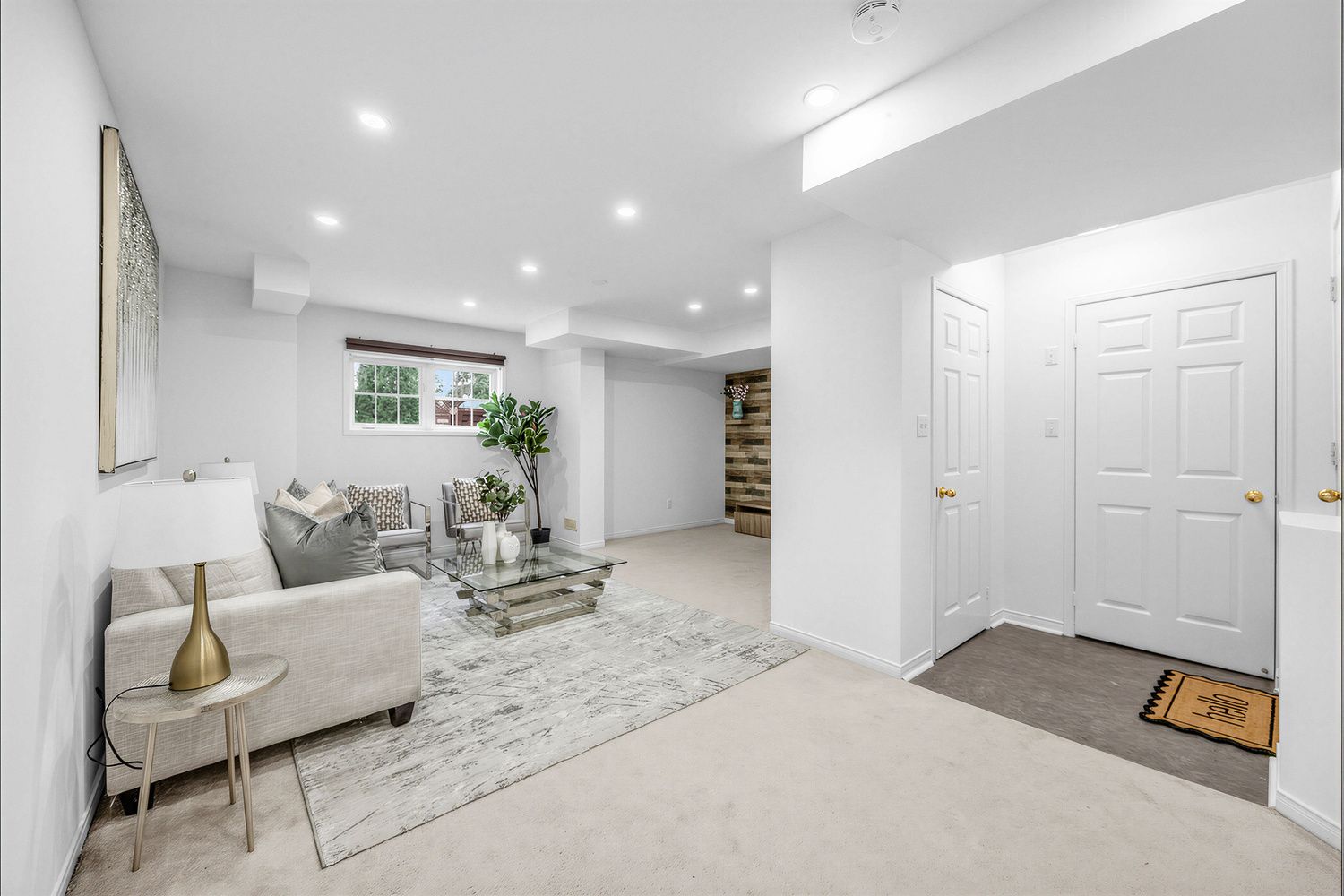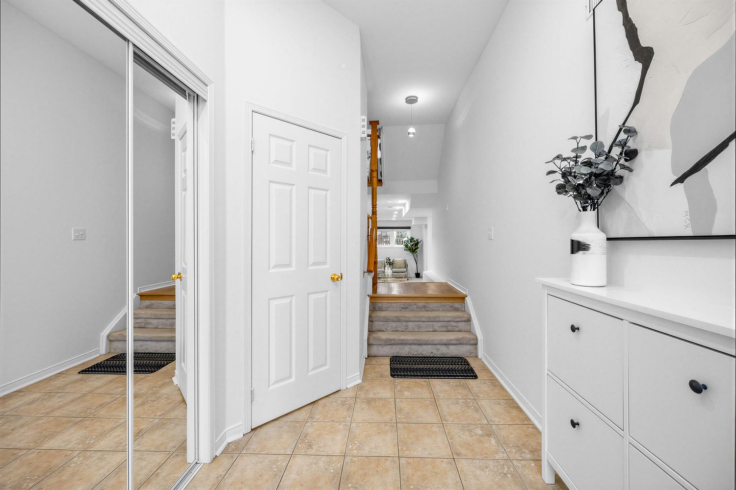 Absolutely stunning, well-maintained freehold townhome! Centrally located in the heart of downtown whitby move-in ready! Offering approximately 1,860 sq. Ft. Of finished living space, this beautifully maintained freehold townhome is perfectly situated in a highly desirable, family-friendly neighbourhood. Just minutes to whitby go station, with quick access to highways 401, 412 & 407, commuting iseffortless. The spacious primary suite features a 4-piece ensuite with a relaxing soaker tub and convenient laundry located just off the primary bedroom. The modern kitchen is equipped with quartz countertops and stainless steel appliances-ideal for everyday living and entertaining. The finished basement with large windows provides incredible flexibility, perfect for a family room, home office, gym, or potential in-law suite. Major updates include the roof and furnace (2016). Interlocking stonework enhances curb appeal, while the low-maintenance front and backyard make outdoor upkeep easy. Walk to the whitby public library, local restaurants, pubs, cozy cafés, top-rated schools,shopping, recreation centre, daycare, medical clinics, and all essential amenities. Public transit is easily accessible. An exceptional opportunity to own a centrally located, move-in-ready home in vibrant downtown whitby!
