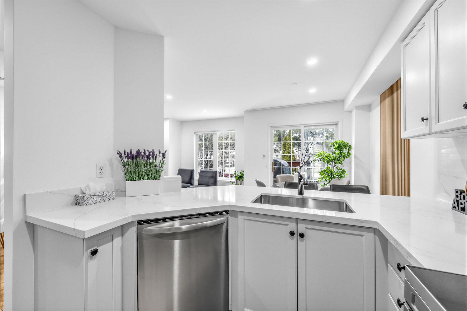 • Modern kitchen featuring quartz countertops and stainless steel appliances.