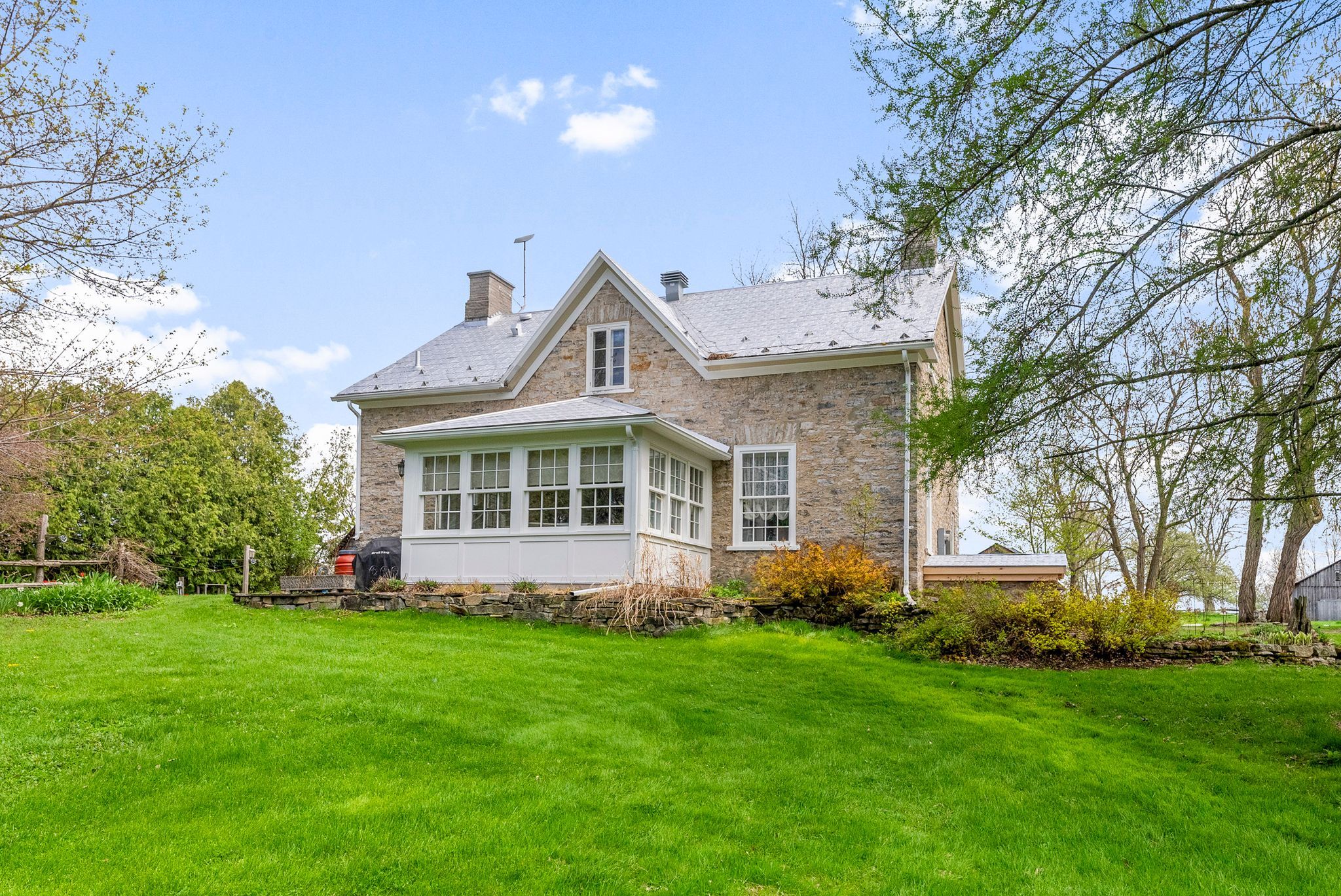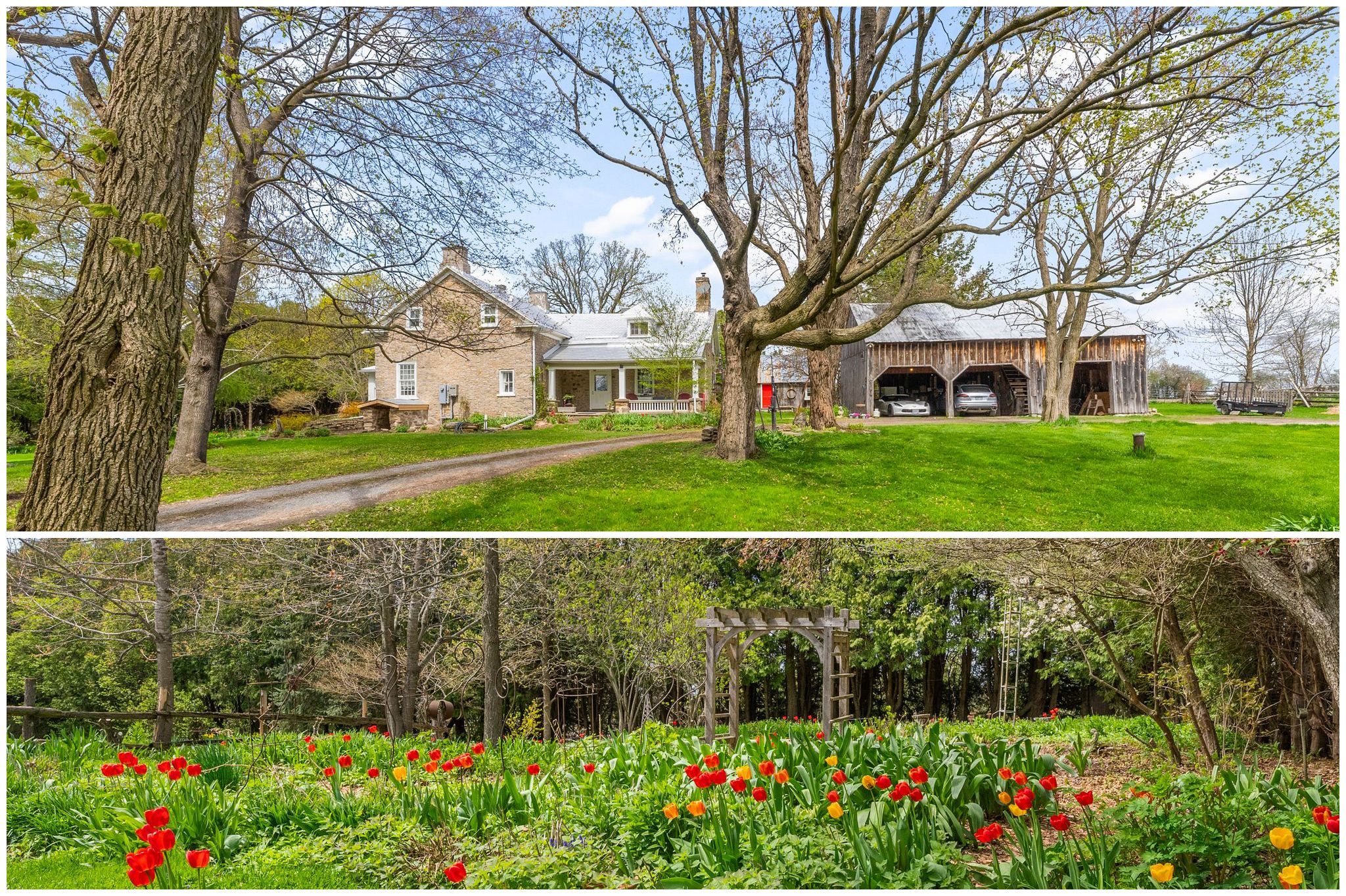 Immerse yourself in the timeless elegance of haddon hall farm, a meticulously restored stone residence exuding a profound sense of history and reverence. Originally constructed c1830 and immortalized by the esteemed artist james keirstead, this distinguished property seamlessly blends the grandeur of the past with contemporary refinement. Adorned with original stonework, antique accents, and vintage fixtures meticulously preserved to honour its authentic character, the home exudes a palpable sense of heritage and prestige. From the carefully salvaged ottawa river flooring to the original ash beams and high-efficiency wood stove, every detail speaks to a legacy of craftsmanship and tradition. The expansive grounds, spanning 9. 93 acres of picturesque landscapes, perennial gardens and charming outbuildings, offer a sanctuary for those seeking a profound connection to the past within a pastoral setting. Truly a rare gem, haddon hall farm invites you to step into a world of timeless sophistication and historical significance. It is a sanctuary for those seeking a connection to the past while indulging in the tranquility of the present. 48 hour irrevocable