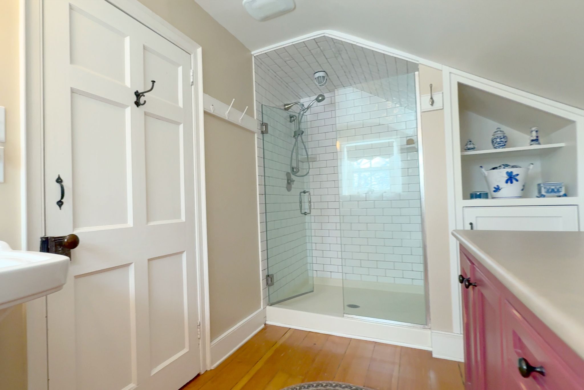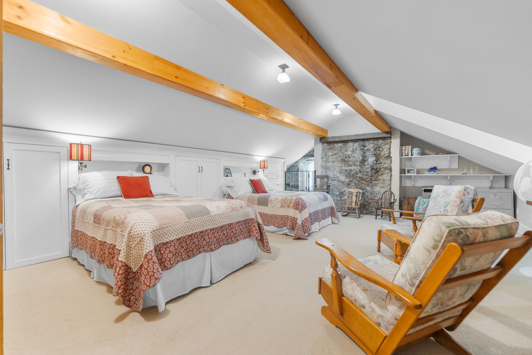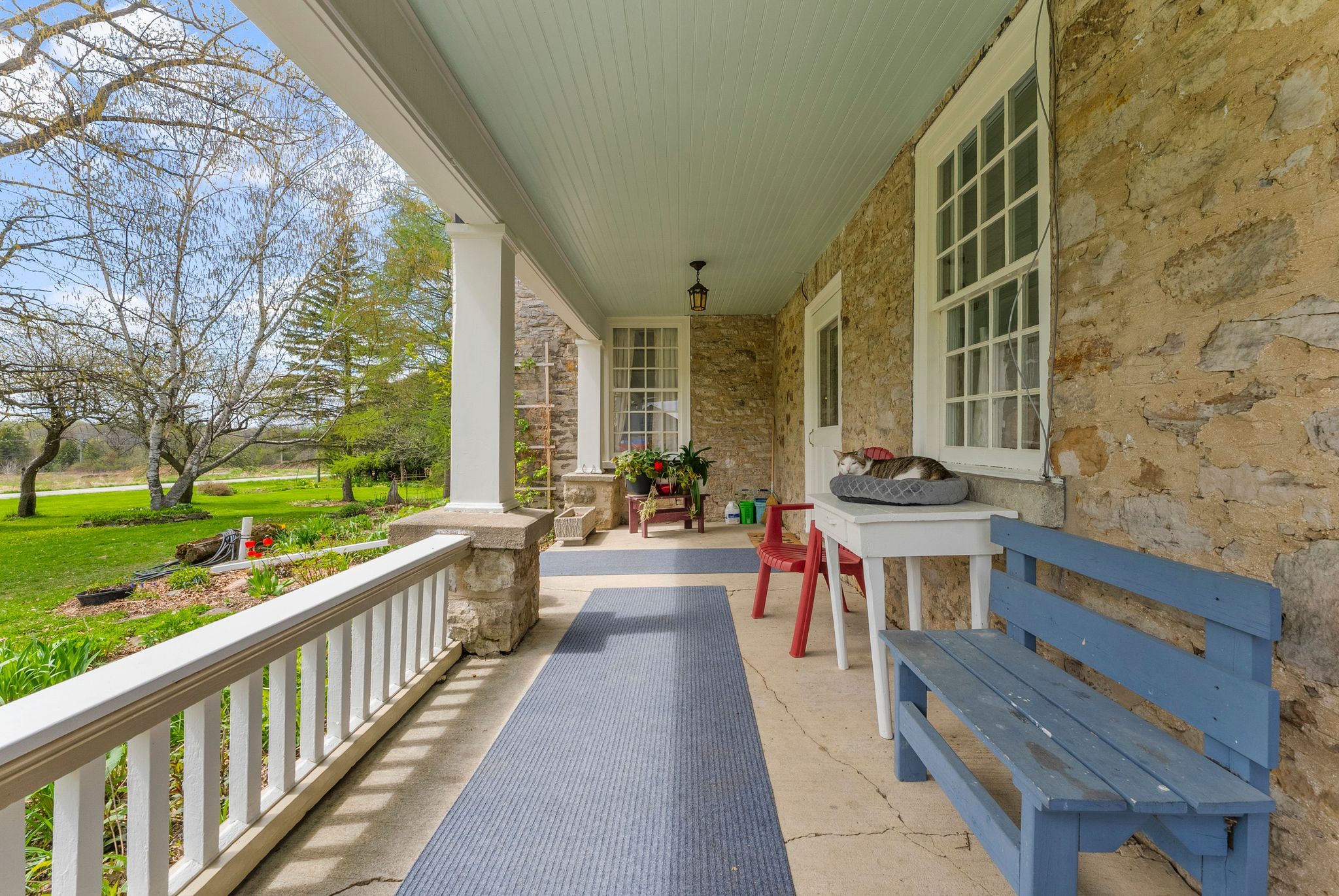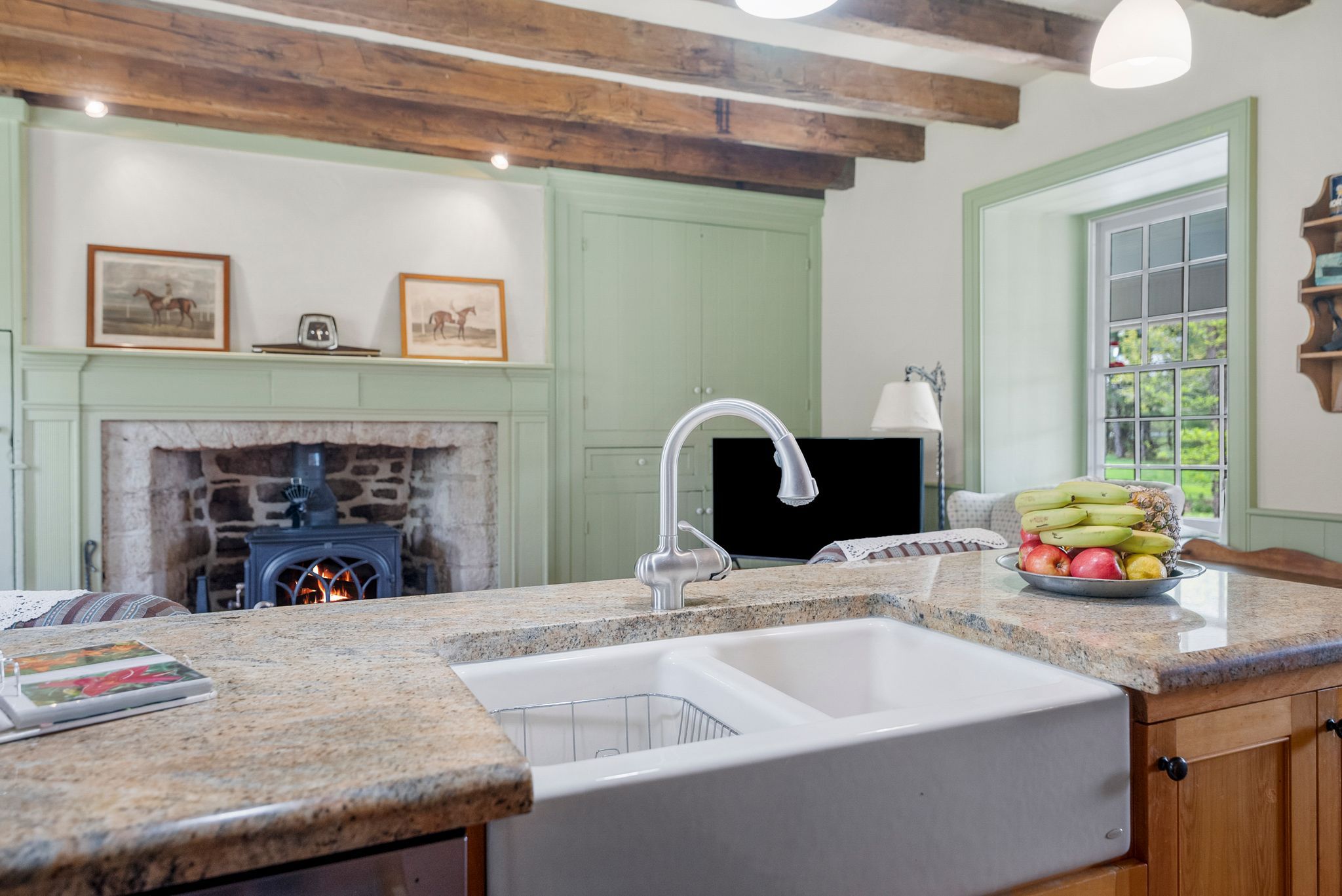 • Original stonework, antique accents, and vintage fixtures preserved throughout.