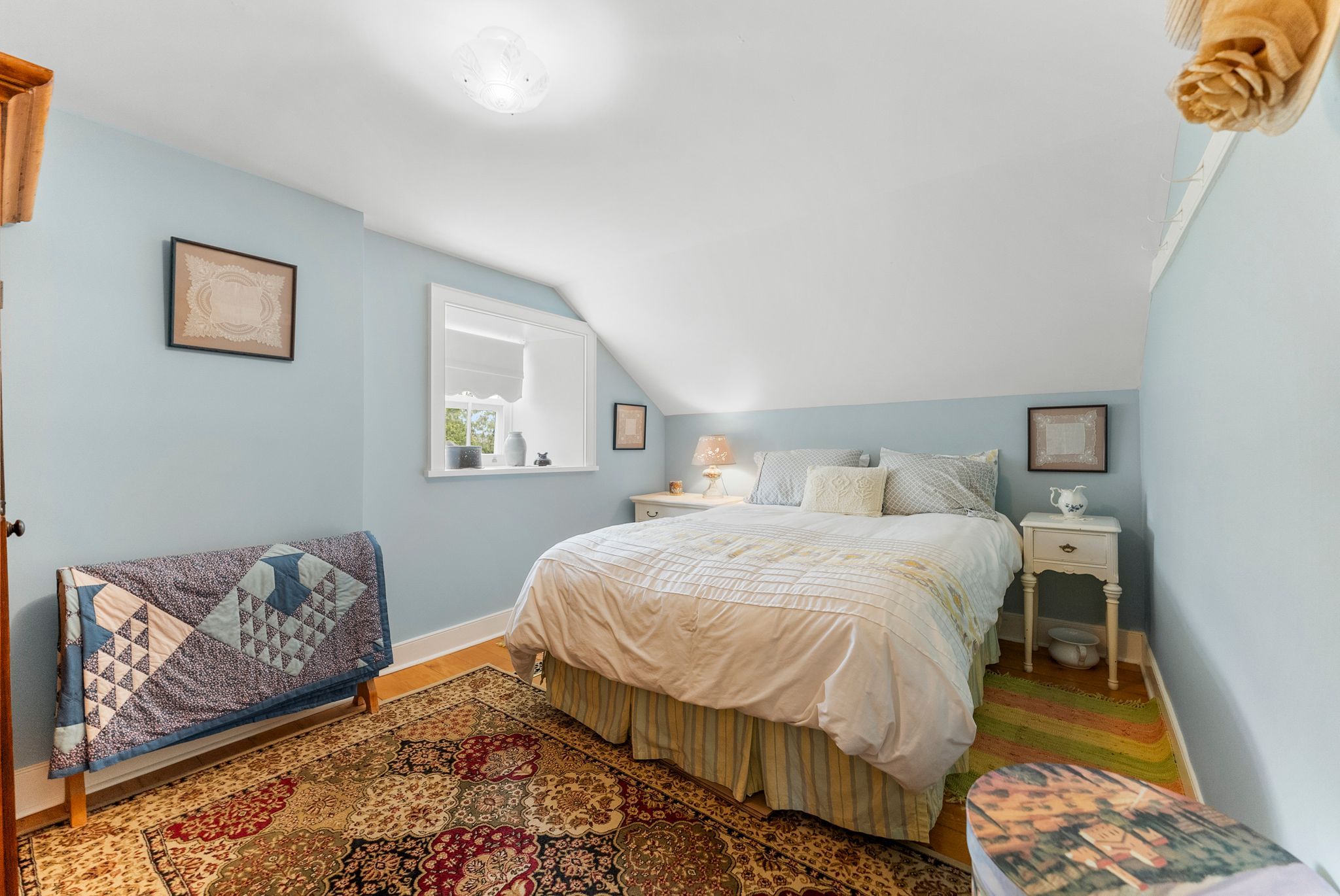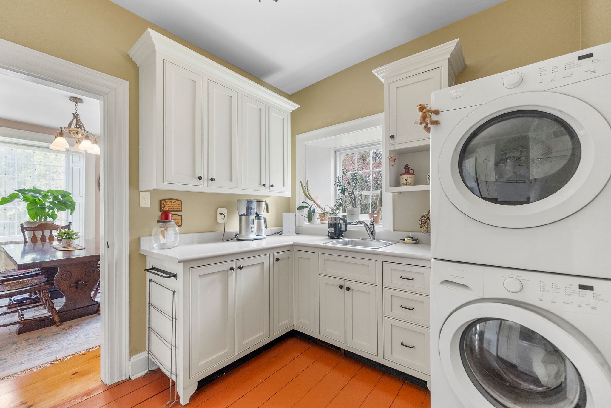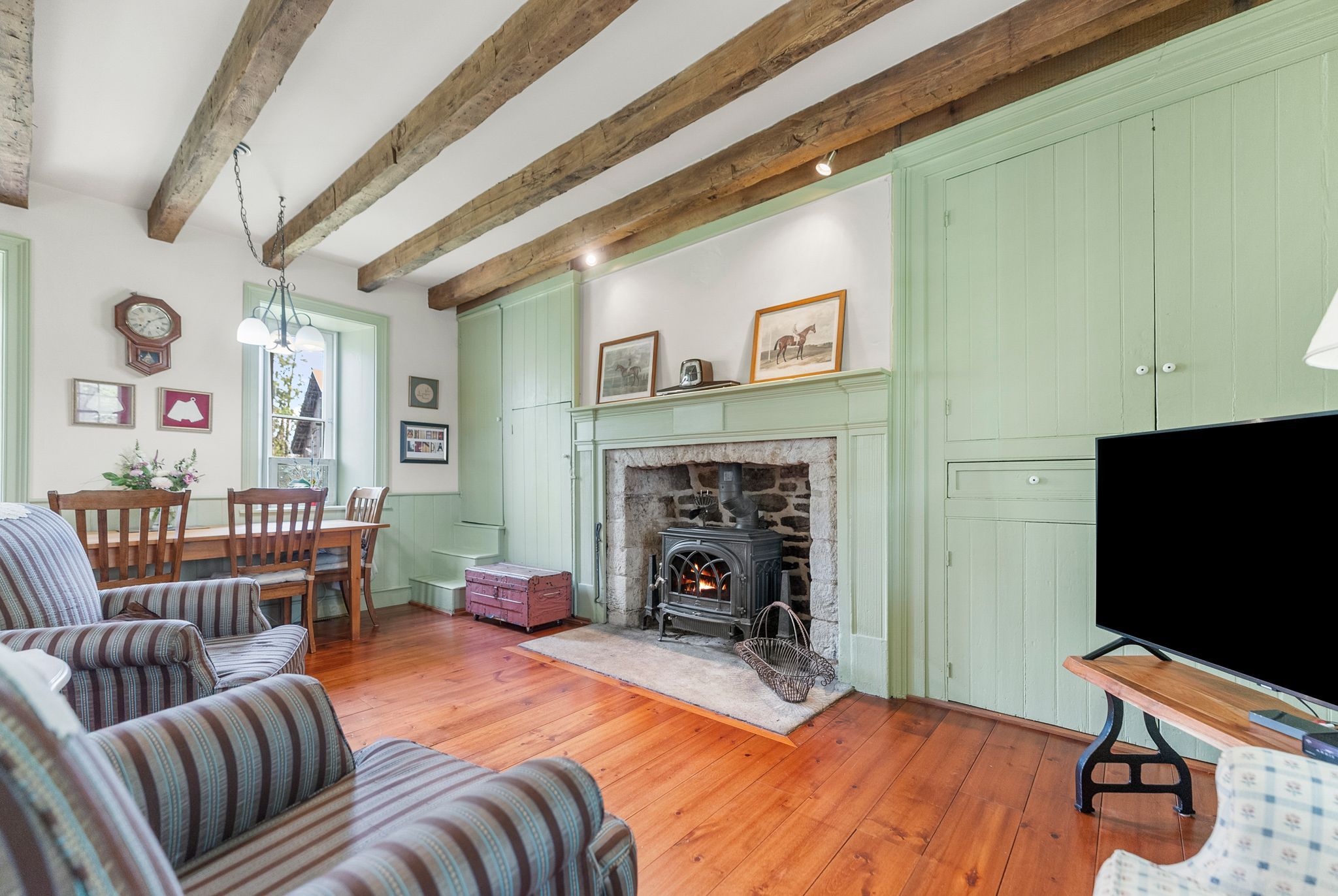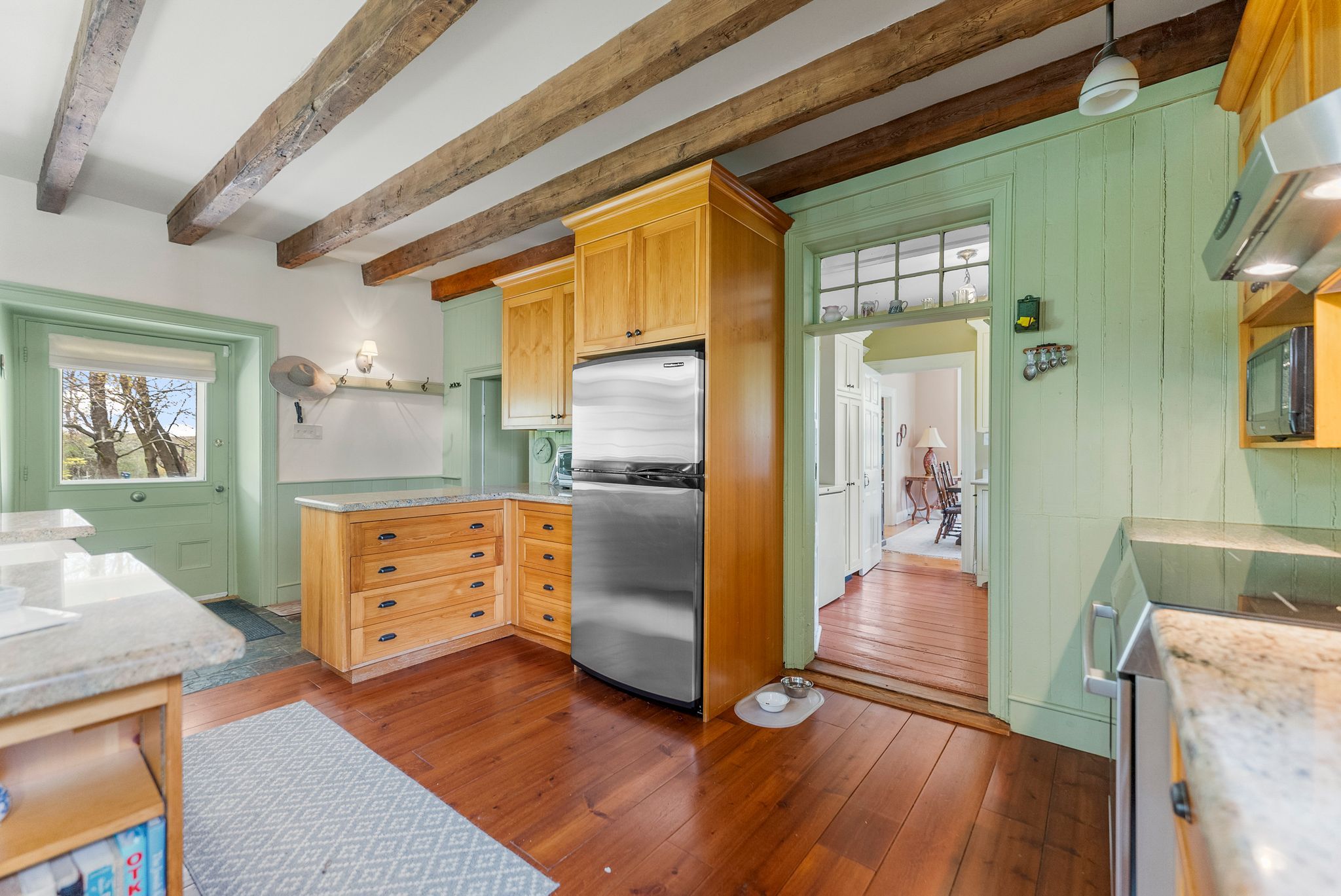• Unique Ottawa River flooring and original ash beams add character.