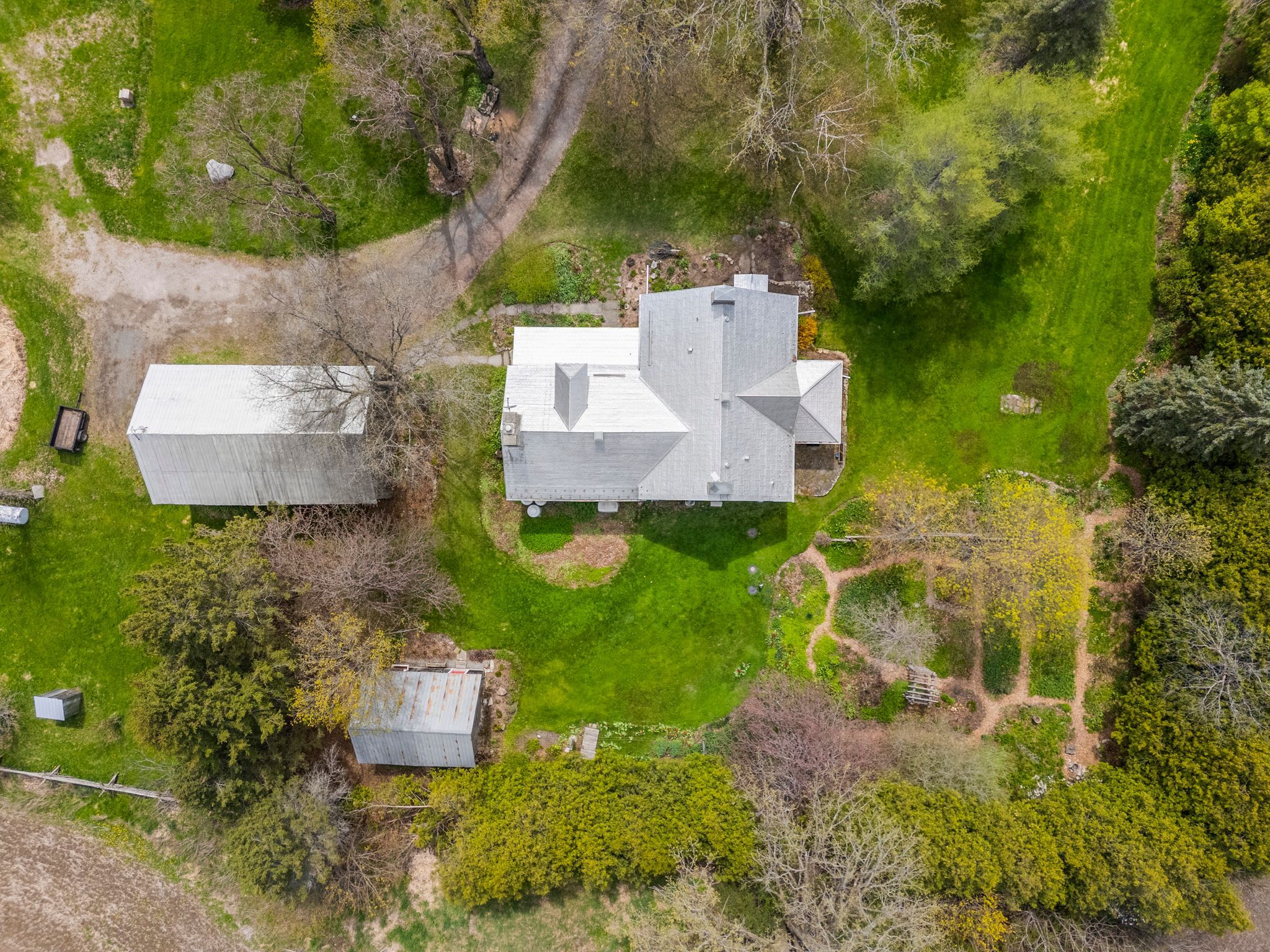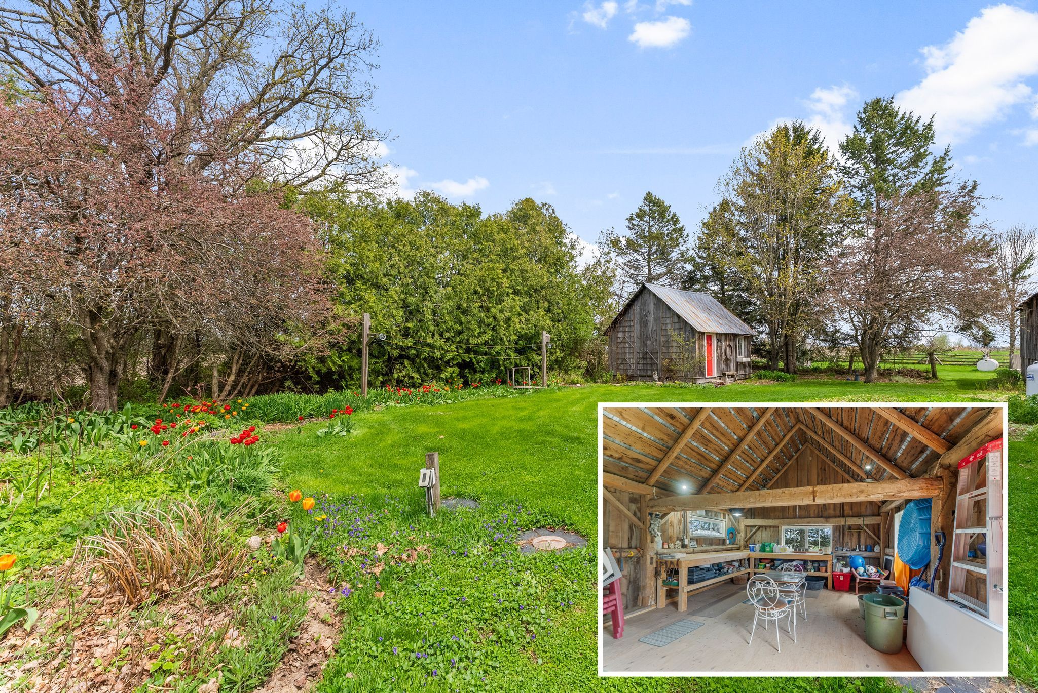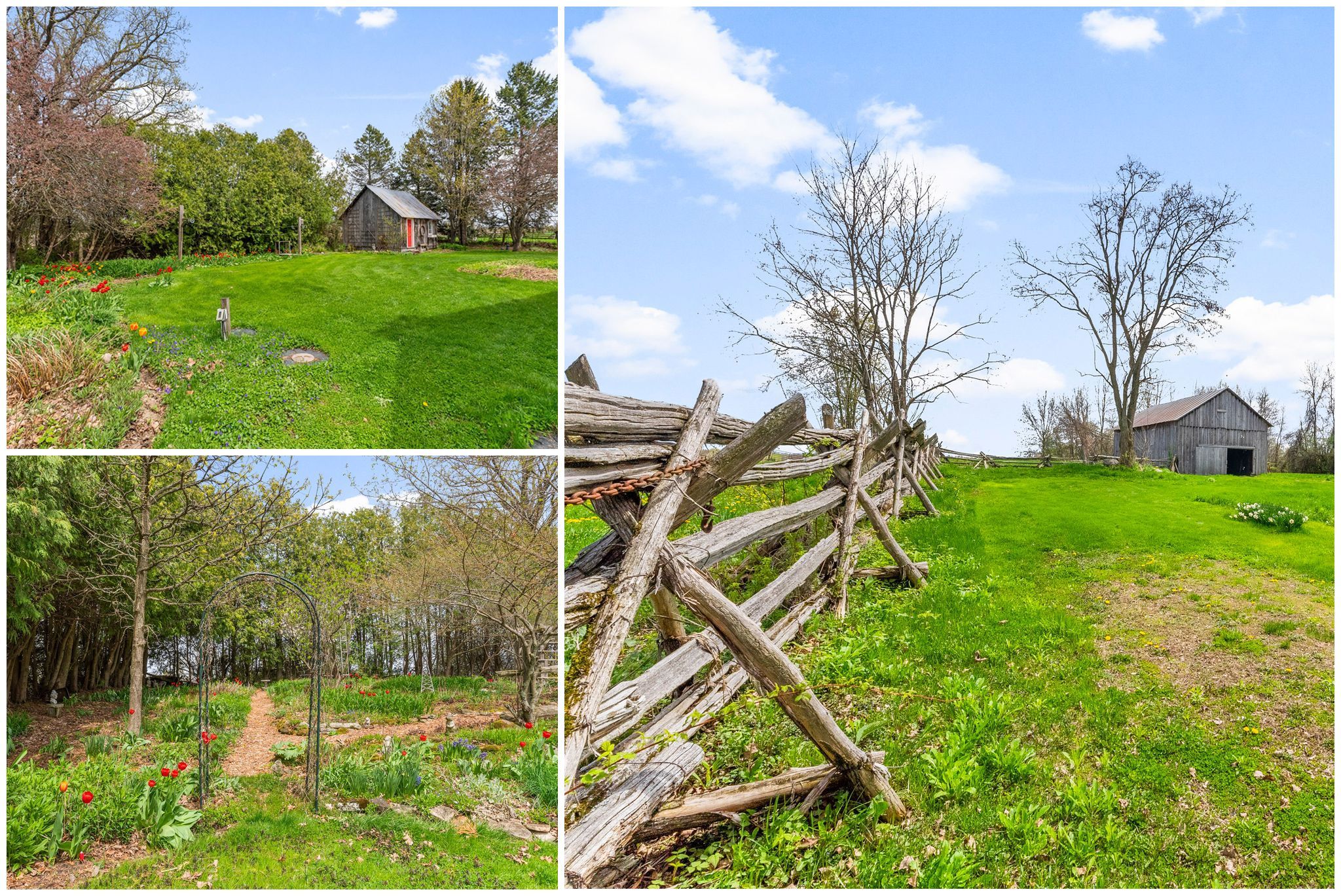 • Expansive 9.93-acre grounds with perennial gardens and charming outbuildings.
