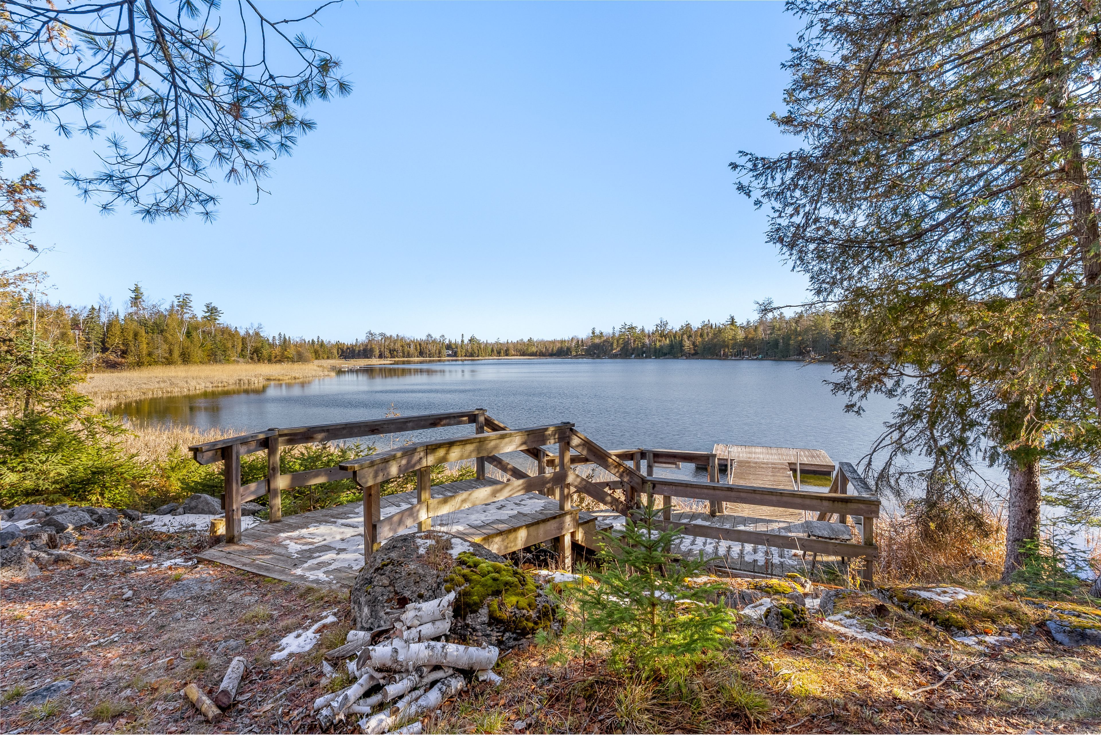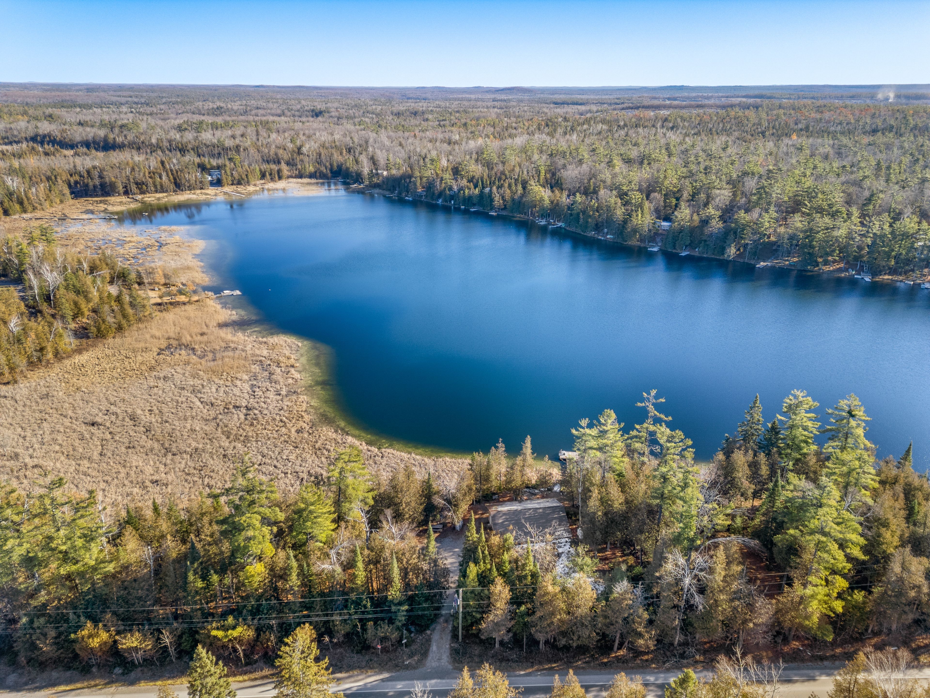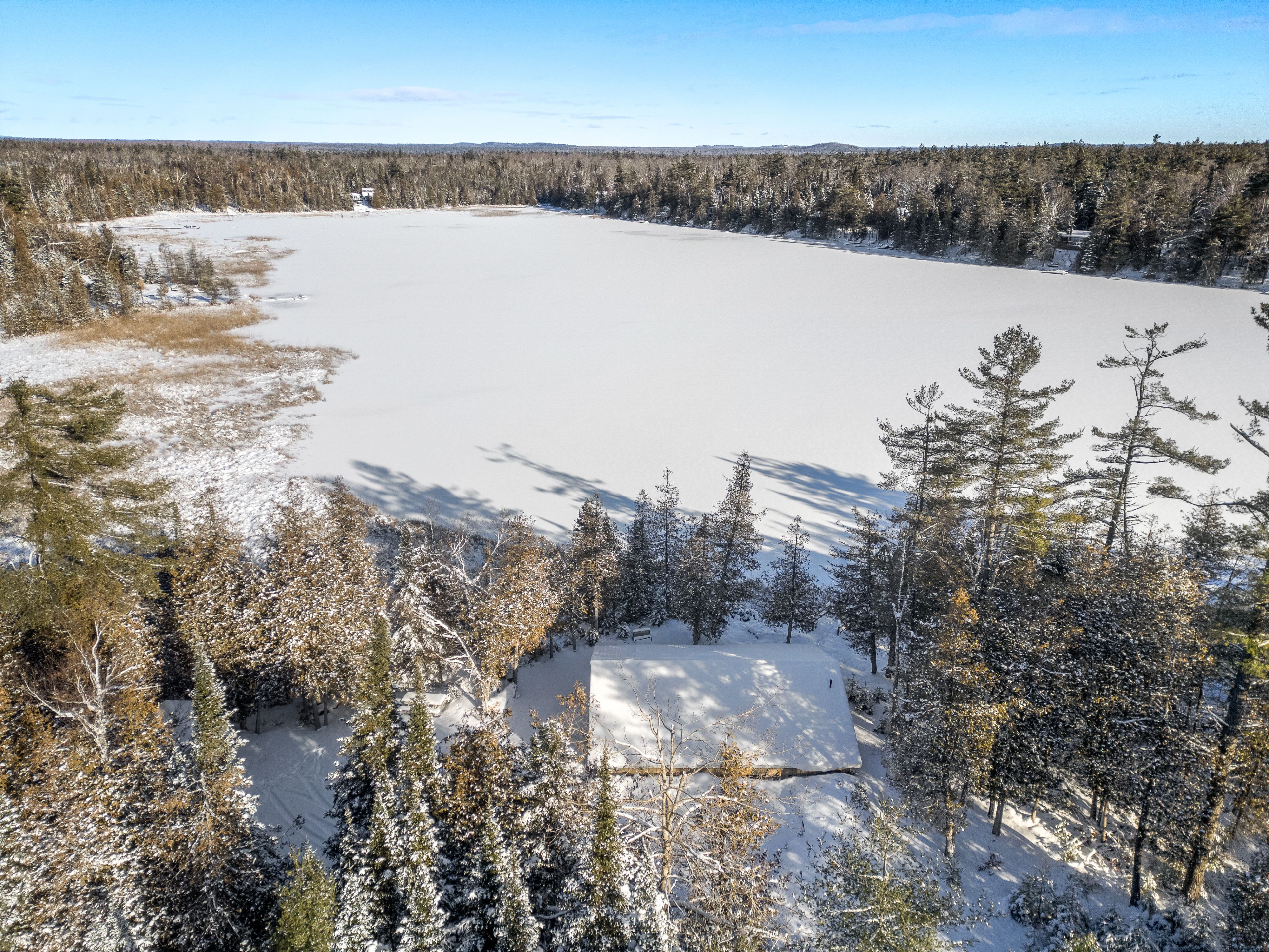 • Calm lake ideal for swimming, canoeing, kayaking, and ice fishing.
