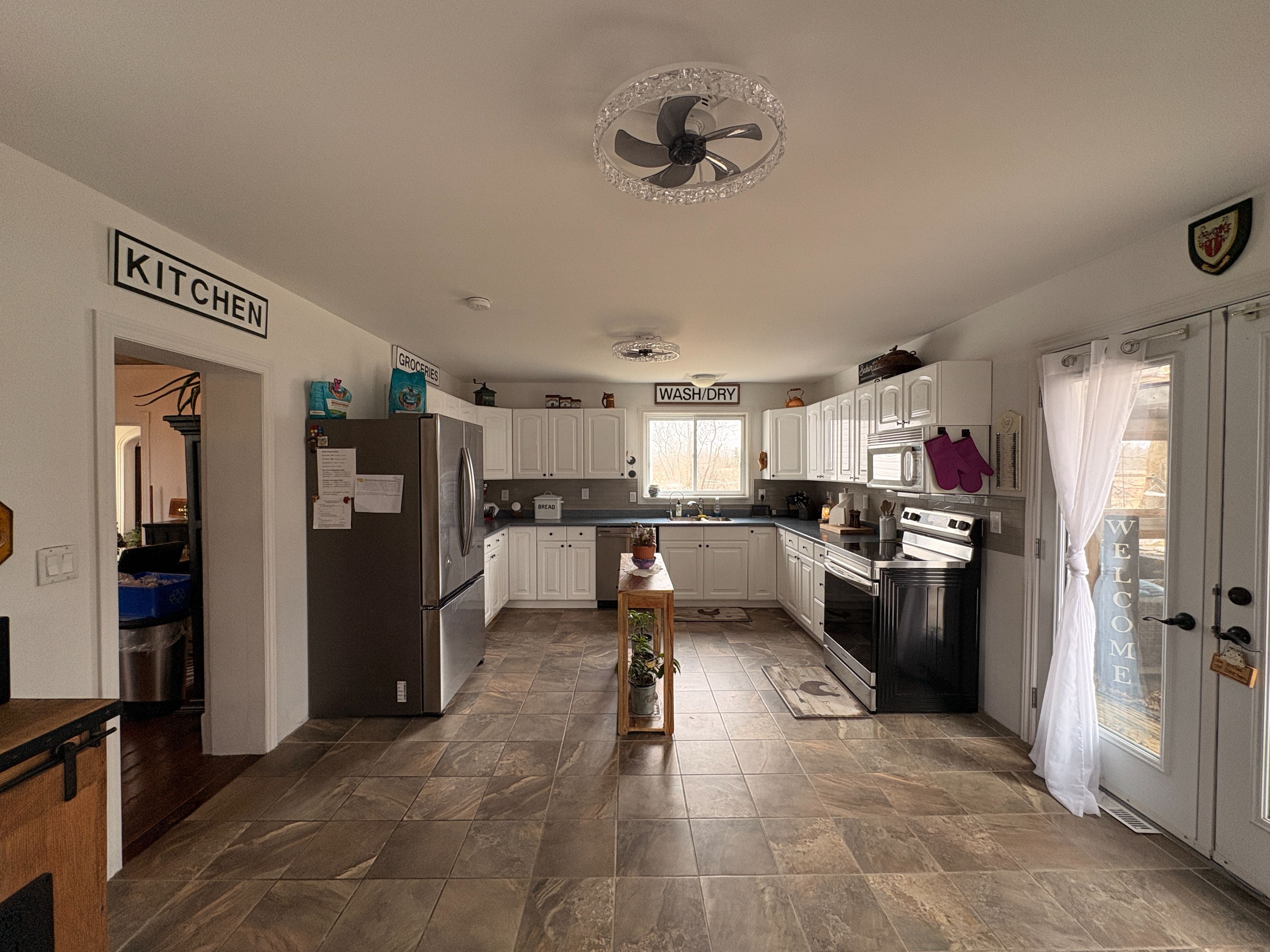 • Large kitchen opening onto a spacious deck and screened-in porch.