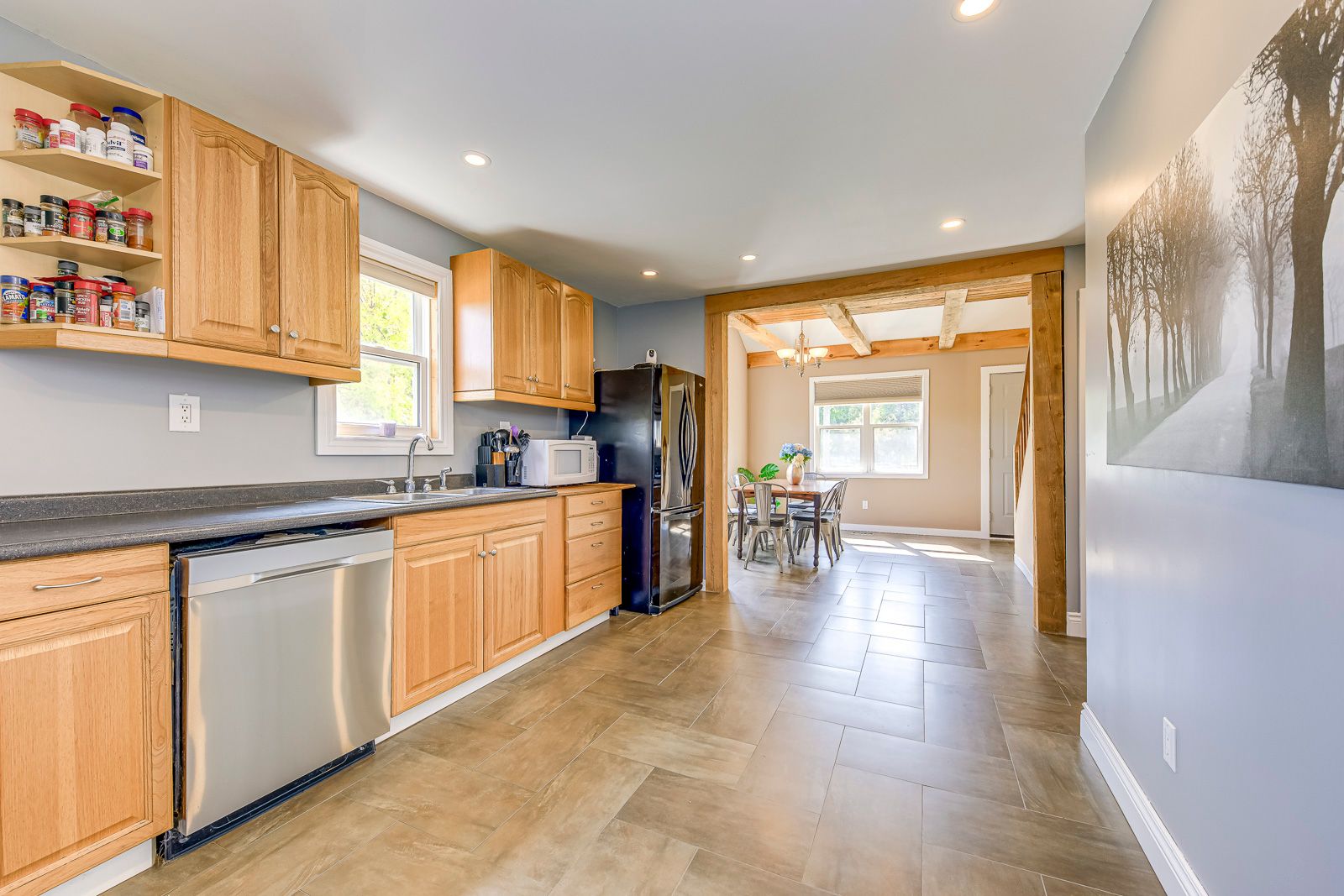 Step into this beautifully updated detached home, perfectly situated on a peaceful 1. 18-acre lot. This 3 bedroom residence offers the ideal mix of rural charm and modern convenience. The open-concept main floor is bright and welcoming, featuring pot lights and a combination of laminate and ceramic flooring that adds both style and practicality. One of the standout features of this property is the spacious detached garage. Heated and equipped with its own bathroom, 100 amp service, compressor, wood stove (not certified), security system and tv, this versatile space is ideal for tradespeople, home-based businesses, or hobbyists who need room to work and create. The open layout on the main level blends the living, dining, and kitchen areas into one cohesive, modern space that's perfect for family life and entertaining. You'll also appreciate the many recent upgrades that enhance both comfort and efficiency, including a new metal roof (2017), windows (2020), furnace and air conditioning (2021), water softener (2023), updated board and batten siding (2022/2025), a new front door, and fresh paint throughout (2025). 200 amp service in the home. With its peaceful setting, stylish interior, and close proximity to town, this home offers the perfect balance of quiet country living and everyday convenience. The subject property is designated escarpment rural area under the niagara escarpment plan.