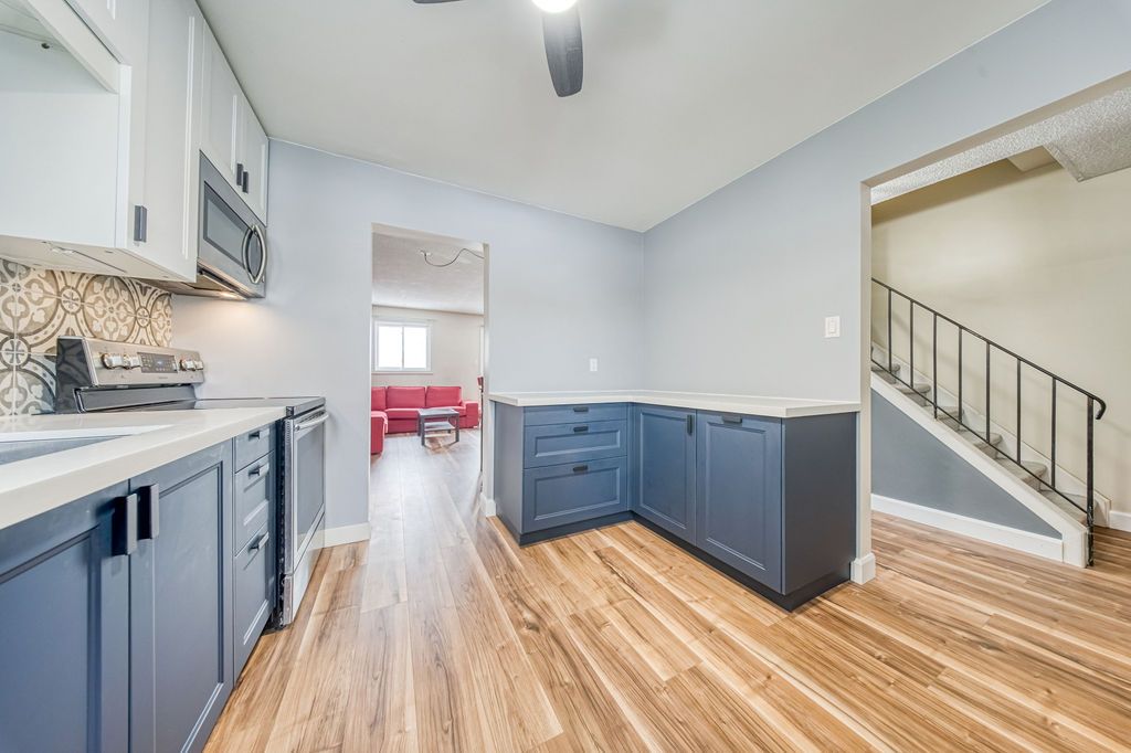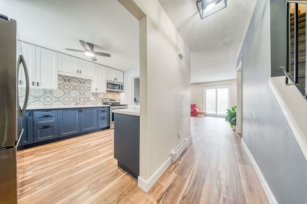 • Updated kitchen with modern finishes and ample cabinetry for cooking.