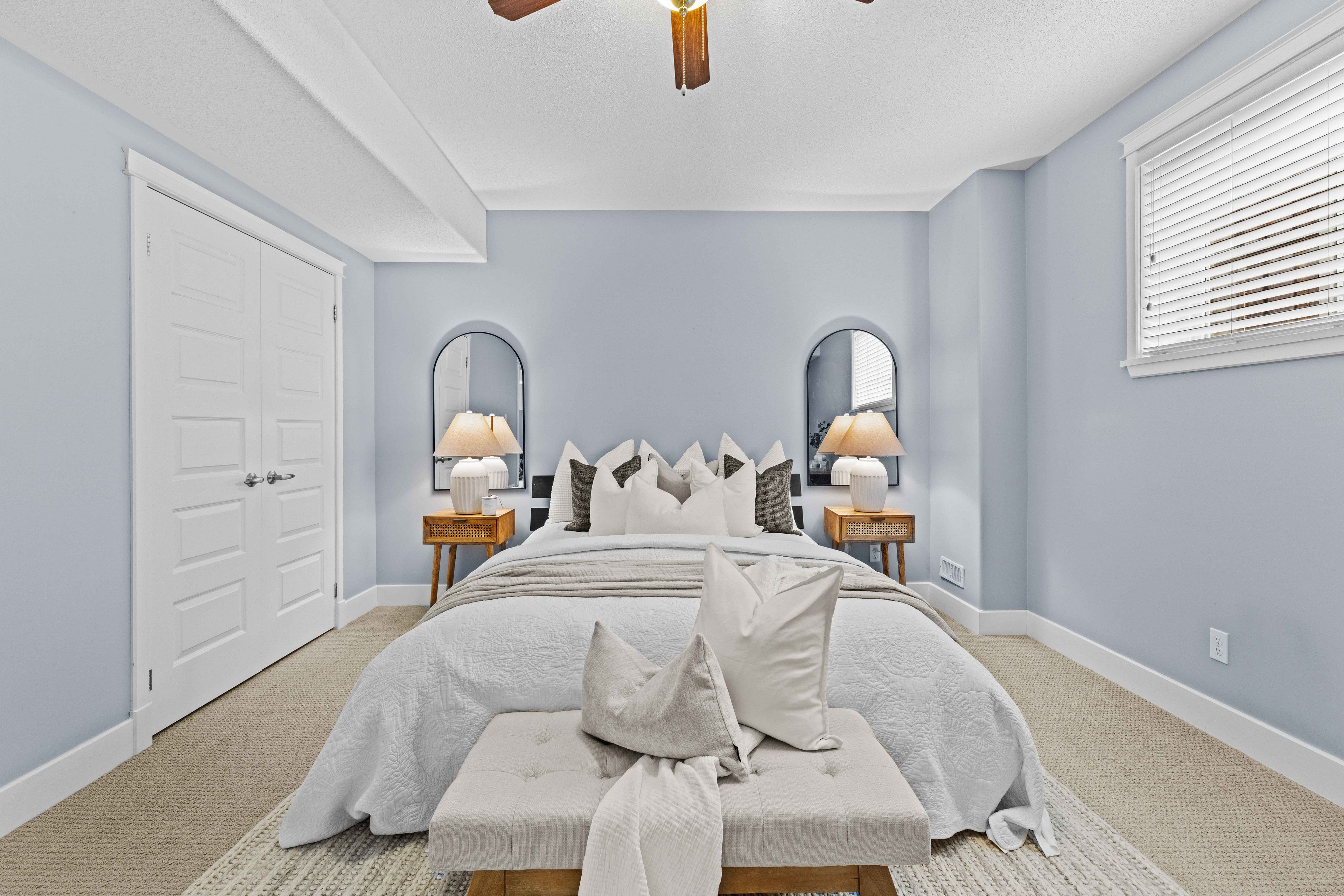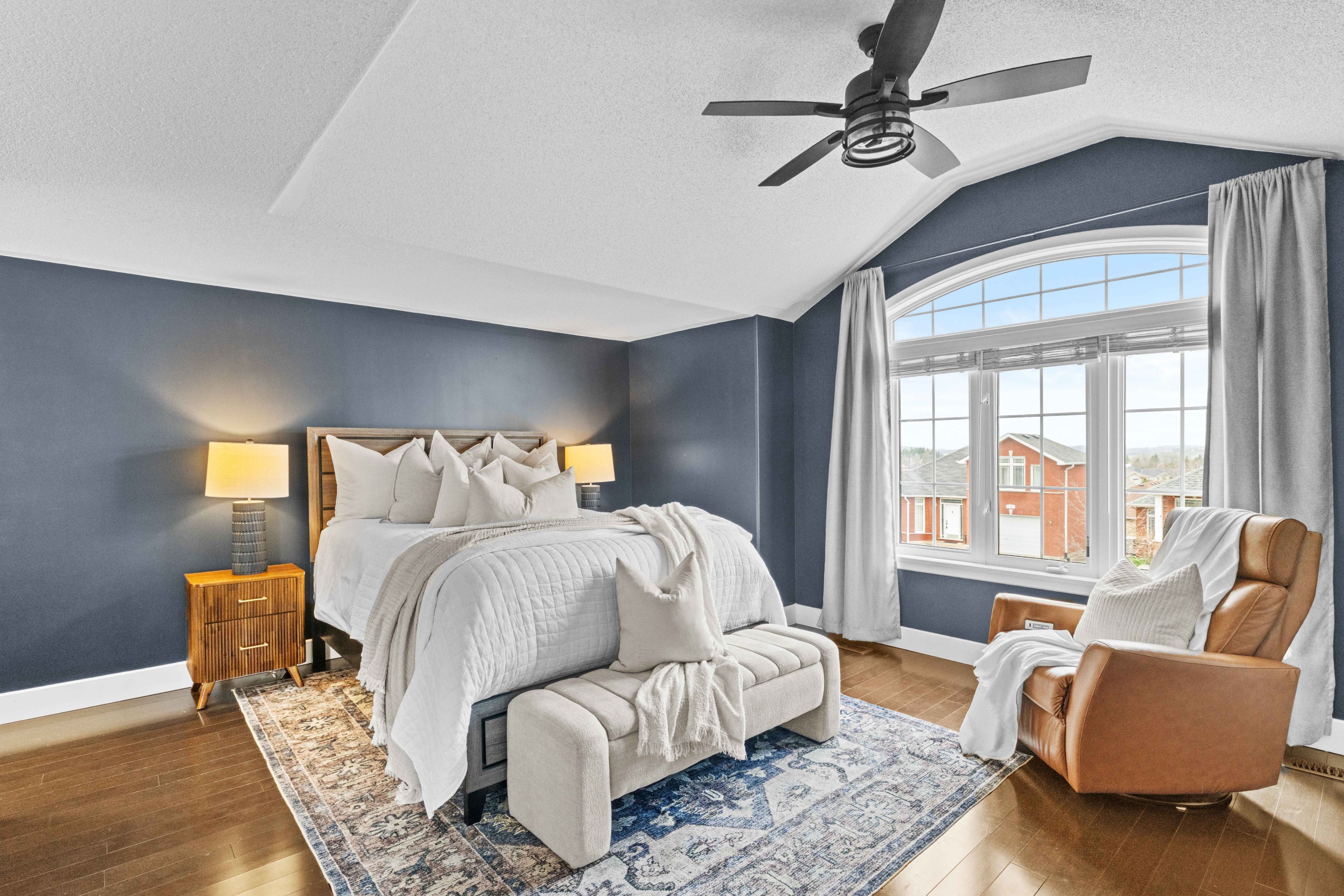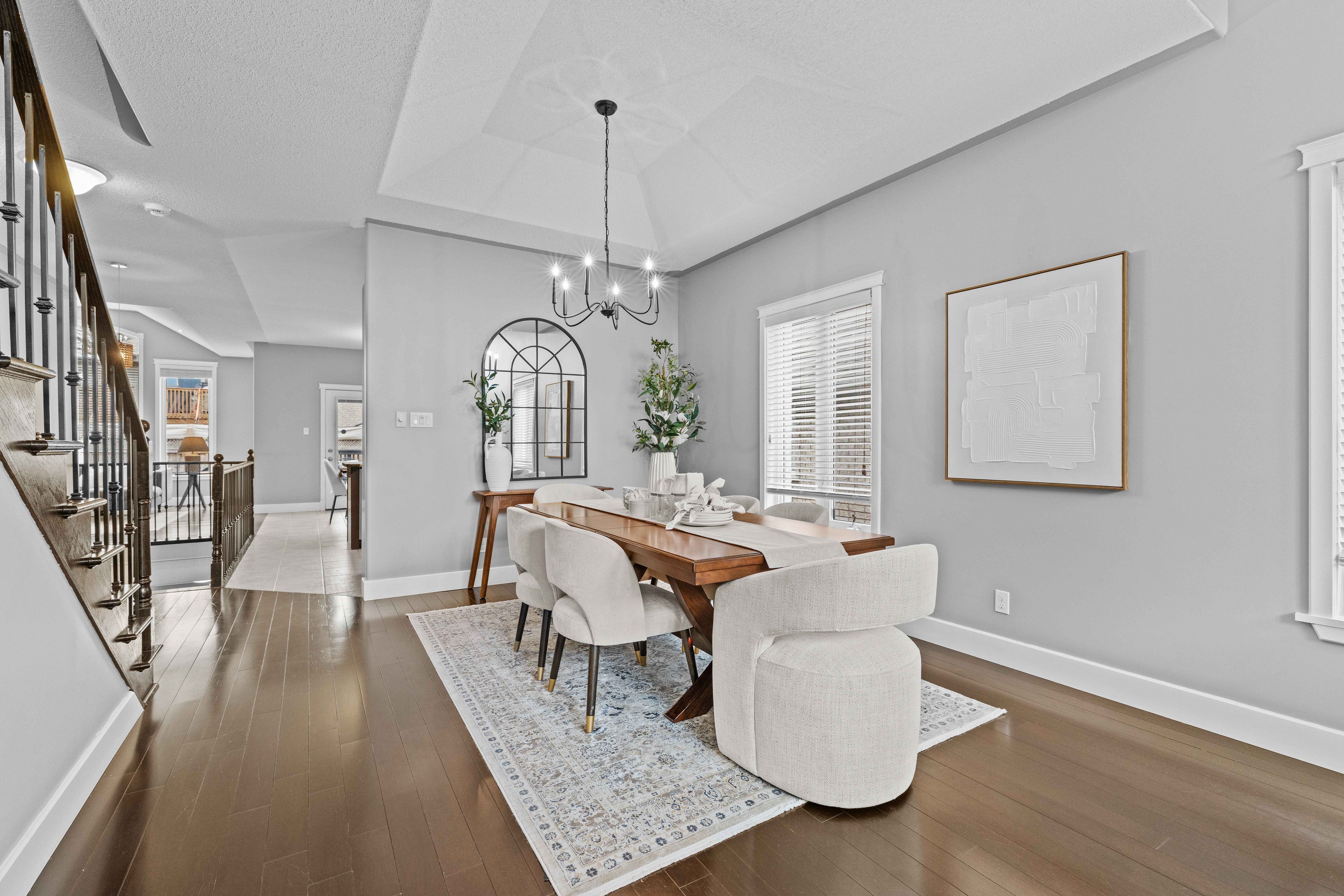 • Fully finished basement with tall ceilings and large windows for extra space.