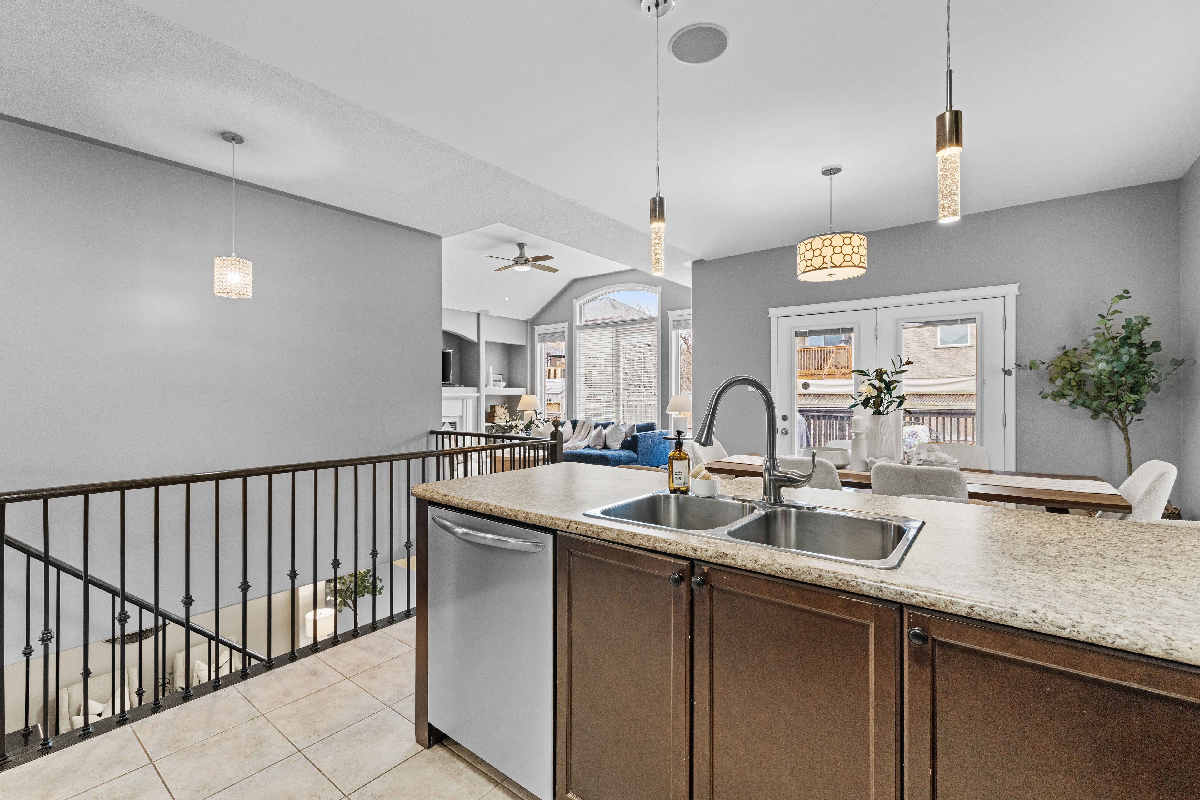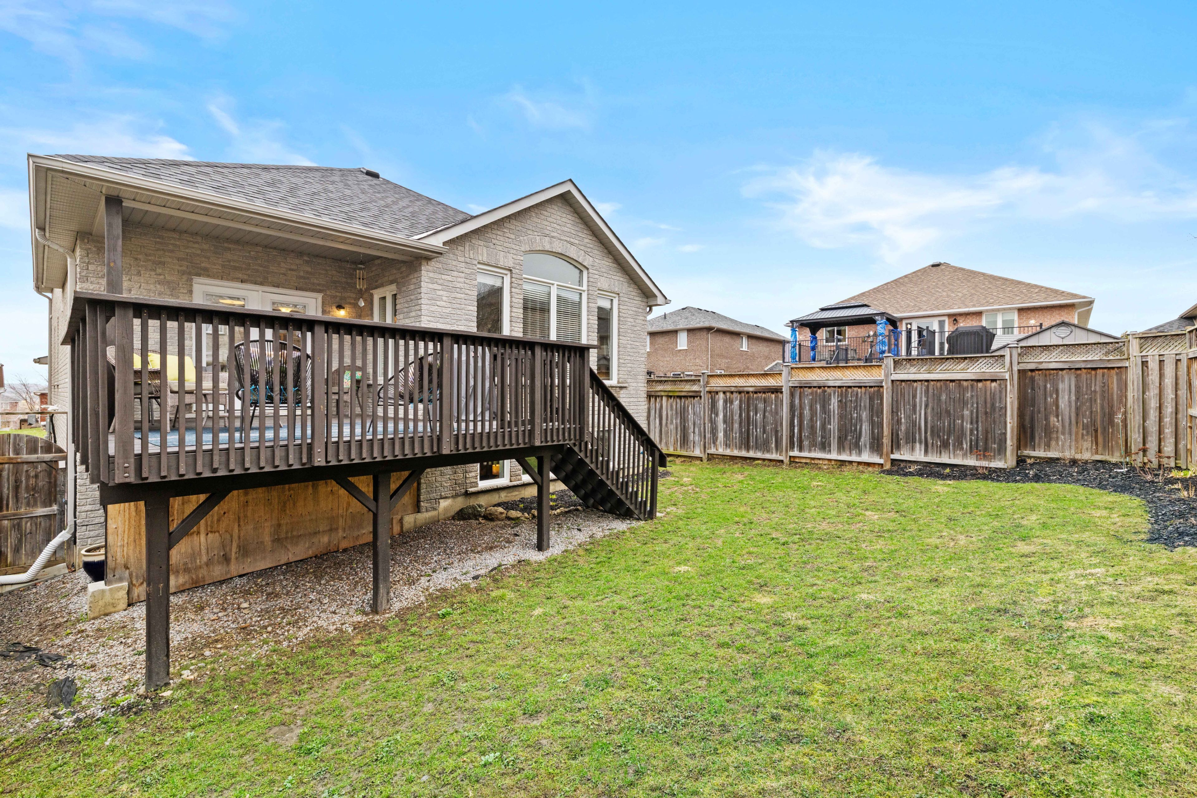 Welcome to 1331 haggis drive - a premium parkview homes build in peterborough's highly sought-after west end, known for its top-rated schools, beautiful parks, and excellent recreation. This spacious 3+2 bedroom home offers a bright, open-concept layout designed for both everyday living and entertaining. From the moment you step inside, you're greeted by a stunning foyer with soaring 17+ ft ceilings, setting the tone for the impressive design throughout. The family room features an 11+ ft cathedral ceiling and overlooks a private backyard, while oversized windows across the home flood the space with natural light. The home boasts over sized bedrooms, hardwood flooring in select areas, and a true sense of pride of ownership. The fully finished basement features tall ceilings and large windows, creating a warm and inviting extension of the living space. Thoughtfully updated throughout, recent improvements include fresh paint, new hardwired smoke and co detectors (2025), updated laundry room vanity and custom cabinetry and countertop (2025) and a long list of 2024 upgrades: roof replacement, custom-built office cabinetry and shelving, , refurbished and stained deck and stairs, driveway sealing and repairs, and newly landscaped backyard gardens. A turn-key home in an exceptional family-friendly neighbourhood-this is one you won't want to miss.