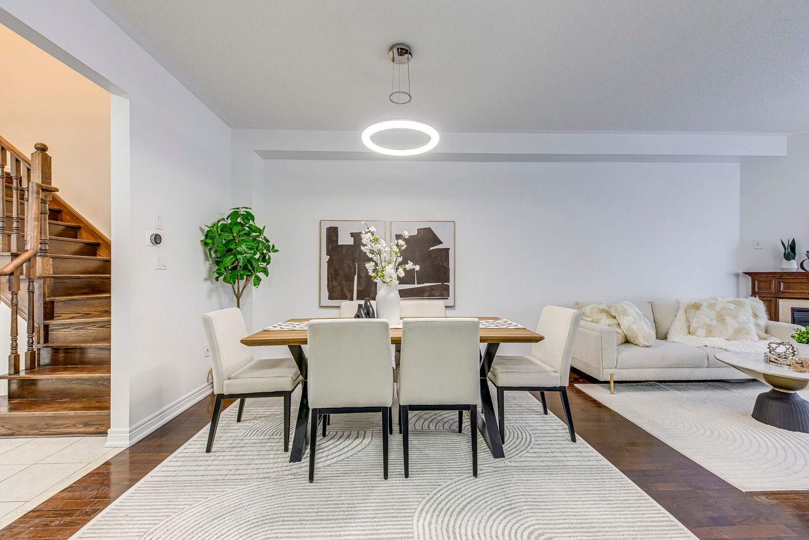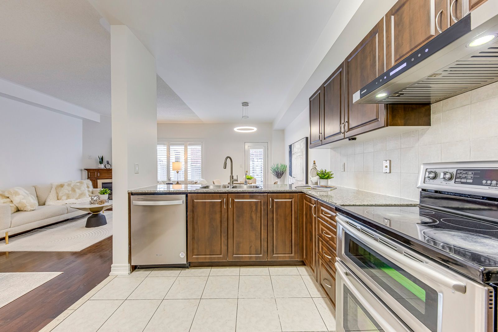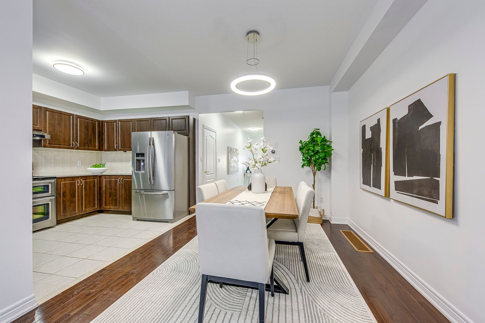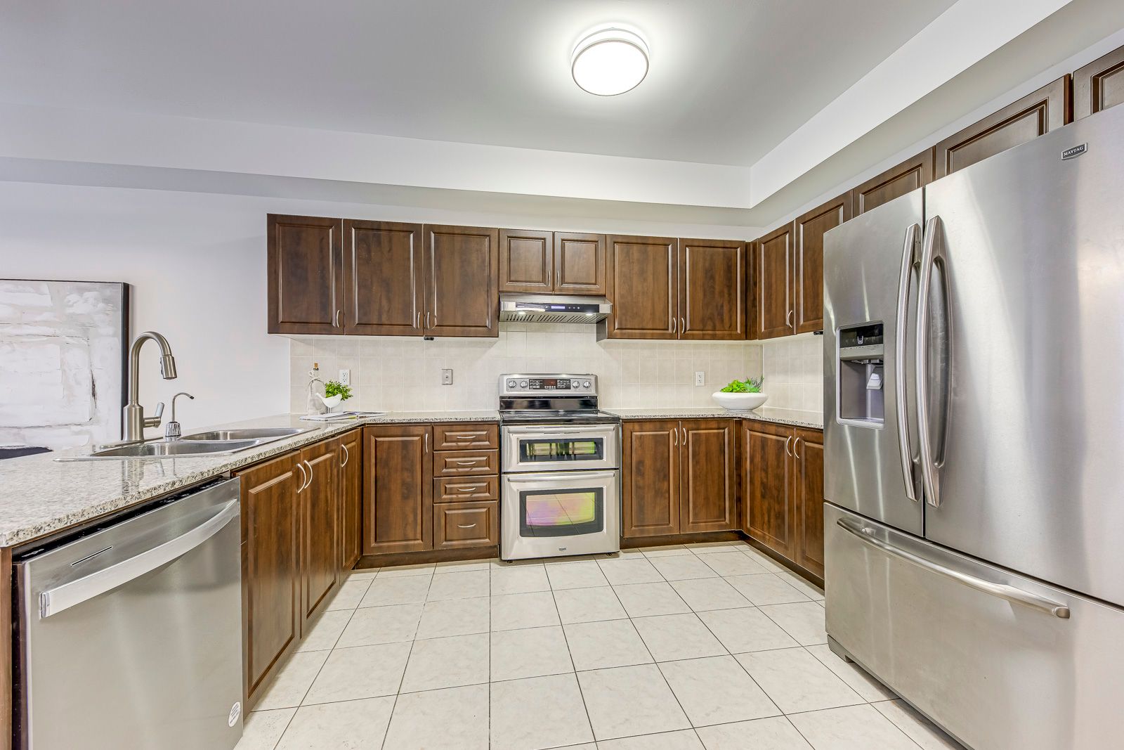Move-in ready! Stunning 3-bedroom, 3. 5-bath freehold townhome in the prestigious joshua creek community. Prime location within walking distance to parks, top-rated schools, and shopping, with easy access to major highways. This beautifully maintained home features hardwood floors, 9-foot ceilings on the main level, interior garage access, upper-level laundry, pot lights, a solid oak staircase, and a professionally finished lower level. The home has been newly professionally painted throughout. Exterior highlights include patterned concrete front steps and a rear patio, offering stylish low-maintenance outdoor living. The well-designed open-concept main floor features a spacious kitchen and dining area with dark cabinetry, granite countertops, and stainless steel appliances. The inviting family room offers hardwood flooring, a cozy gas fireplace, and a walkout to a private, sunny south-facing backyard-perfect for entertaining. Upstairs, the generous primary bedroom retreat features double-door entry, his-and-hers closets (including a walk-in), and a private ensuite with a soaker tub and separate shower. Two additional well-sized bedrooms, a full main bathroom, and a large second-floor laundry room complete the upper level. The professionally finished basement offers a spacious open-concept recreation room with extensive pot lighting, built-in shelving, and a full 3-piece bathroom with an oversized shower, along with additional storage and a cold room-ideal for family enjoyment. Immaculate and move-in ready. Perfect for buyers seeking upscale living with minimal yard maintenance. 1,981 sq ft above grade plus 883 sq ft finished basement (over 2,800 sq ft total living space).
