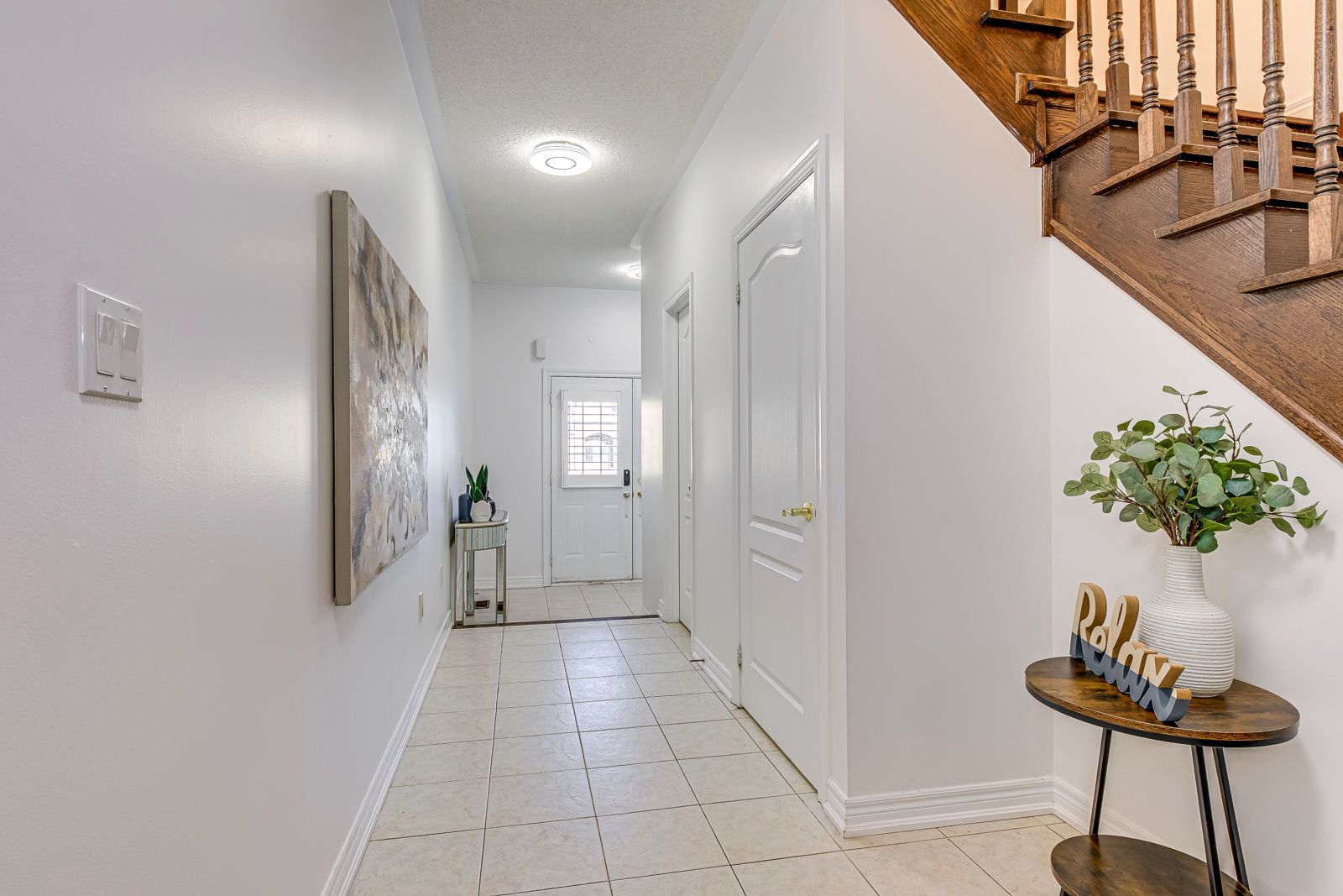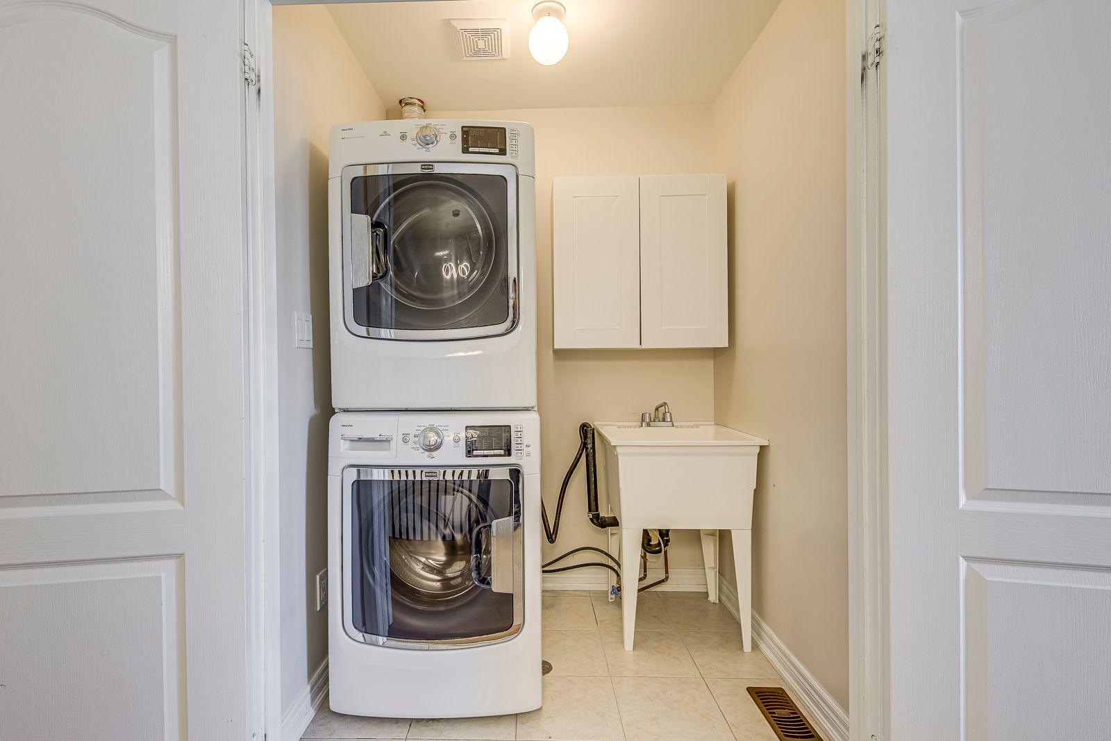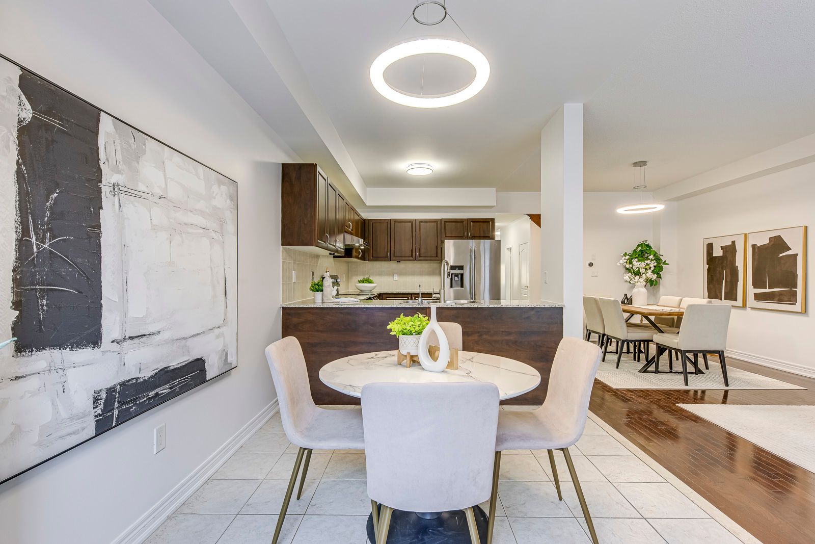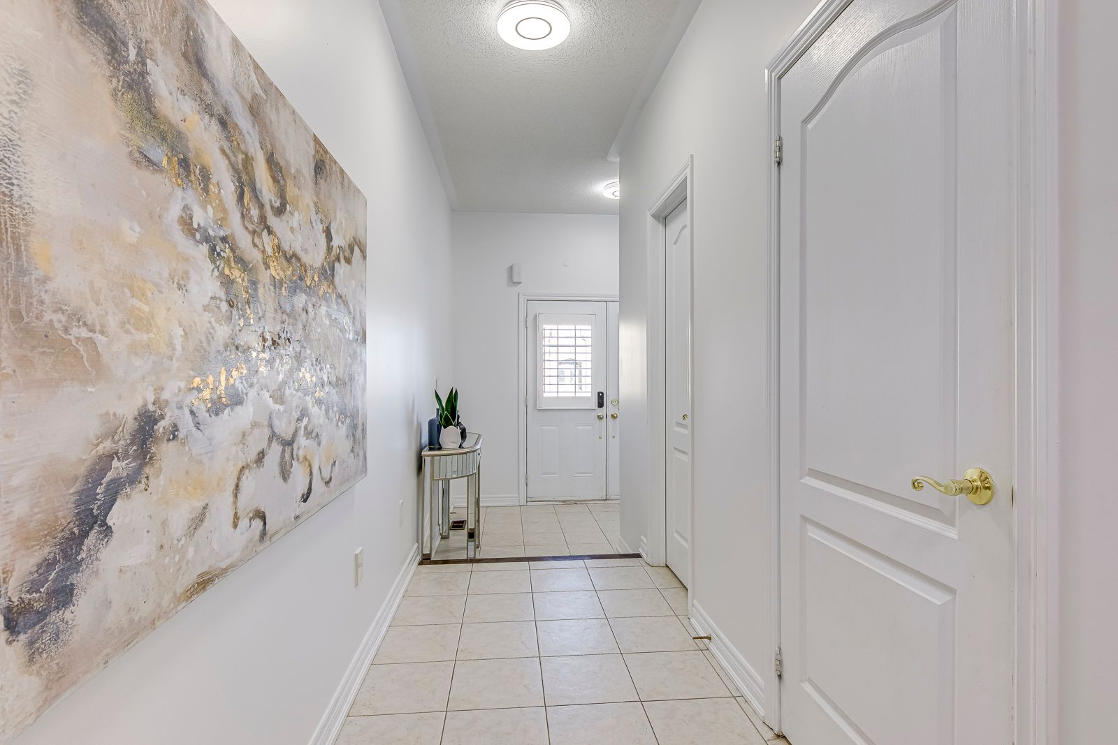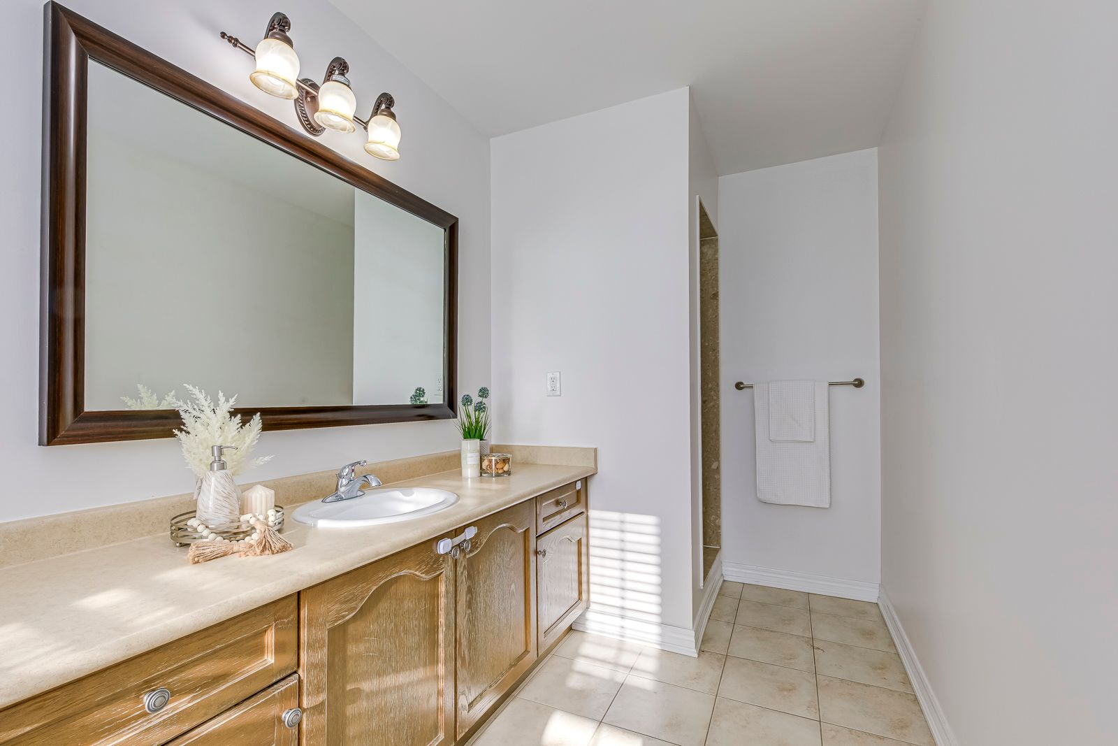 Move-in ready! Stunning 3-bedroom, 3. 5-bath freehold townhome in the prestigious joshua creek community. Prime location within walking distance to parks, top-rated schools, and shopping, with easy access to major highways. This beautifully maintained home features hardwood floors, 9-foot ceilings on the main level, interior garage access, upper-level laundry, pot lights, a solid oak staircase, and a professionally finished lower level. The home has been newly professionally painted throughout. Exterior highlights include patterned concrete front steps and a rear patio, offering stylish low-maintenance outdoor living. The well-designed open-concept main floor features a spacious kitchen and dining area with dark cabinetry, granite countertops, and stainless steel appliances. The inviting family room offers hardwood flooring, a cozy gas fireplace, and a walkout to a private, sunny south-facing backyard-perfect for entertaining. Upstairs, the generous primary bedroom retreat features double-door entry, his-and-hers closets (including a walk-in), and a private ensuite with a soaker tub and separate shower. Two additional well-sized bedrooms, a full main bathroom, and a large second-floor laundry room complete the upper level. The professionally finished basement offers a spacious open-concept recreation room with extensive pot lighting, built-in shelving, and a full 3-piece bathroom with an oversized shower, along with additional storage and a cold room-ideal for family enjoyment. Immaculate and move-in ready. Perfect for buyers seeking upscale living with minimal yard maintenance. 1,981 sq ft above grade plus 883 sq ft finished basement (over 2,800 sq ft total living space).