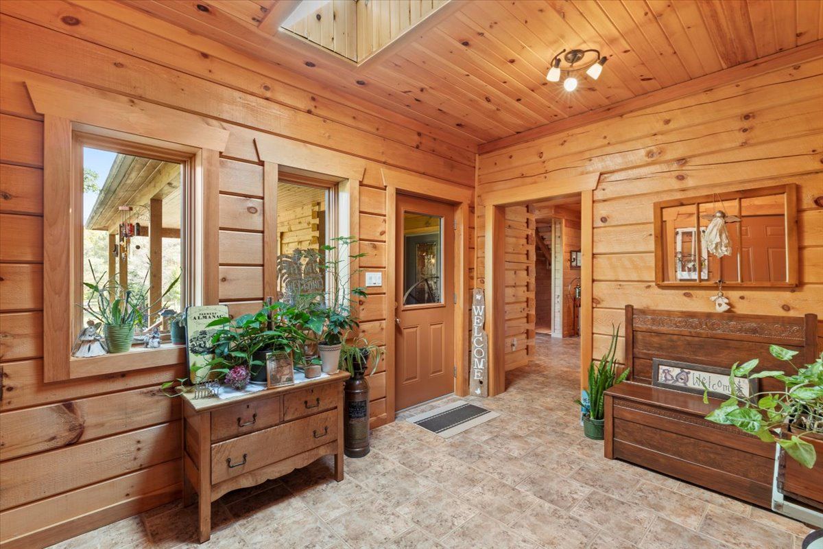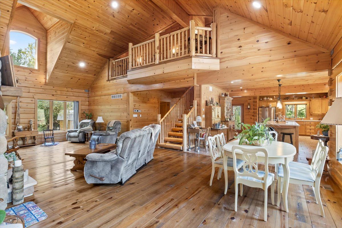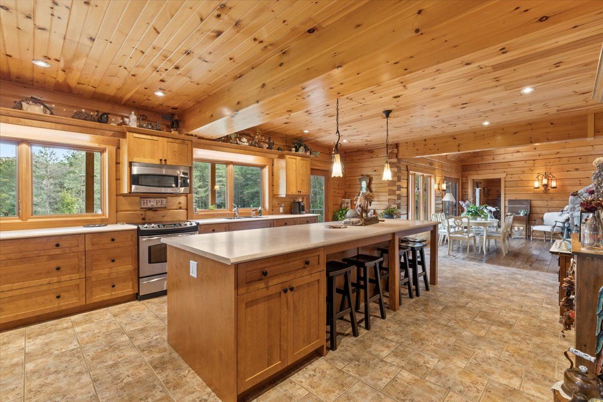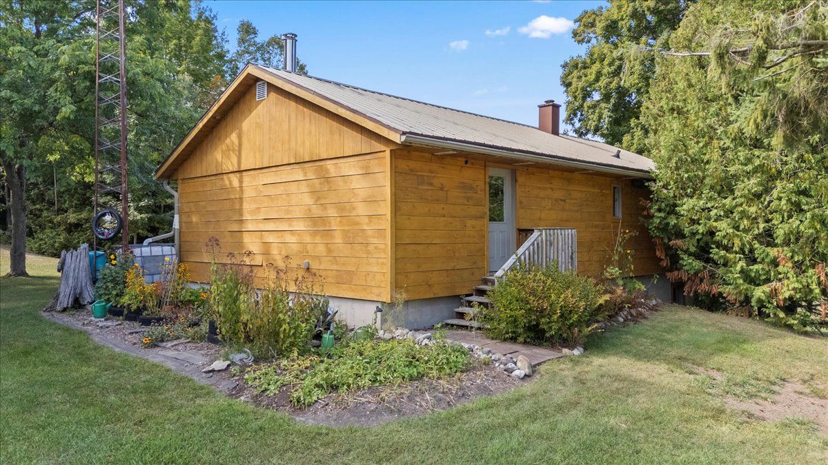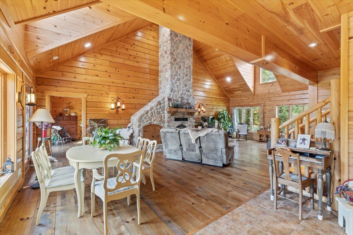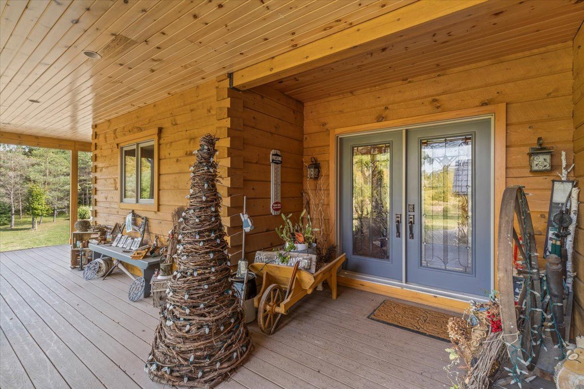 Luxury country retreat nestled on a peaceful, private & lovingly landscaped 9. 8-acre property. As you approach the magnificent log home, which commands attention, you'll be drawn to the front steps leading up to the welcoming composite porch, inviting you to explore the interior. As you step through the front door, you'll be greeted by a bright, spacious, and immaculate interior. The main floor showcases an impressive kitchen with an oversized island & a complete appliance package, dining area with access to expansive deck, a grand great room with soaring cathedral ceilings, & a stunning wood burning fireplace that makes a bold statement complete with a dumb waiter for added convenience. The tranquil primary bedroom features a five-piece ensuite and a walk-in closet that meets your every need. Another full bathroom, a large laundry room, & a practical mudroom completes the main level. As you ascend the log stairs to the second level, you'll appreciate the open office space overlooking the main floor and discover two generous bedrooms sharing another well-appointed bathroom. The walkout basement presents endless possibilities - ample space for a workshop, storage, separate panel for generator, or your own custom finishing touches. There's also a substantial cold room with walk up access to the triple car garage, plus a fully finished loft above the garage with custom finishing touches that any guest would absolutely love and may never want to leave. After you've explored the spectacular interior, step outside to find an older home used for storage, along with a large storage shed & a garden shed, surrounded by many perennial flower beds. This property offers not just a home, but a serene lifestyle in a beautiful setting on a quiet country road within minutes to allan park conservation area where you can enjoy fishing, cycling, snowshoeing, skiing & hiking trails, and tobogganing. Are you ready to confidently claim this extraordinary home and property as your own?