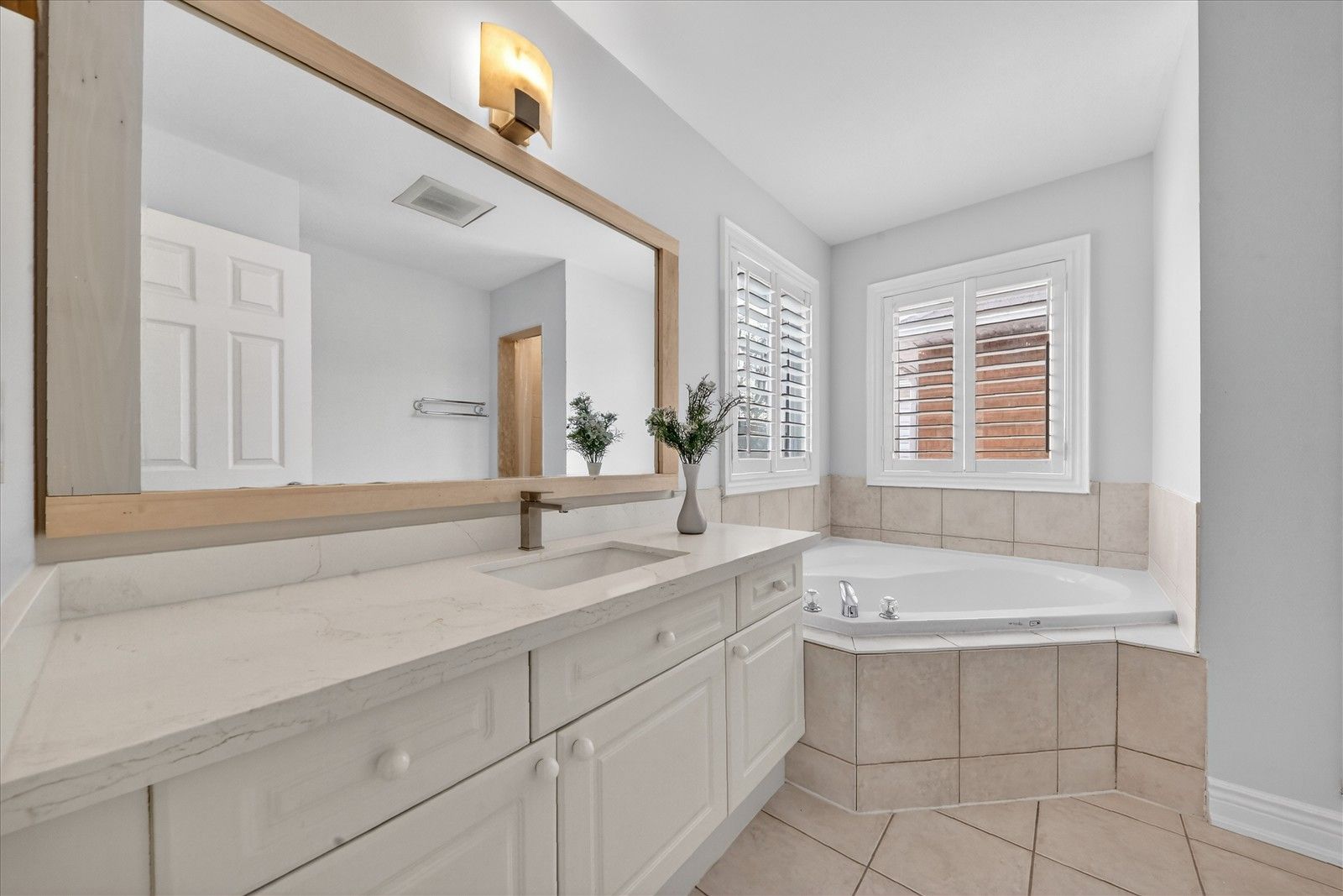 • Fully updated kitchen featuring quartz countertops and modern fixtures.