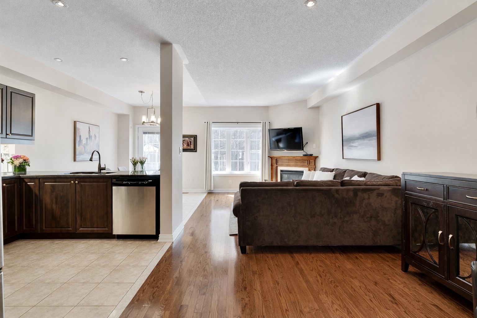 • Open concept main level with 9' ceilings and a gas fireplace.