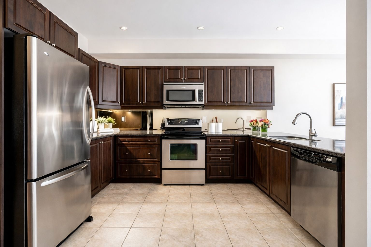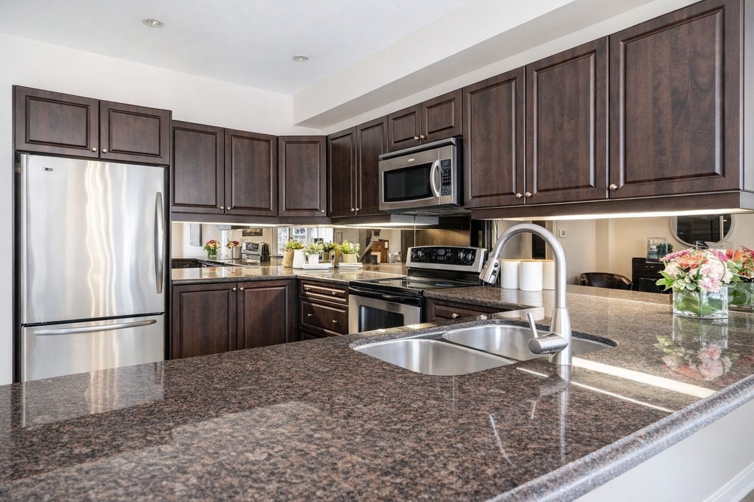 • Well-appointed kitchen with granite countertops and stainless steel appliances.