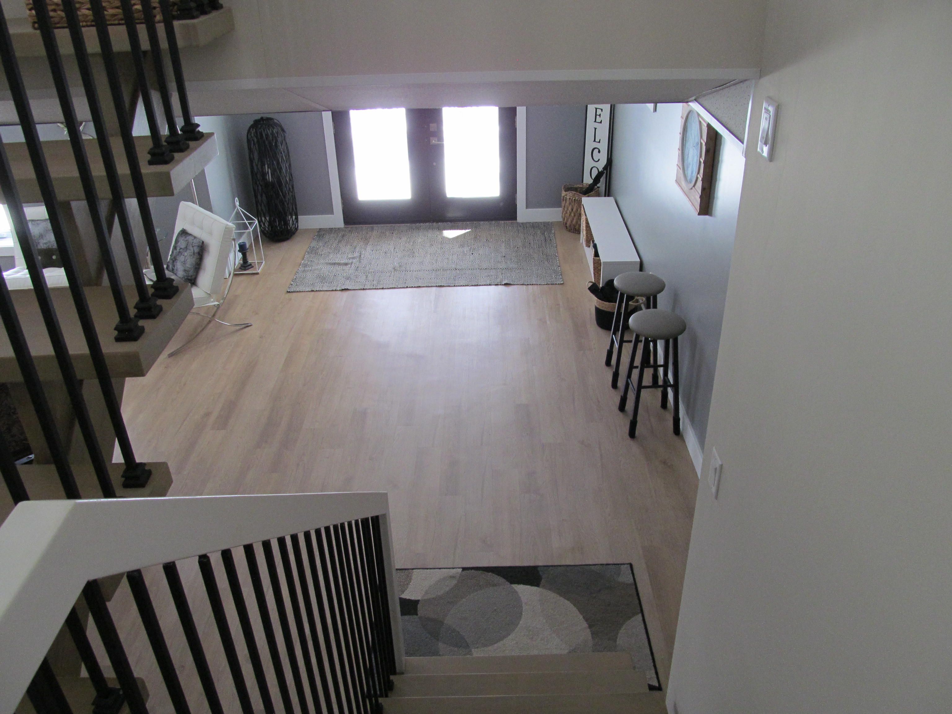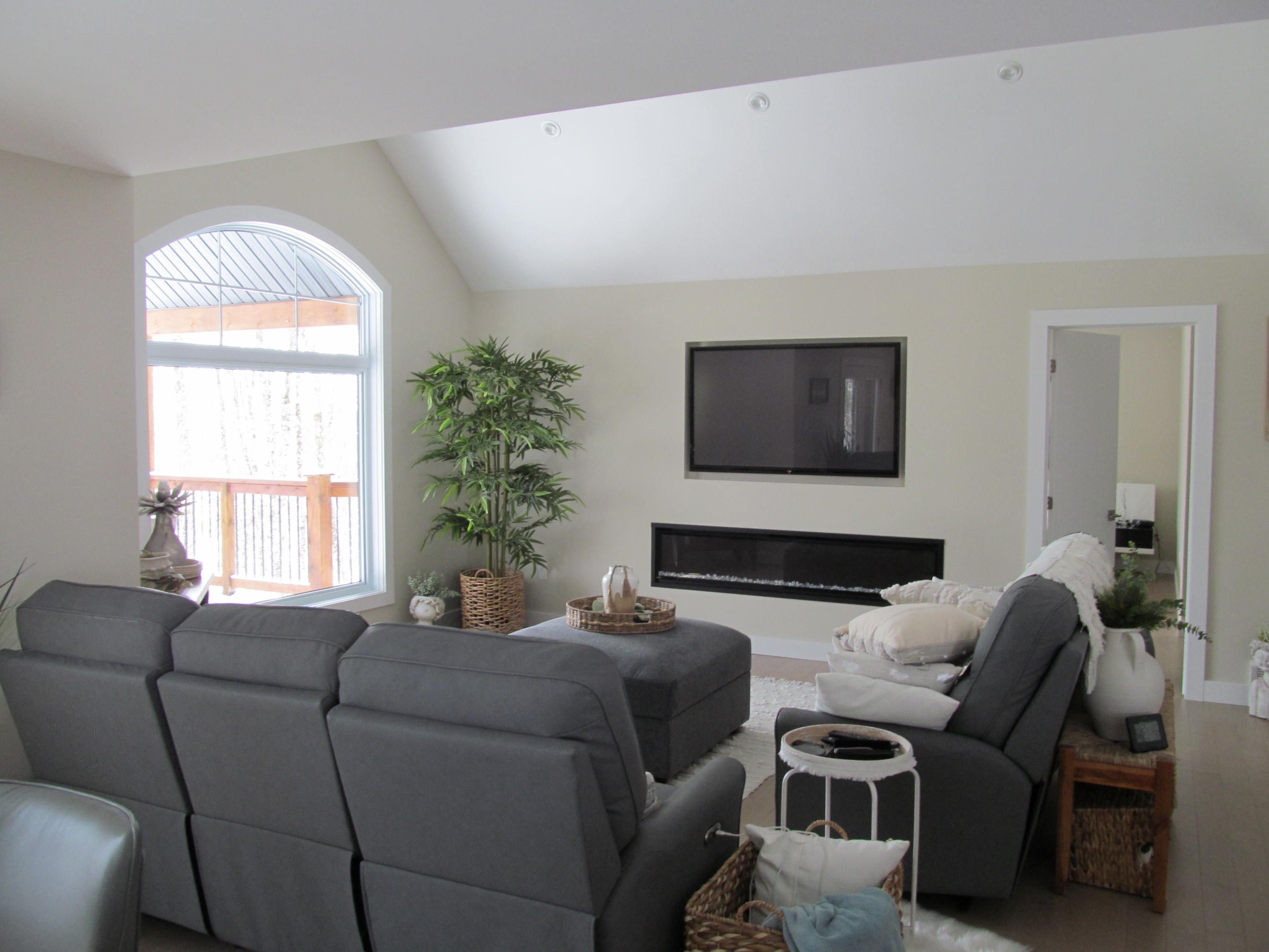 • Open concept living room features a cathedral ceiling for spaciousness.