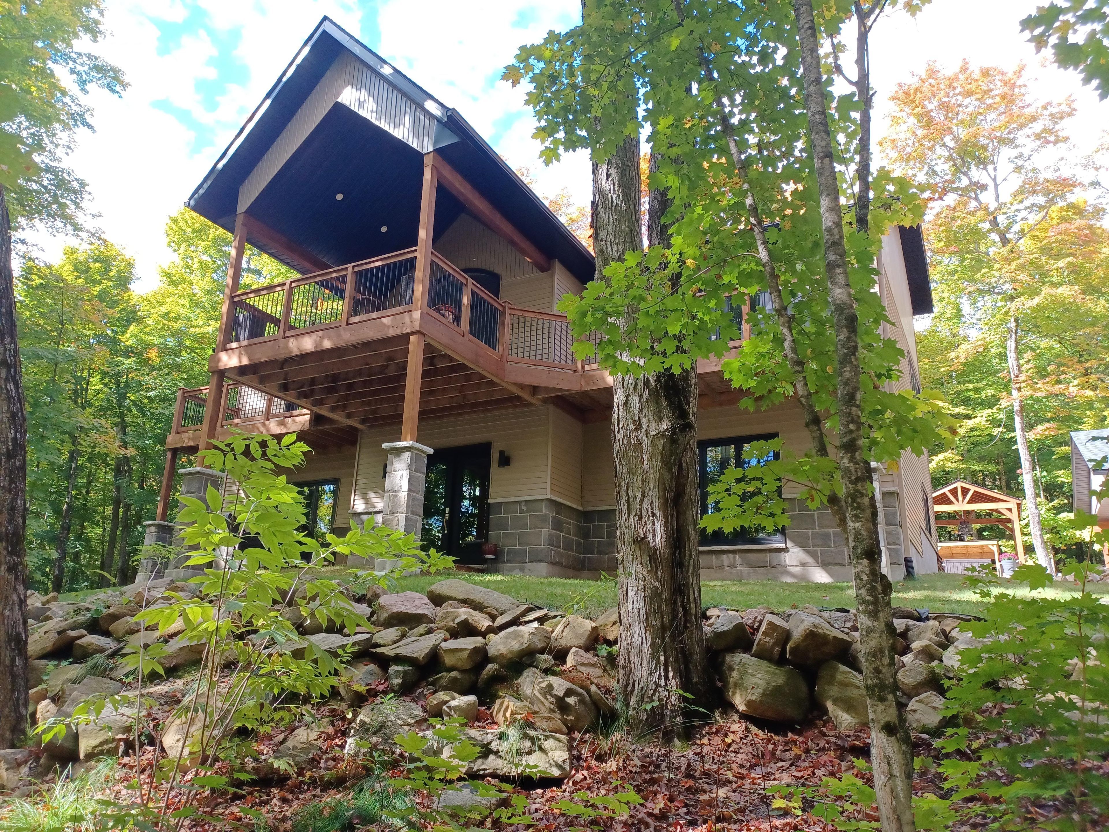 Well build and designed luxurious comfort offering muskoka living with a water view of walkers lake in lake of bays area. 4 bedroom, 3 bathroom residence on 5. 8 acres with hardwood trees plus a large 3 bay garage 36'x30' with attached carport 16'x24' . The house has a high efficiency propane with 30k hp/ac by goodman. 200 vac/30 amp partial backup panel with auto transfer switch and auto start/stop generator 7500 kw three bay garage capacity with plenty of cupboards and shelving that is fully insulated doors and walls at r12, finished with7/16 osb on walls and ceilings and two 12' x 7' oh doors. It has premium finishings with top of the line bosch and kitchenaid appliances. Open concept living room with cathedral ceiling to enjoy your guests and family. Only a few minutes to town with several golf courses and a ski hill nearby algonquin park with hiking trails. Enjoy the warmth and character of beautiful maple hardwood floors, harvested in quebec, that flows throughout the upper level from maple hardwood stairs. Tucked away on a quiet cul-de-sac with quality neighborhood and hardwood property to a step outside to the patio stone terrace, where a cozy gazebo, fireplace, create the perfect spot for gatherings or quiet evenings under the stars or take a dip off the luxurious pool/spa, 7' x 9' fiberglass c/w a 30k btu heat pump, large filter with media and auto start/stop pump seating all around. This home offers a dedicated wellness room on the lower level, with a dry sauna for two, exercise equipment included, and complete with led-wall mounted tv. In addition there is an office/den facing the lake, filled with natural light and afternoon sun, providing and inspiring workspace with breathtaking views. All appliances are included, window coverings, exercise equipment, sauna, and both living room and master bedrooms quality led tvs. Enjoy the charm and comfort with a paved driveway.