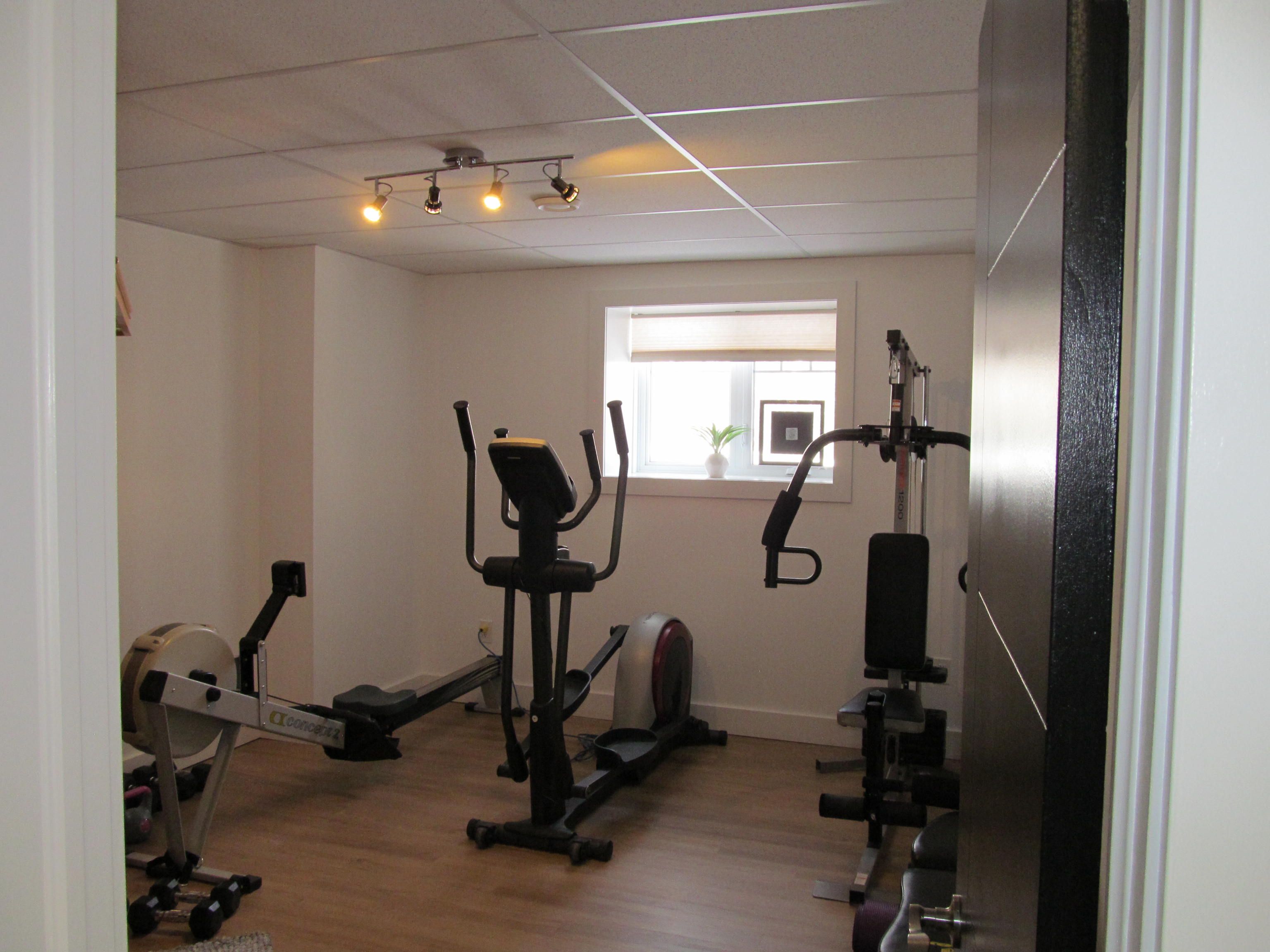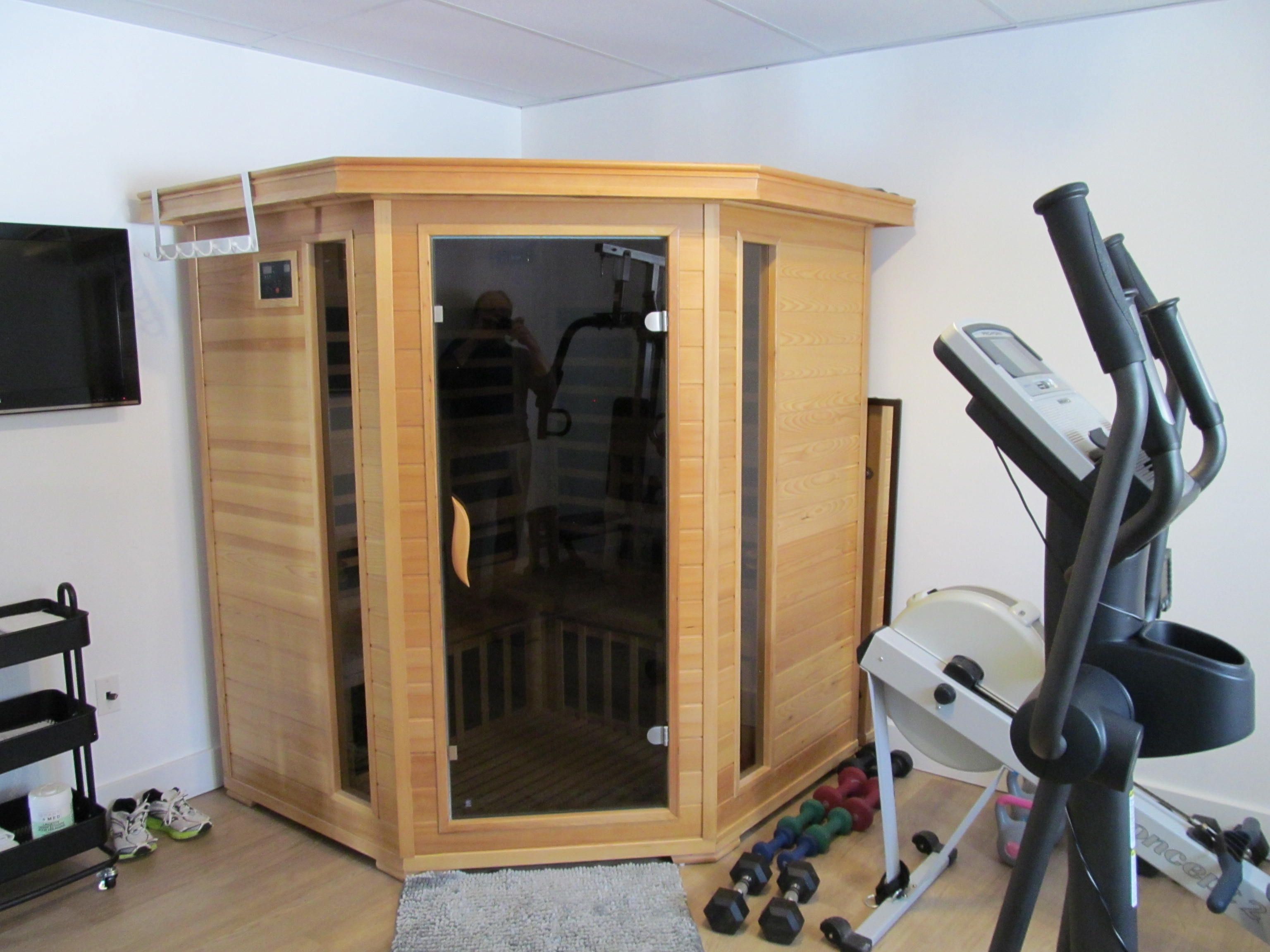 • Dedicated wellness room includes a sauna and exercise equipment.