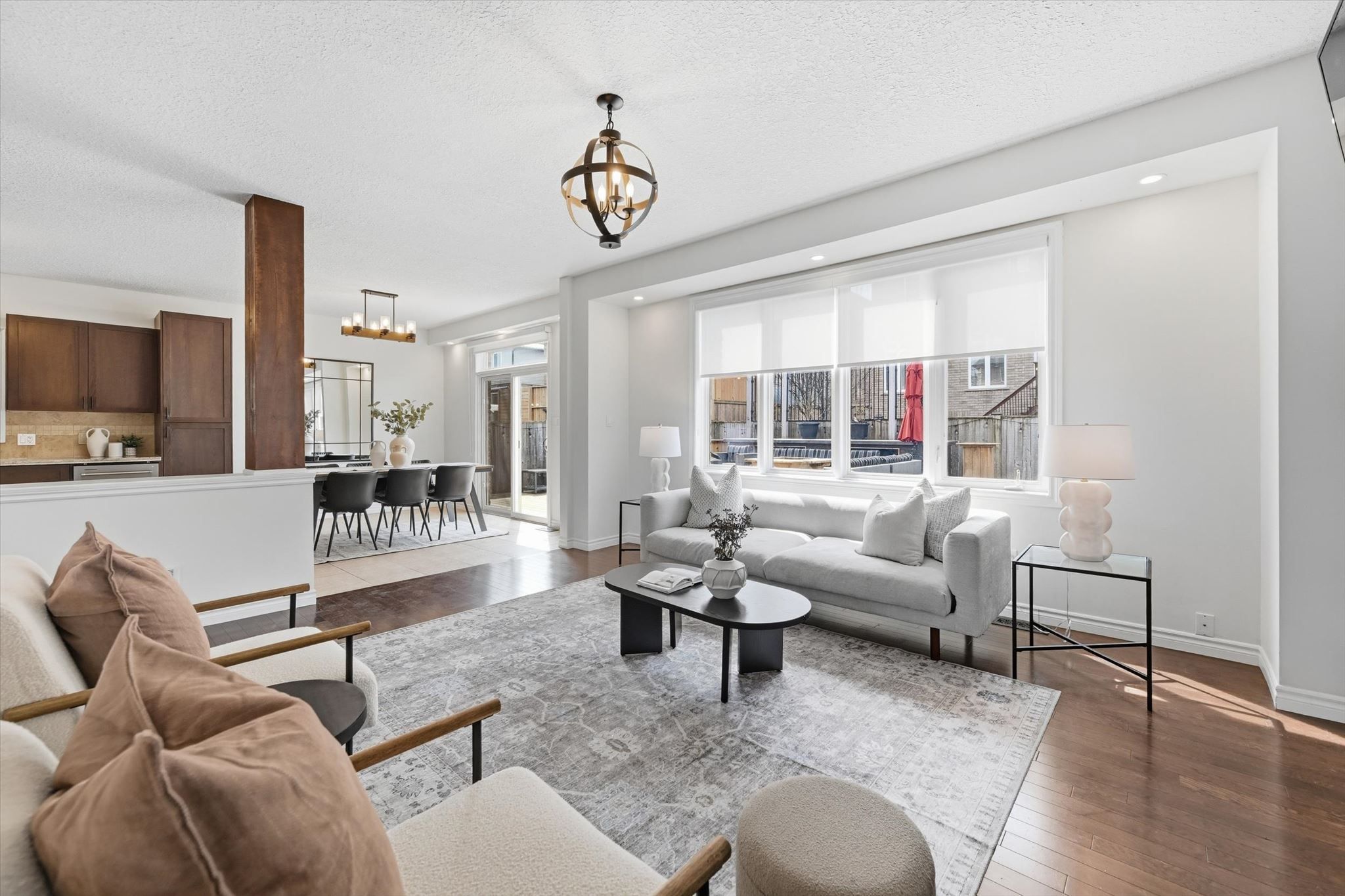 • Open-concept living area with hardwood floors and 9-ft ceilings for an airy feel.