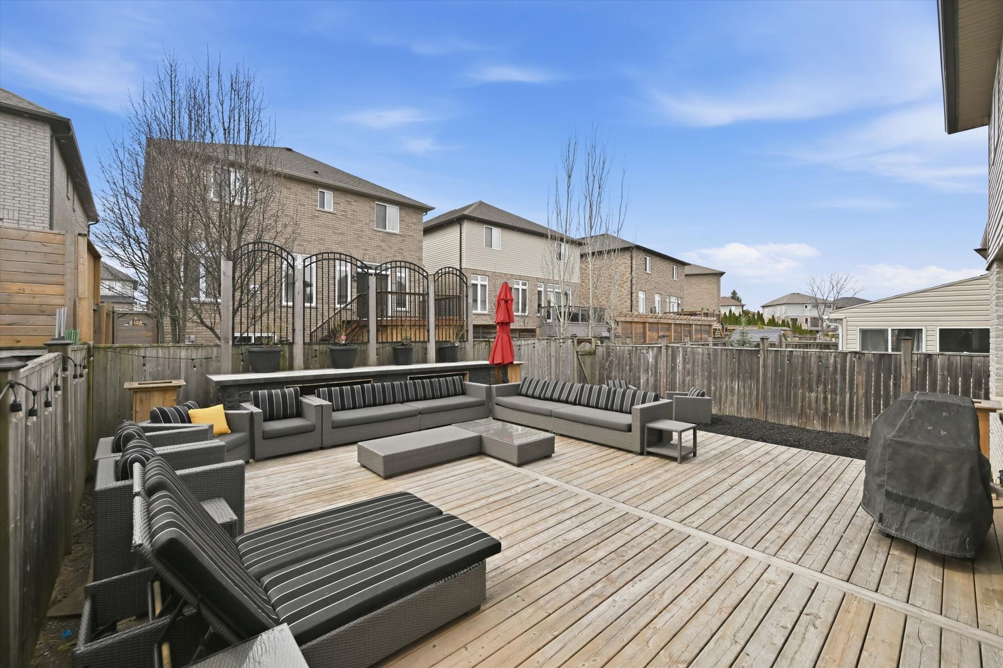 • Entertainer’s backyard featuring a large deck and privacy screens for gatherings.