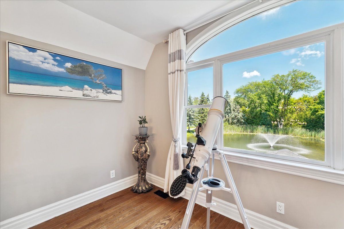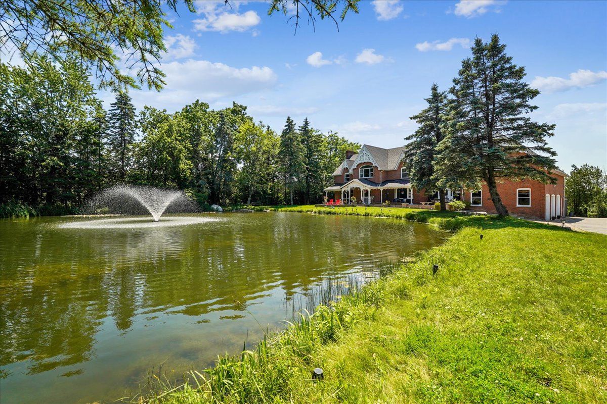 Nestled within tranquil natural surroundings, this exceptional custom-built victorian estate sits on 1. 24 acres and offers a rare blend of elegance and privacy. A picturesque private pond, home to colorful koi and abundant bass, invites year-round enjoyment-from peaceful fishing to winter ice skating. Expansive grounds and wrap-around decks showcase sweeping views in every direction, creating an ideal setting for outdoor living. Inside, the beautifully updated kitchen features a large centre island, breakfast area, and premium miele and wolf appliances, flowing seamlessly into inviting living spaces including a warm family room and a sun-filled sunroom perfect for birdwatching. Designed with comfort in mind, the home offers dual staircases for added privacy, three generous ensuite bedrooms, and two additional guest rooms. The walk-out basement elevates the lifestyle experience with a bar, recreation areas, gym, and sauna, making it an entertainer's dream and a private retreat all in one.