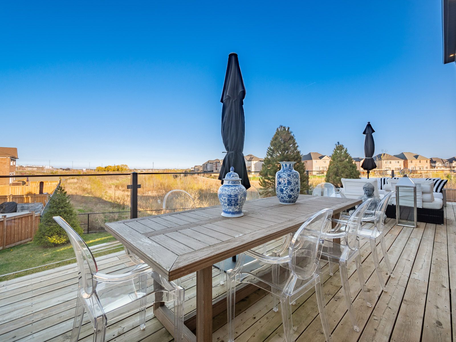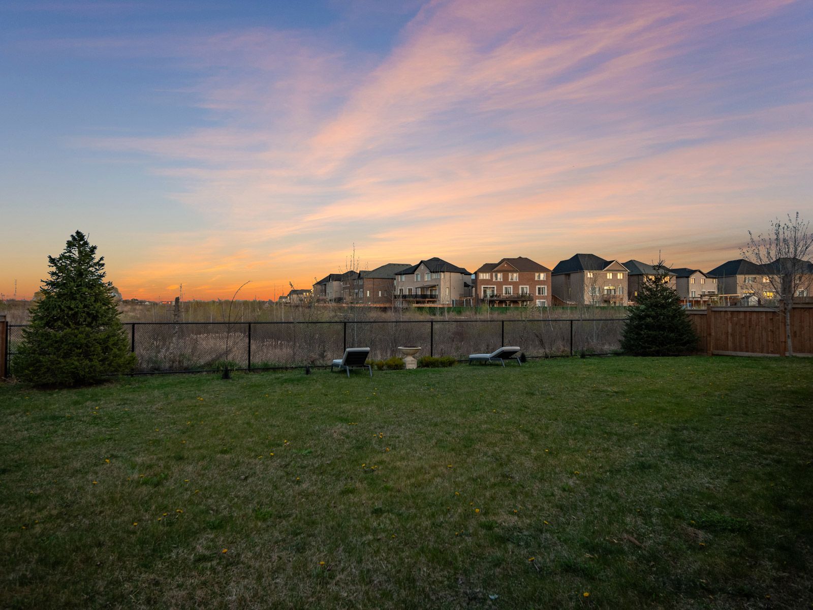 Your opportunity to own a fully customized home on a private street at the desirable oakville/milton border. Set on an oversized pie-shaped lot backing onto ravine and conservation land, this exceptional property offers approx. 5,200 sq. Ft. Of finished living space designed for comfort, entertaining, and everyday luxury. Featuring 10ft ceilings on the main level, 9ft ceilings upstairs, and high-end custom finishes throughout - including a marble, custom bloomsbury-built kitchen and white oak 5" plank flooring with herringbone design throughout the main level and upper hall - this home combines scale, style, and premium views with abundant natural light. Elegant principal rooms lead to impressive 9ft upgraded european-style doors that open onto a large deck overlooking protected greenspace - the ideal extension of your living and entertaining spaces. The home has a total of 5 bedrooms and 5 bathrooms. The upper level features a spacious dressing suite connected to the primary, plus ensuite access from every bedroom. The bright walk-out lower level adds a great room, gym, studio and ample storage, with outstanding potential to create a private living space for multigenerational needs - ideal for adult children, in-laws or guests - without the feel of a traditional basement. The south-facing, pool-sized yard delivers rare privacy and a true outdoor oasis ready to personalize to your taste. Freshly priced to welcome your final touches and make this extraordinary home uniquely yours.