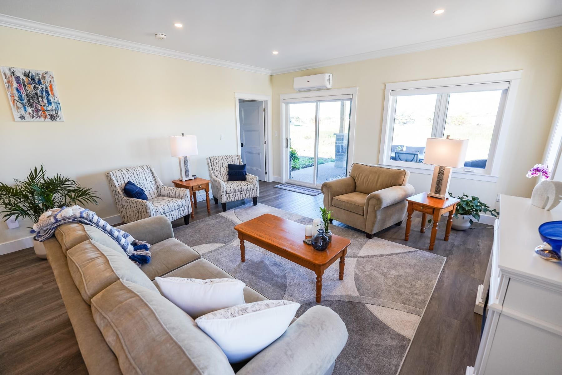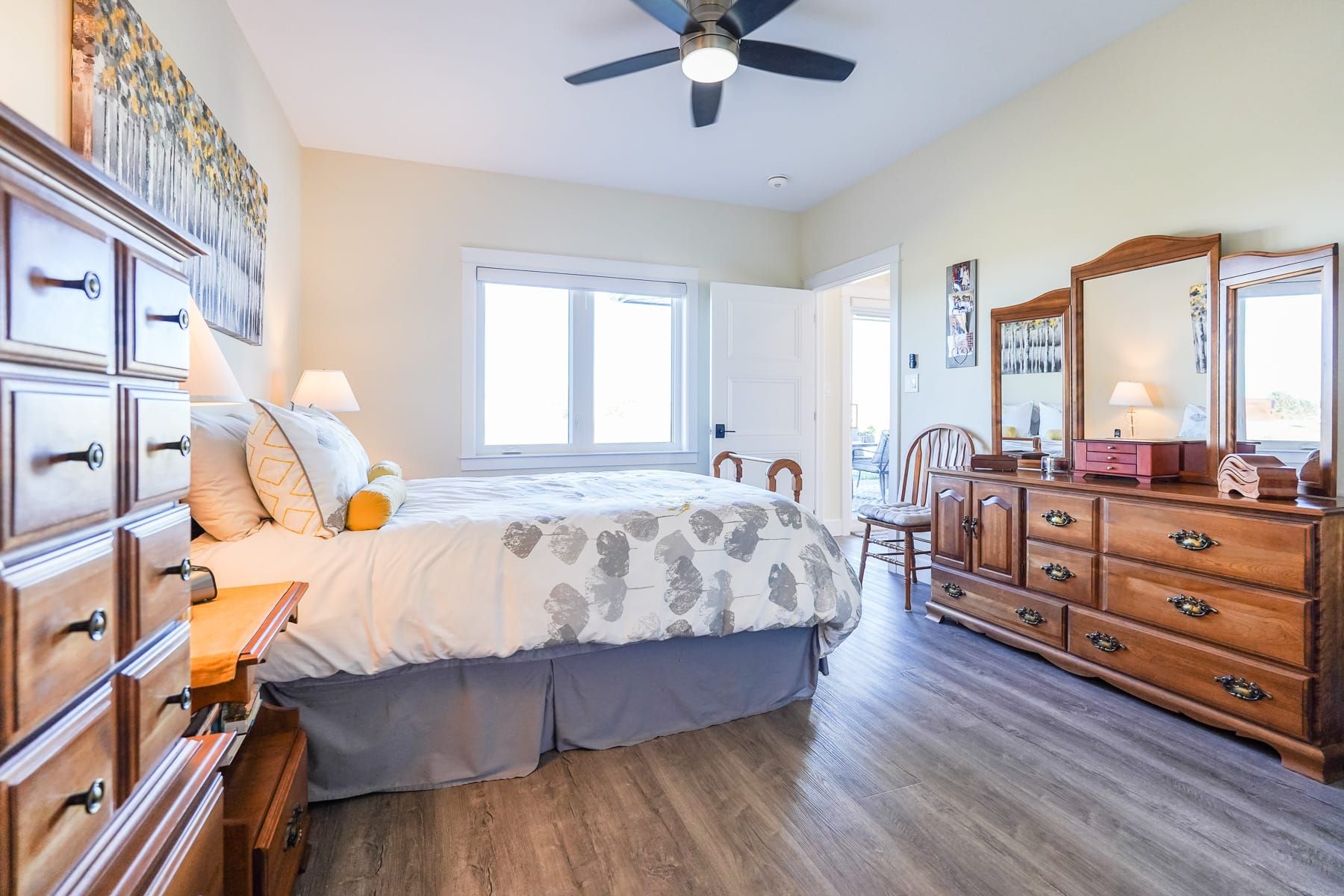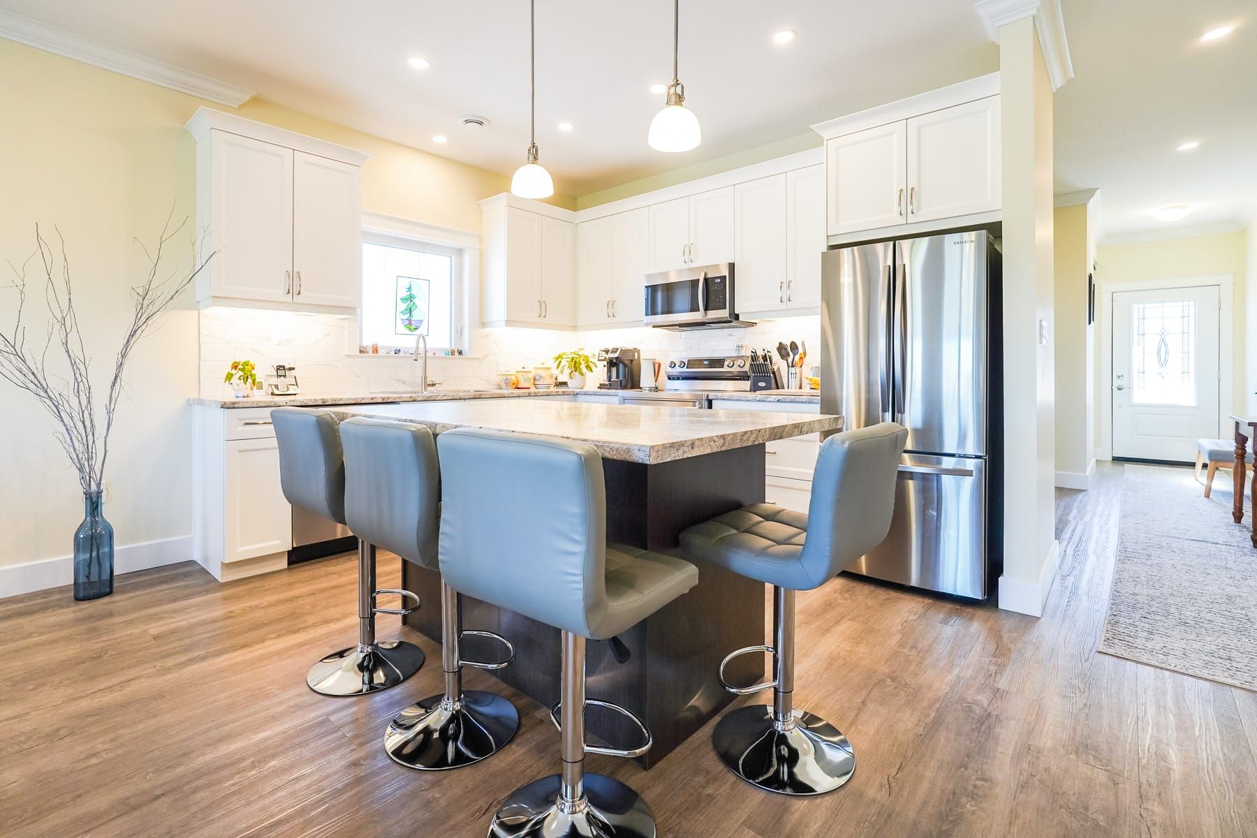 Beautifully appointed and custom designed from top to bottom. Large garage with easy access right into your kitchen, in-floor heat with hot water on demand. Bright and beautiful kitchens open to the dining and living area. Desk/niche area with many options to customize. 3 pc main bathroom with tub-shower unit. Large living room with electric fireplace and 6' patio doors that lead out to a covered porch with an exposed aggregate concrete deck 16' x 14'. Main bedroom with walk-in closet and modern 3pc ensuite. Second bedroom or office/den area. Laundry room with large uppers and 2 full countertops for easy folding. Supreme waterproof vinyl flooring throughout. Lifebreath unit to ensure moisture control and fresh air. Ductless split air conditioning and heating unit. Concrete and exposed aggregate driveway with a covered 16' x 9' front porch. All this in a 55-plus seniors community, that is a very quiet and a secure neighbourhood. A must-see! Property taxes to be re-assessed. An estimate of the tax amount is listed. *for additional property details click the brochure icon below*