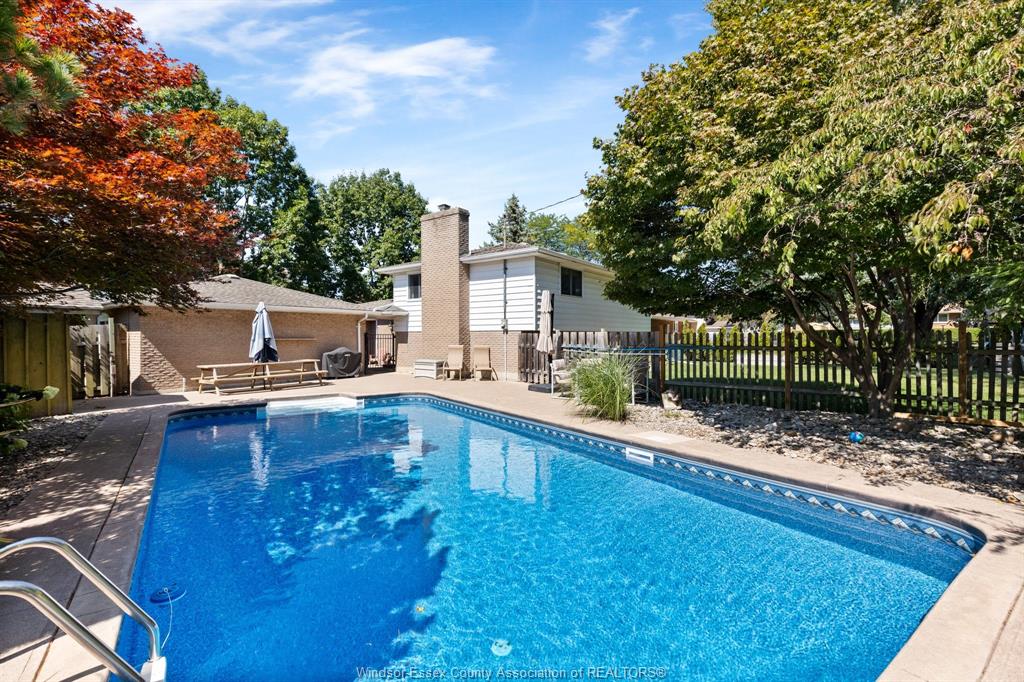Welcome to this beautiful 4-level back split located in a quiet kingsville neighborhood! Sitting on a large property with mature trees, this home offers both space and charm. Inside you'll find 4 bedrooms and 2 bathrooms, along with a cozy family room featuring a gas fireplace, perfect for gatherings. A convenient grade entrance provides easy access to the outdoors, while the double car garage adds plenty of storage and functionality. Step outside to enjoy your own backyard oasis complete with a large in-ground swimming pool. Recent updates include furnace and a/c (2023), hot water tank (2023), and pool liner and skimmer (2025), offering peace of mind for years to come. This is a fantastic opportunity to own a spacious home in a desirable location. Schedule your showing today!