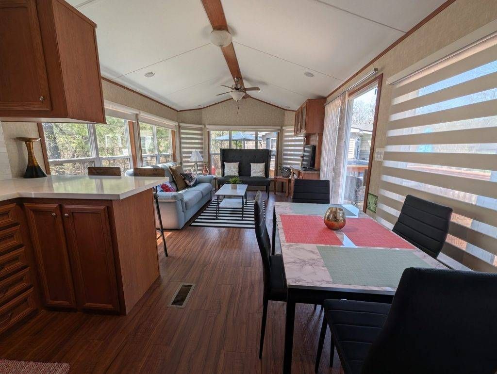 With 2025 site fees included, this new listing on 12 morrison is surely not to last long on the market. It sits on a massive corner lot, with neighbours only on one side, and is in one of the most private areas of the resort! The unit comes furnished with appliances, furnace and ac. Also includes is a 4 year warranty on electrical! *for additional property details click the brochure icon below*