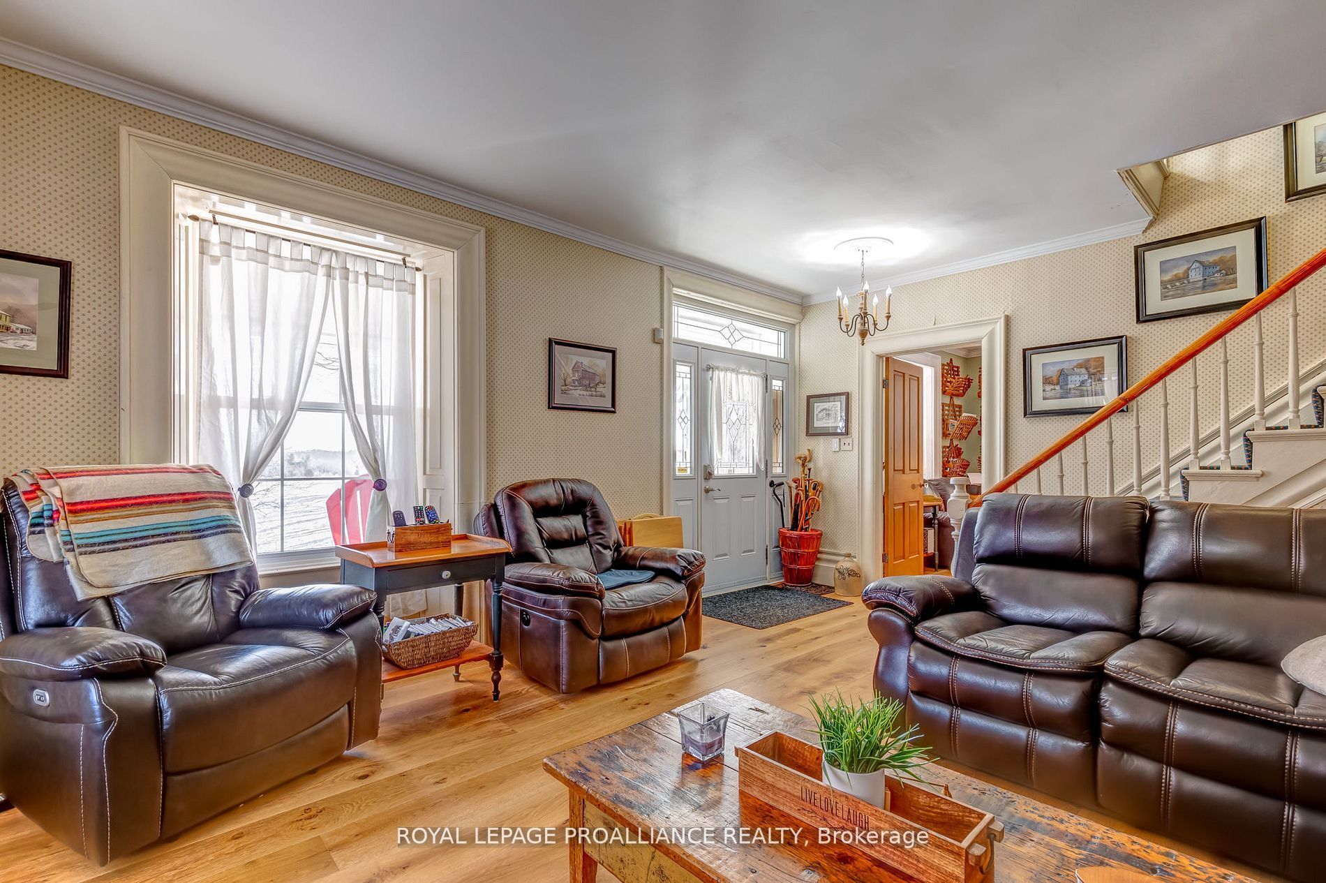 Welcome to a truly extraordinary property where history, charm, and nature come together. This stunning 1874 split-stone farmhouse sits proudly on 102 acres of serene northumberland county countryside, offering an unparalleled lifestyle of peace, privacy, and endless potential. The beautifully maintained home features a classic front porch, perfect for quiet mornings with coffee and back patio for relaxing sunset views. Inside, a spacious eat-in kitchen showcases hand crafted maple cabinetry, cambria quartz countertops, and an adjoining dining area ideal for family gatherings. A sun filled solarium just off the kitchen invites relaxation, with direct access to a private patio and hot tub your own personal retreat. The main floor offers both a cozy family room and a separate living room, providing ample space to entertain or unwind. Upstairs, the large primary bedroom is complemented by three additional bedrooms and a well appointed four-piece bath, delivering comfort and functionality for family living or hosting guests. Outbuildings include a grand barn, originally a dairy barn, now offering versatile space for storage, hobbies, or recreational equipment. The land is equally impressive, featuring approximately 25 acres of workable farmland, along with hardwood and maple forest, open pasture, scenic wetlands, and a gently flowing creek that enhances the natural beauty of the property. This rare estate is more than just a home, it's a legacy property. Whether you envision a private retreat, hobby farm, or country escape, the possibilities here are as expansive as the landscape itself.