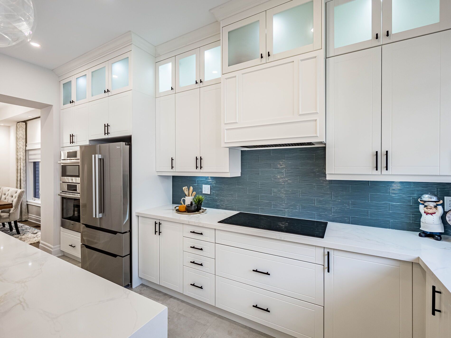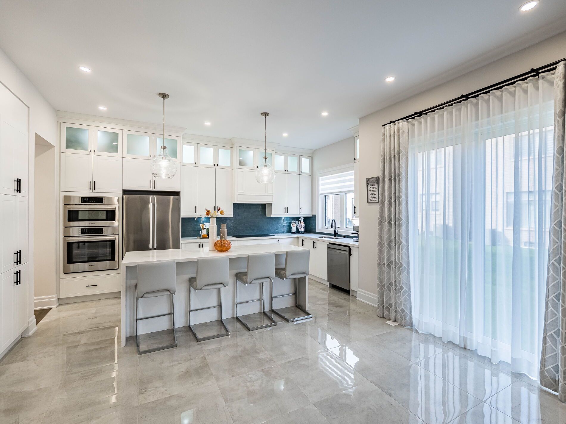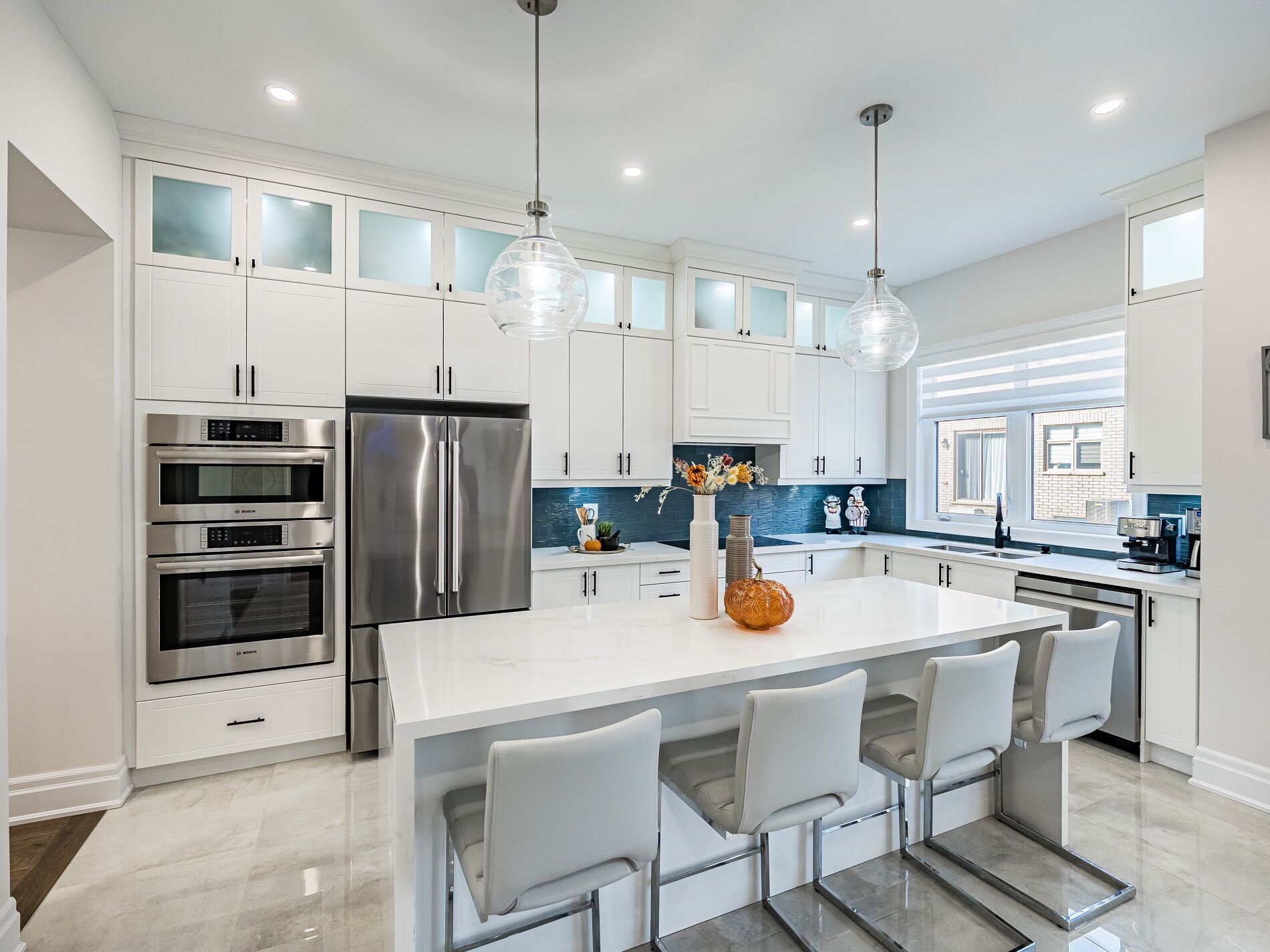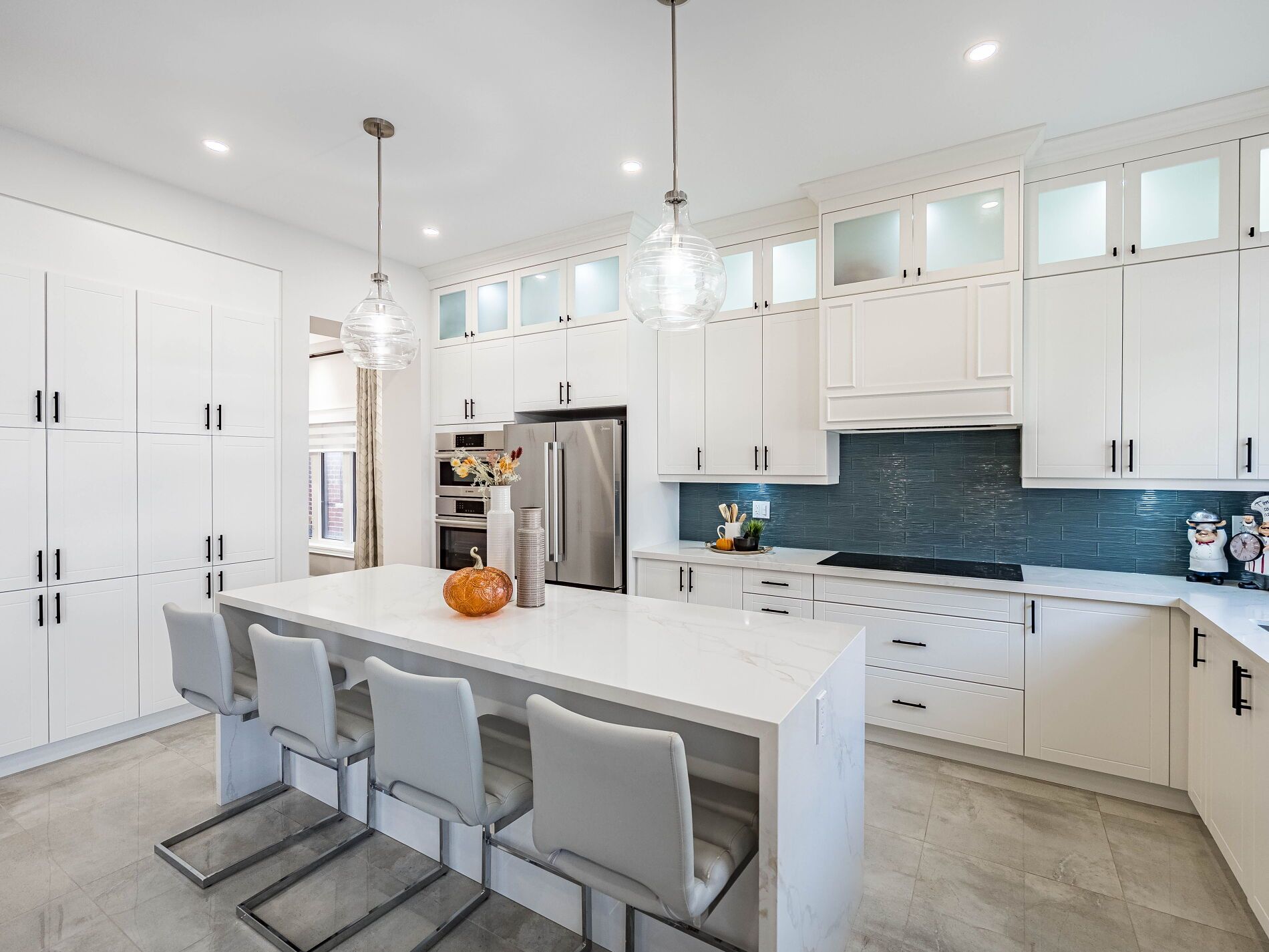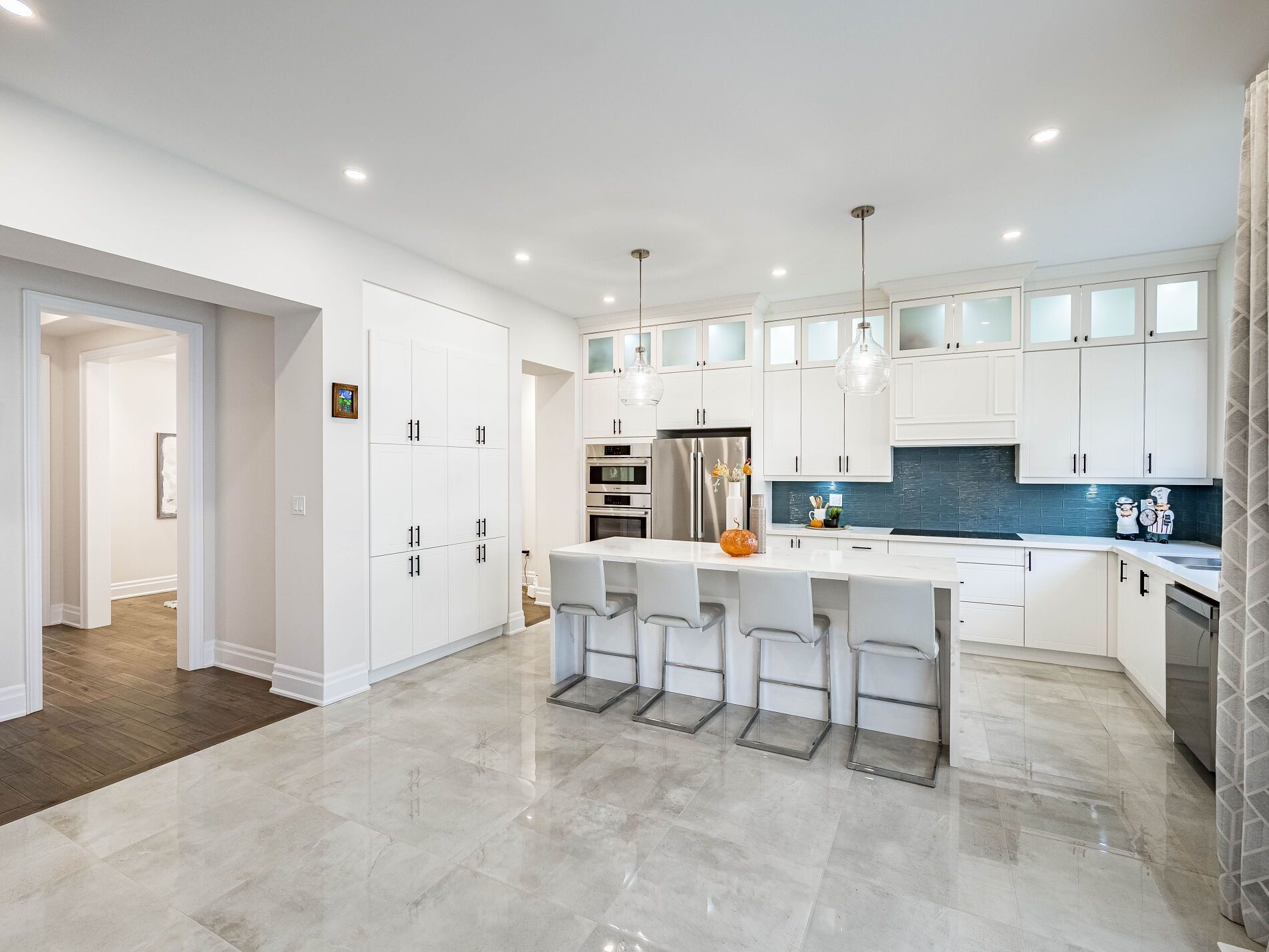 • Gourmet kitchen features quartz countertops and high-end built-in appliances.