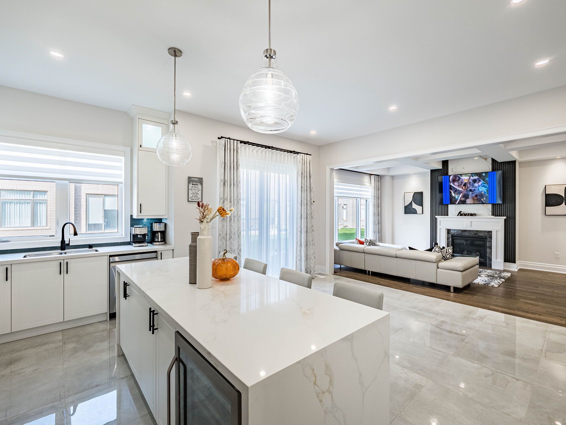 Wow-this is an absolute showstopper and a must-see! Priced to sell immediately! This stunning 4+1 bedroom, 5-washroom residence with an open-to-above foyer sits on a premium lot in oakville, offering approx. 3,200 sq ft plus a 671 sq ft legal 1-bedroom basement apartment finished by the builder! Elegance greets you with premium hardwood on the main and second levels, a hardwood oak staircase with upgraded wainscoting, 10' ceilings on the main, 9' on the second, and 9' in the basement, all elevated by designer light fixtures for a luxe ambiance. The chef's gourmet kitchen shines with a large center island, quartz countertops, sleek backsplash, wine fridge, and top-tier built-in stainless steel appliances. Seamlessly connected is the cozy family room featuring a gas fireplace and custom waffle ceiling-the perfect setting for relaxing nights or memorable gatherings. Retreat to the primary suite, a private haven with a walk-in closet and spa-inspired 6-piece ensuite; a striking feature wall adds style and personality. The second level is designed for comfort and productivity with 4 spacious bedrooms, 3 full bathrooms, and convenient second-floor laundry. The legal finished basement impresses with a separate 1-bedroom suite complete with kitchen and full washroom-ideal for extended family, guests, or potential rental income. Thoughtful details and quality finishes are evident in every room, delivering the space, style, and function today's buyers demand. This home truly checks every box-location, luxury, and layout. Don't miss it!