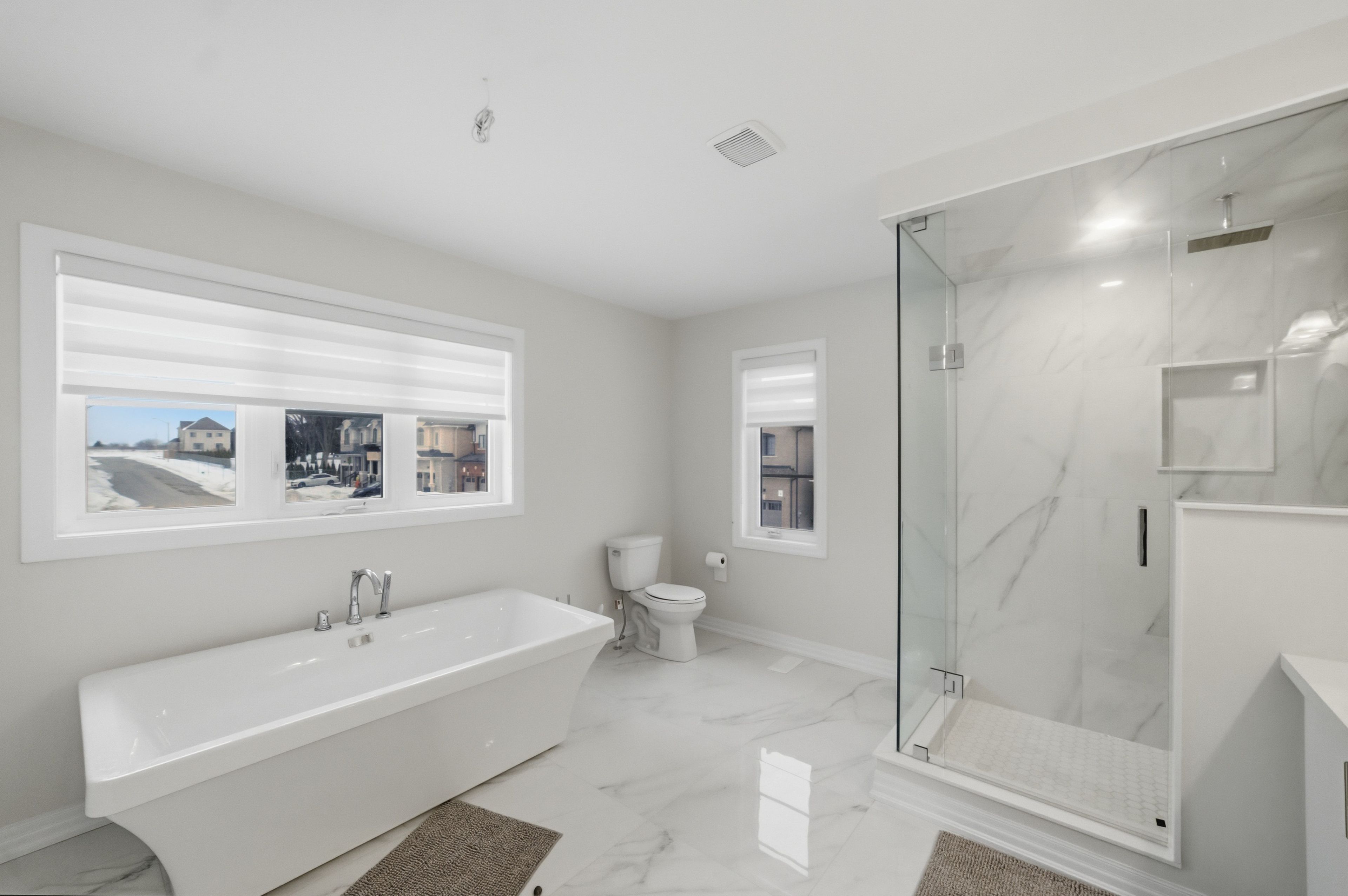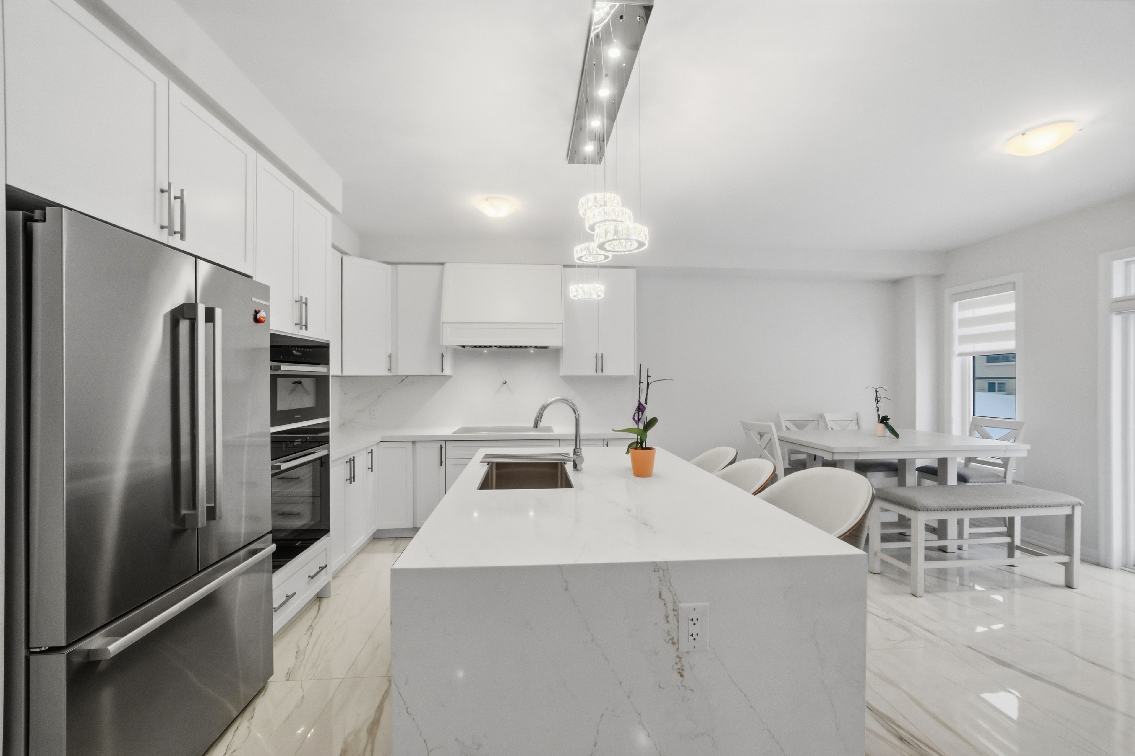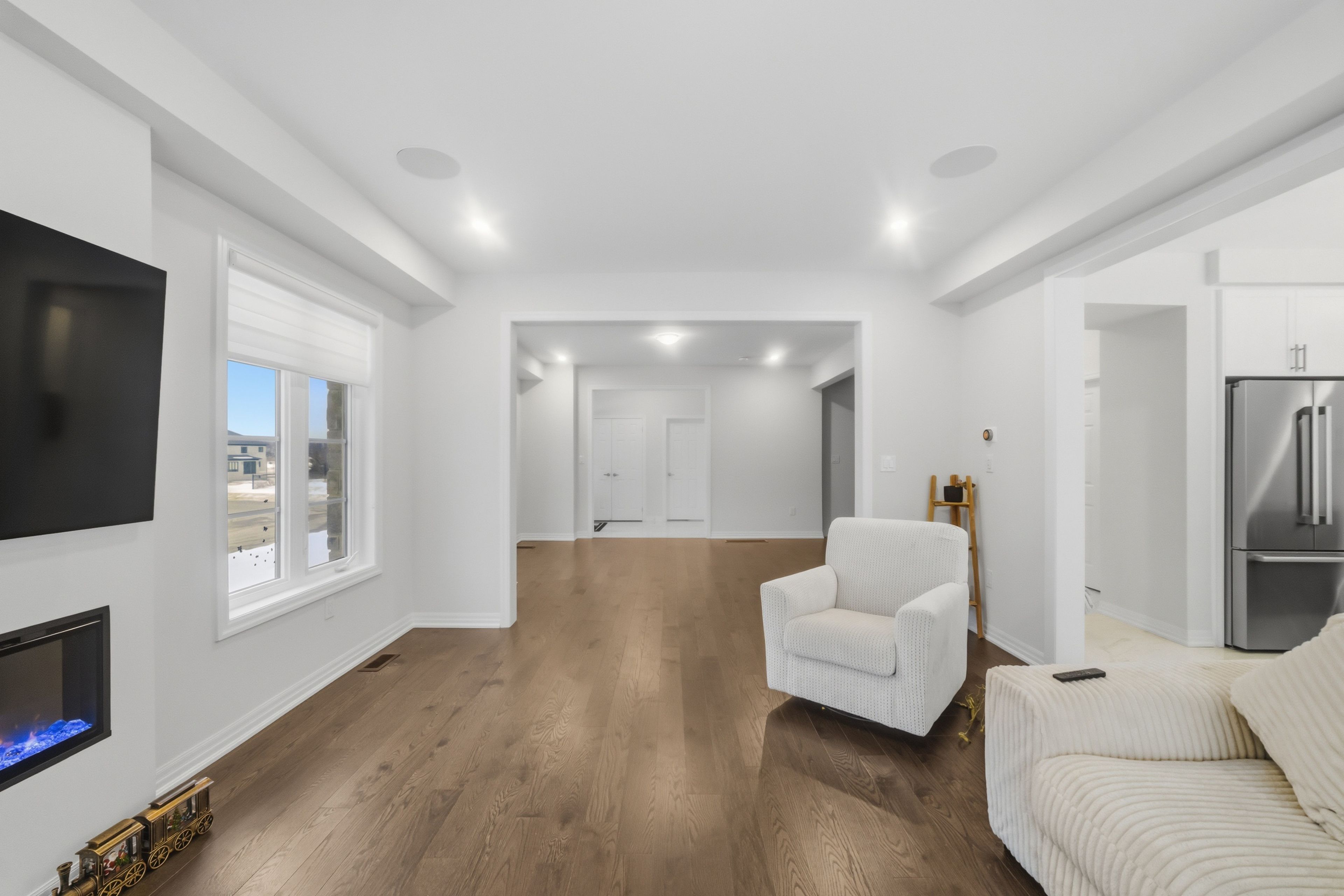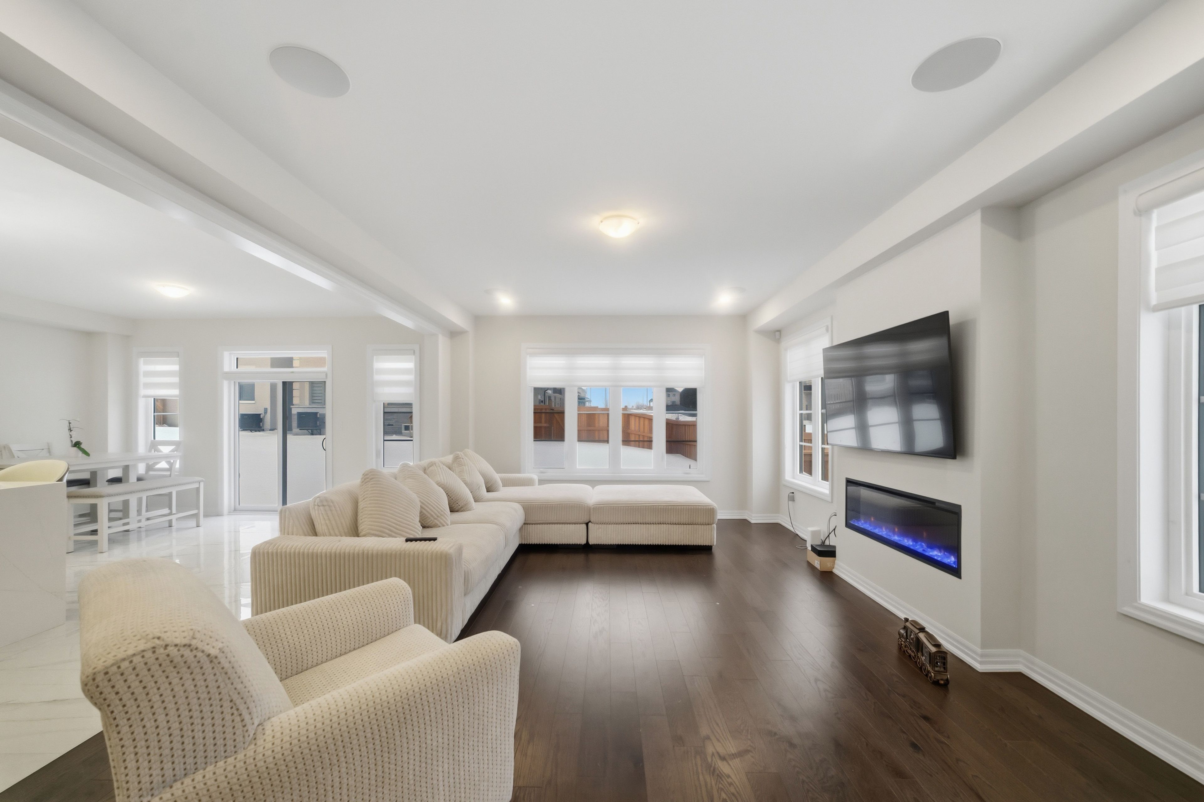 Welcome to 134 flood avenue an exceptional executive residence offering approximately 3,300 sq ft of refined living on a premium corner lot. This extensively upgraded 4-bedroom 3. 5 bath detached home showcases premium upgrades delivering a level of finish rarely offered in the rental market. Designed for upscale living, the home features expansive principal rooms, rich hardwood flooring throughout, built in speakers in the prime bathroom and the dining area, a beautiful fireplace and an open concept layout ideal for both everyday comfort and sophisticated entertaining. The chef inspired kitchen is a true focal point, complete with built in appliances, upgraded cabinetry, designer tile selections, and a walk-in pantry. Upstairs, spacious bedrooms provide comfort and privacy, while the luxurious primary suite offers a 5 piece spa inspired retreat with elegant tilework and a glass enclosed shower.