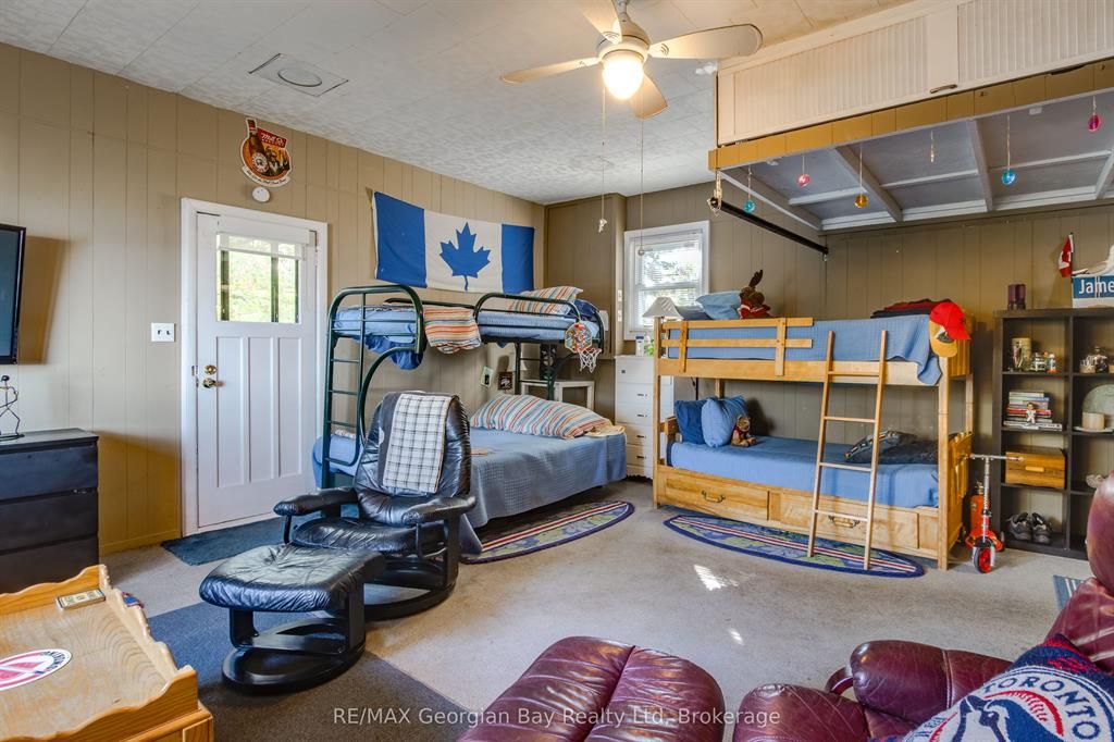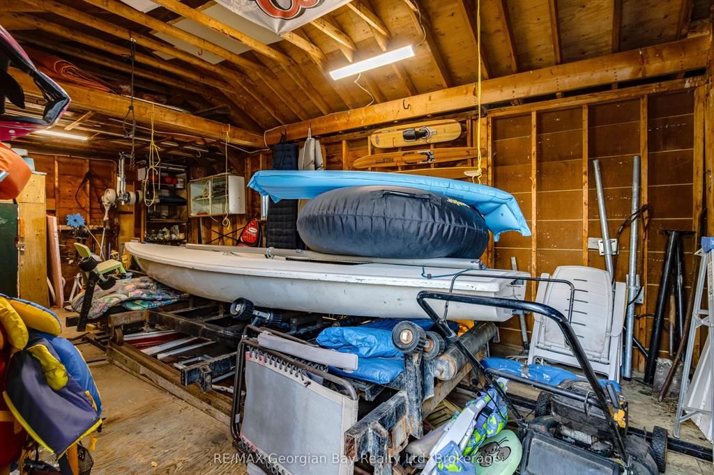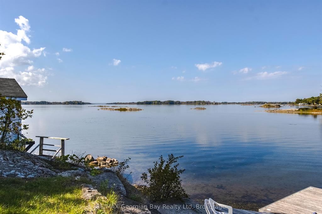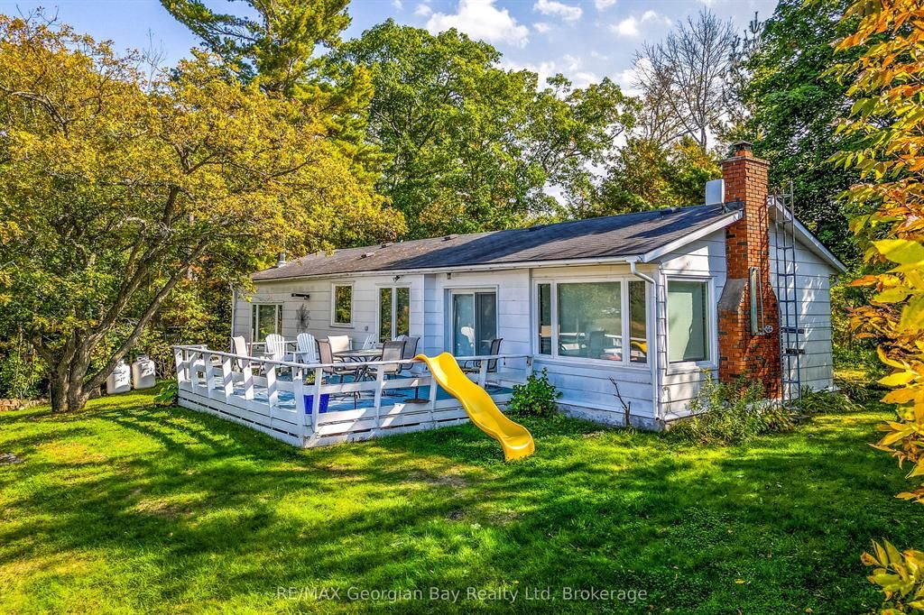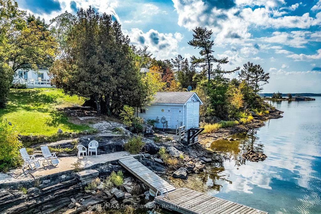 107 feet of beautiful, unobstructed waterfront with your own dock for boat & water toys. Set on the shores of georgian bay, known for it's natural rocky shorelines, wind swept pines, & clear waters. This year round heated property faces west for the most amazing sunsets. This 2 plus 1 bedroom charming cottage features an amazing rec room/bunk room as a bonus room (or turn it back into a huge garage) . Open concept kitchen, dining & living rooms with vast water views. Walkout to a huge level deck & a sprawling waterfront lawn with lots of room for roasting marshmallows over a bonfire or lawn games. The boathouse keeps all the water toys secure or turn it into a great bunkie. The front entrance patio is the perfect spot for a bbq. This is the perfect retreat for those looking for a tranquil escape from the hustle & bustle of city life. Enjoy many outdoor activities including swimming, fishing, boating, sailing, watersports, paddle boarding, windsurfing, cycling, hiking & snowmobiling. Close access to hwy 400 & hwy 12 - just minutes to shopping, restaurants, lcbo & local marinas & more. This property is perfect for those seeking a peaceful getaway in cottage country.