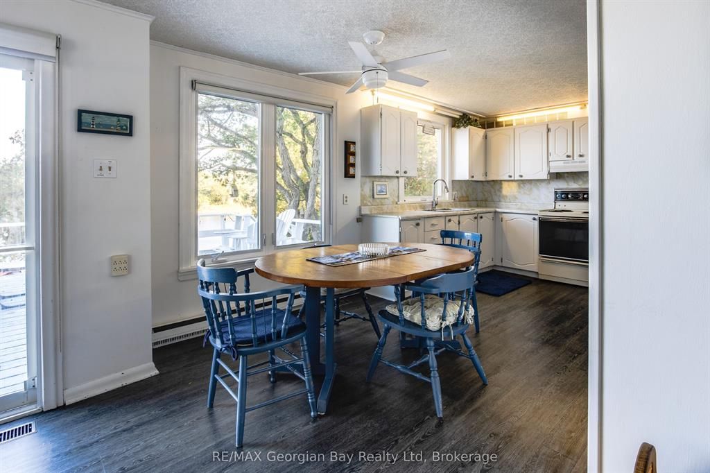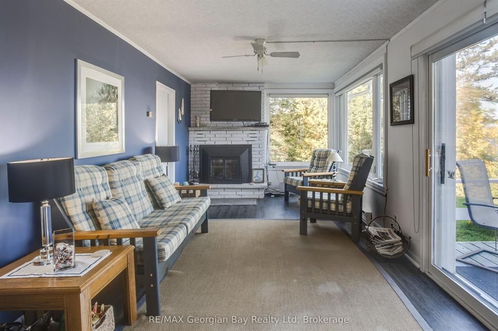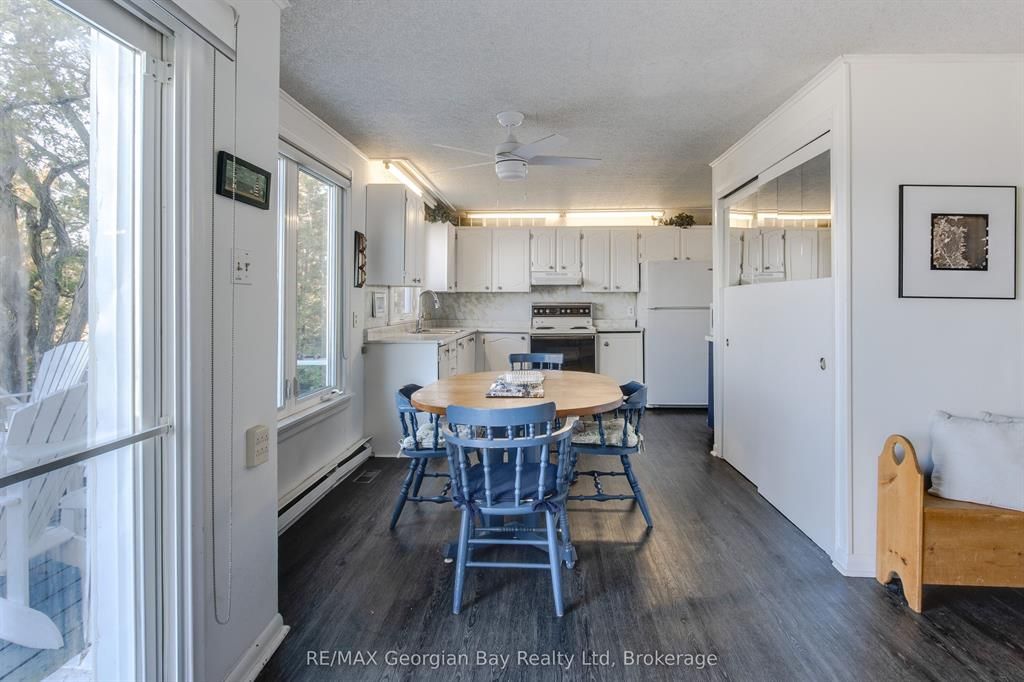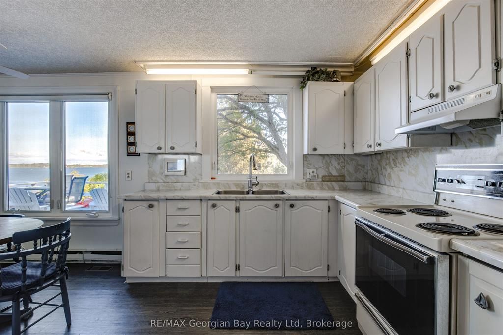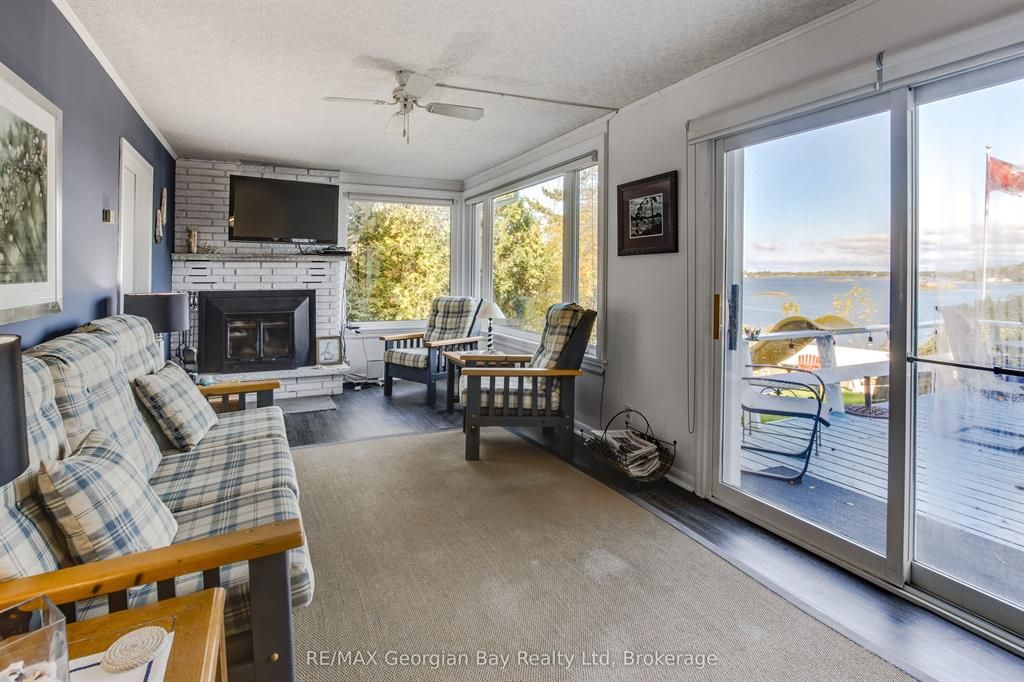 107 feet of beautiful, unobstructed waterfront with your own dock for boat & water toys. Set on the shores of georgian bay, known for it's natural rocky shorelines, wind swept pines, & clear waters. This year round heated property faces west for the most amazing sunsets. This 2 plus 1 bedroom charming cottage features an amazing rec room/bunk room as a bonus room (or turn it back into a huge garage) . Open concept kitchen, dining & living rooms with vast water views. Walkout to a huge level deck & a sprawling waterfront lawn with lots of room for roasting marshmallows over a bonfire or lawn games. The boathouse keeps all the water toys secure or turn it into a great bunkie. The front entrance patio is the perfect spot for a bbq. This is the perfect retreat for those looking for a tranquil escape from the hustle & bustle of city life. Enjoy many outdoor activities including swimming, fishing, boating, sailing, watersports, paddle boarding, windsurfing, cycling, hiking & snowmobiling. Close access to hwy 400 & hwy 12 - just minutes to shopping, restaurants, lcbo & local marinas & more. This property is perfect for those seeking a peaceful getaway in cottage country.