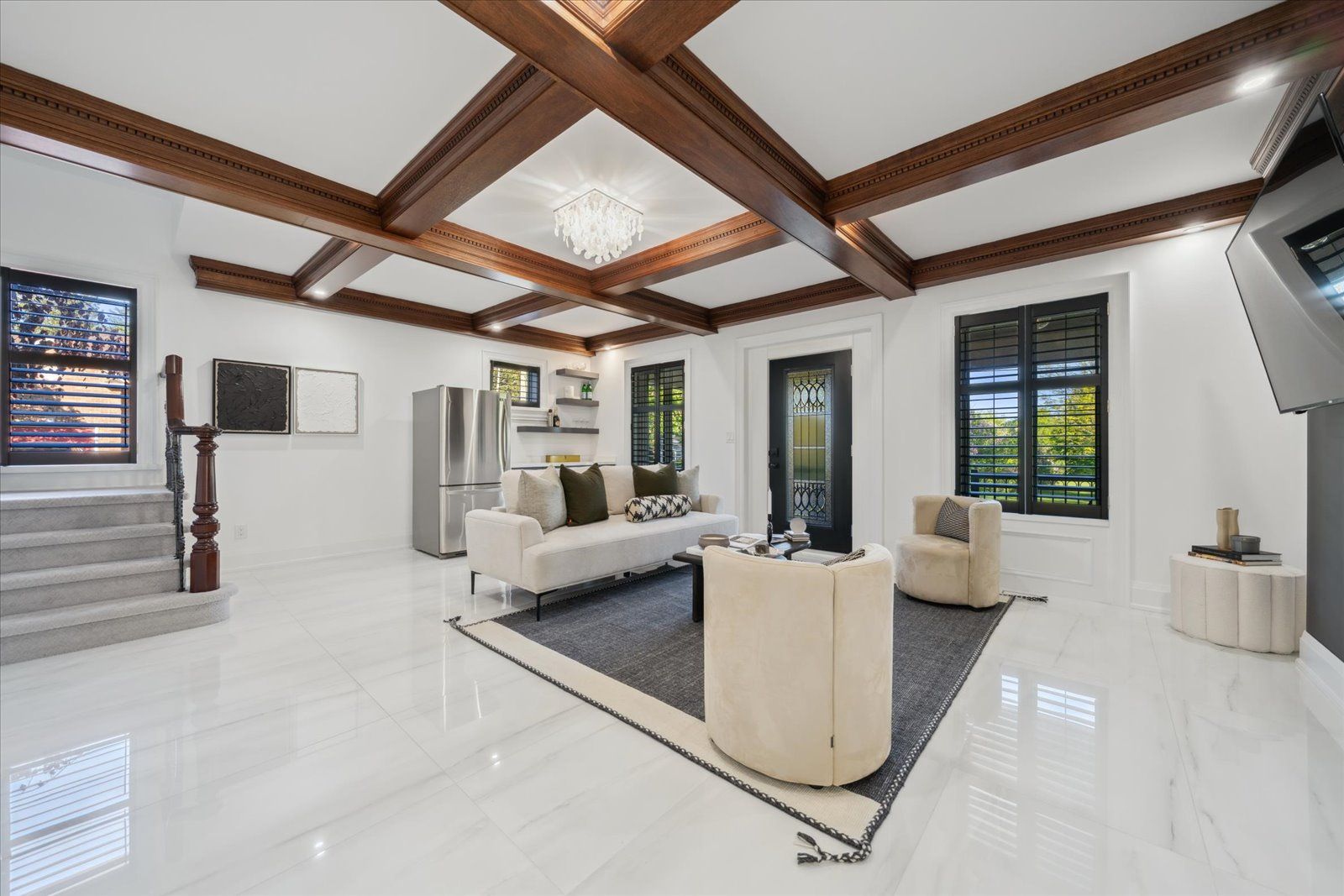 Welcome to your dream home close to the lake - a place that celebrates individuality, community, and connection. Nestled just steps from whitby's stunning waterfront, this spectacular 4-bedroom residence offers over 4,000 sq ft of thoughtfully designed space - where sophistication meets serenity. Wake up to peaceful river views and enjoy your morning coffee on the wraparound porch overlooking the park - an inviting space where friends gather, paddle boards launch, and sunsets linger. Inside, experience grand 11-ft ceilings, a beautiful two-way fireplace, and refined details like 8-ft doors, california shutters, and a custom waffle ceiling in the office - perfect for working or creating in style. The chef-inspired kitchen features bosch appliances, quartz countertops, and a 6-burner gas stove - ideal for entertaining, hosting dinner parties, or simply living your best life. A main-floor bedroom with a 3-piece bath offers flexibility for guests or multigenerational living. Upstairs, your primary suite is a private retreat with a spa-like ensuite featuring heated floors and a victoria + albert soaker tub. Step out onto your private second-floor terrace or retreat to the above-garage loft - a peaceful, light-filled space perfect for a home studio, office, or meditation nook. The basement features a separate entrance with plumbing and electrical ready for a future suite - offering versatility for guests, creative space, or potential rental income. All this, in one of whitby's most desirable lakeside communities - where nature, connection, and inclusivity thrive. Love where you live!