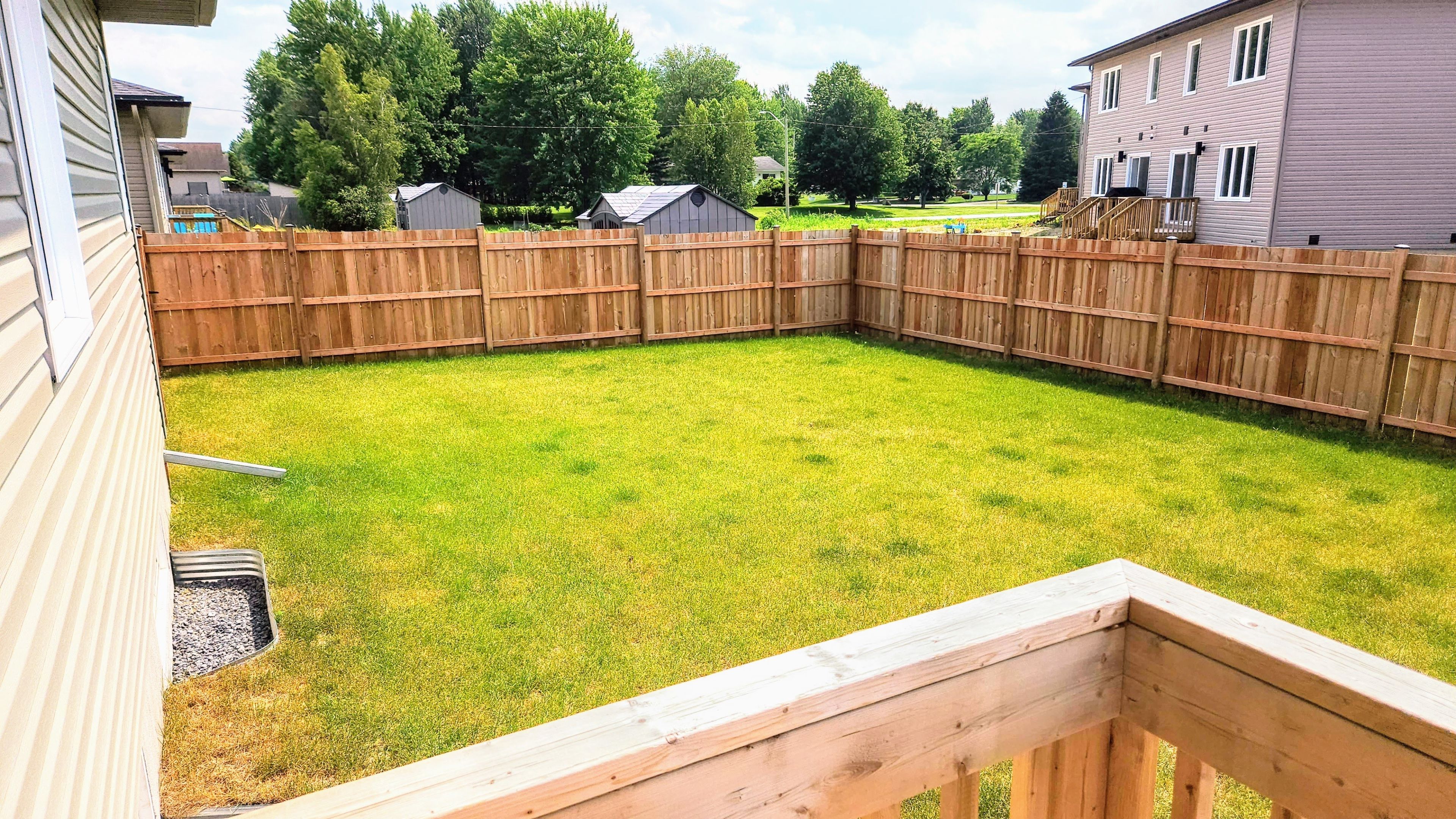 • Fully fenced backyard offers privacy and outdoor enjoyment.