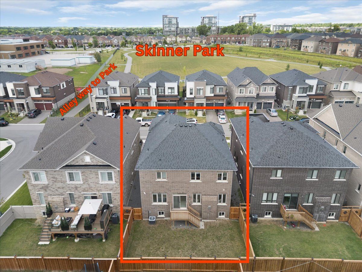 Over 3,100 sqft of stylish executive living in this impressive greenpark-built home located steps away from skinner park! Step through double front doors into airy elegance, enhanced by 9-foot ceilings on both levels. The layout includes 4 remarkably spacious bedrooms featuring walk-in closets and 3 full bathrooms upstairs, offering comfort and privacy for every family member. You'll also find a dedicated home office and a total of 4 beautifully appointed bathrooms. At the heart of the home, the upgraded dream kitchen stuns with $60k spent only for custom cabinetry!! Premium stainless steel appliances, a large island, and designer finishes complement the custom cabinets! Enjoy distinct living, dining, and great rooms, plus a quiet office ideal for remote work. With no carpet throughout, the home feels sleek, clean, and easy to maintain. A convenient main-floor laundry with brand-new washer and dryer completes this thoughtfully designed home. The home is located very close to skinner park and bruce trail!