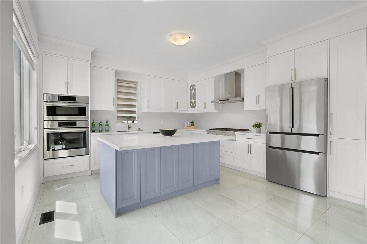 • Stylish upgraded kitchen featuring custom cabinetry and premium stainless steel appliances.