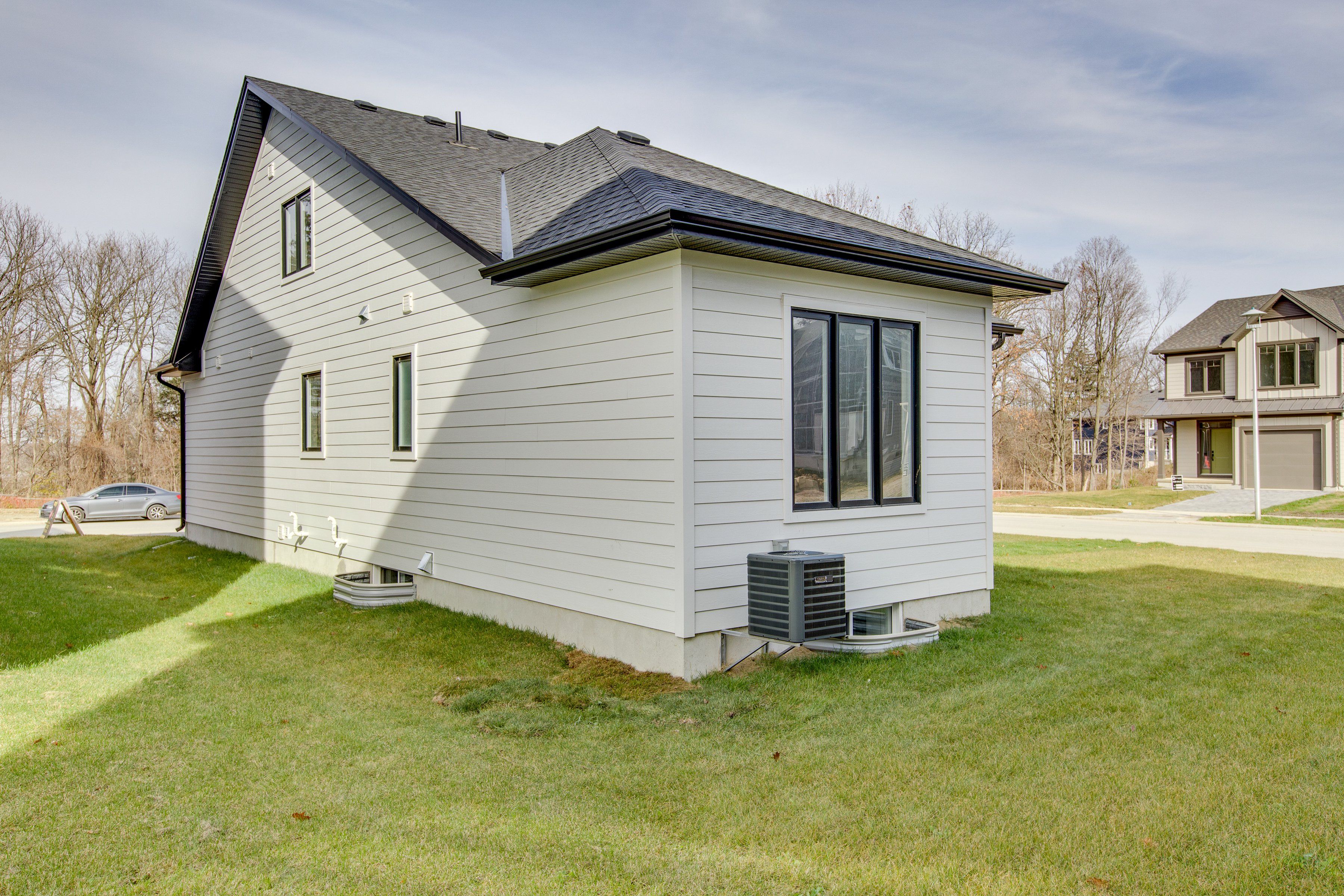 Absolutely stunning! Brand new never lived-in corner 1-car garage 1831 sq ft ironstone built detached bungaloft with 3-bedrooms+loft & 2. 5 baths facing onto ravine & trail in a family friendly ford neighbourhood. Private porch welcomes you into this open concept home full of natural light boasting 9' ceilings and very functional & spacious floorplan. Modern eat-in kitchen w/stainless steel appliances, modern cabinetry, ceramic floors & quartz countertop opens to living/dining rooms combo with high vaulted ceiling, pot lights and laminate flrs + primary bedroom w/3-pc ensuite & w/i closet. Welcoming staircase leads to 2nd flor where you will find a good sized 2nd & 3rd bedrooms, huge loft & 4-pc main bathroom w/tub. Big windows and high cathedral ceilings. Huge private croner lot pies at the back creating a large yard & garden area. Convenient location near intersection of pond mills rd & deveron crescent. Please check the virtual walkthrough by clicking on virtual tour link!